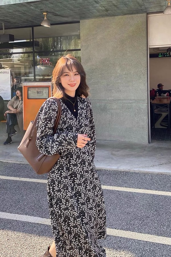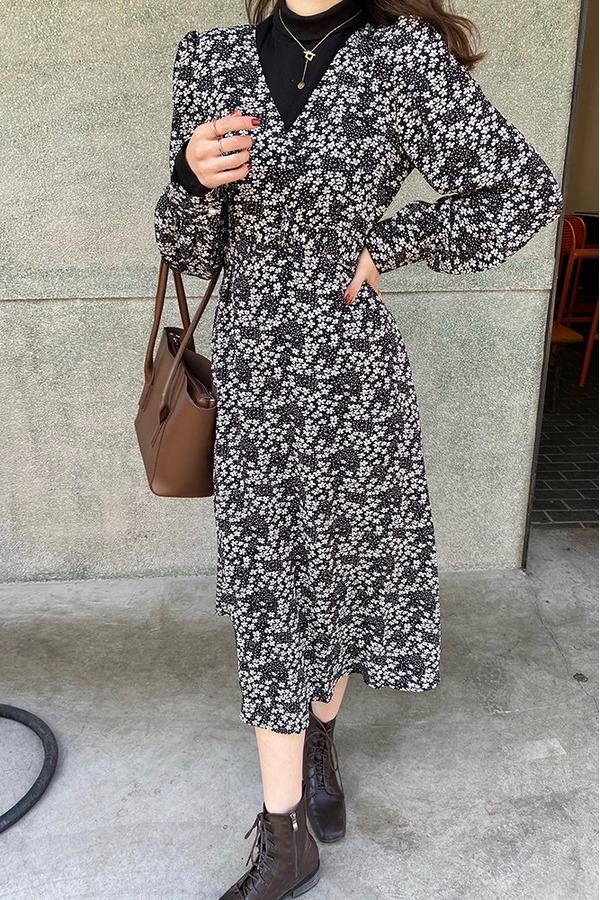 L.Fleuri 黑色碎花温柔两件套 15013