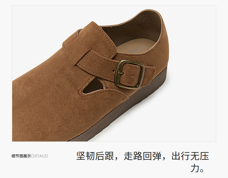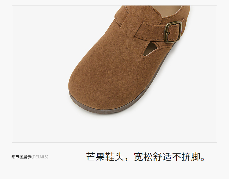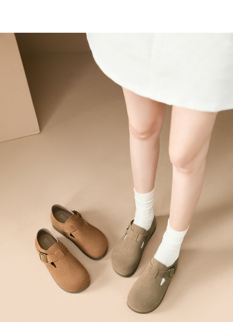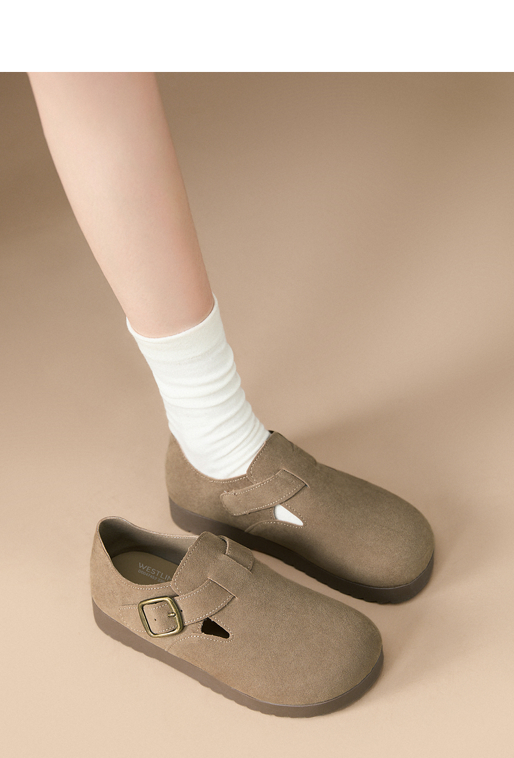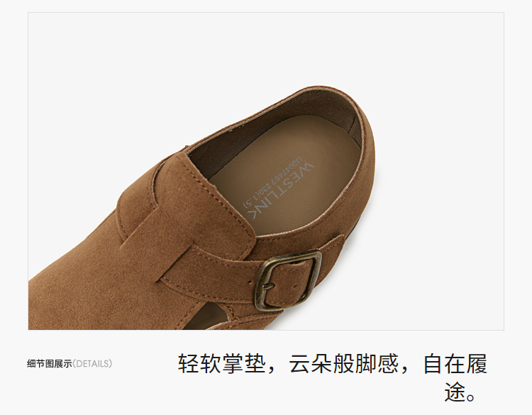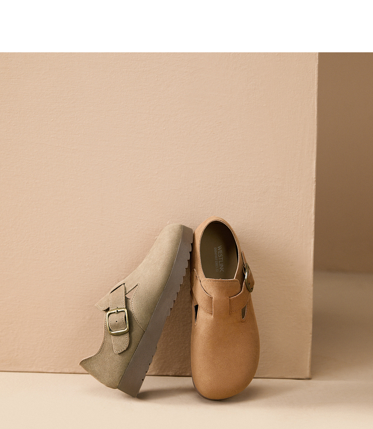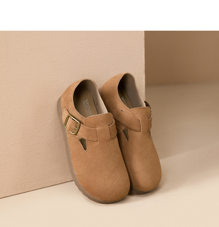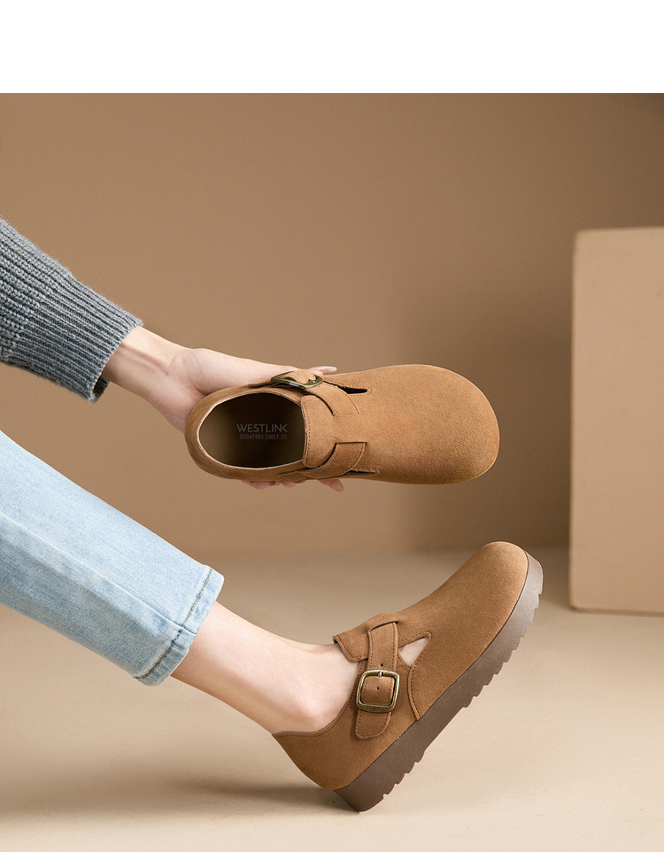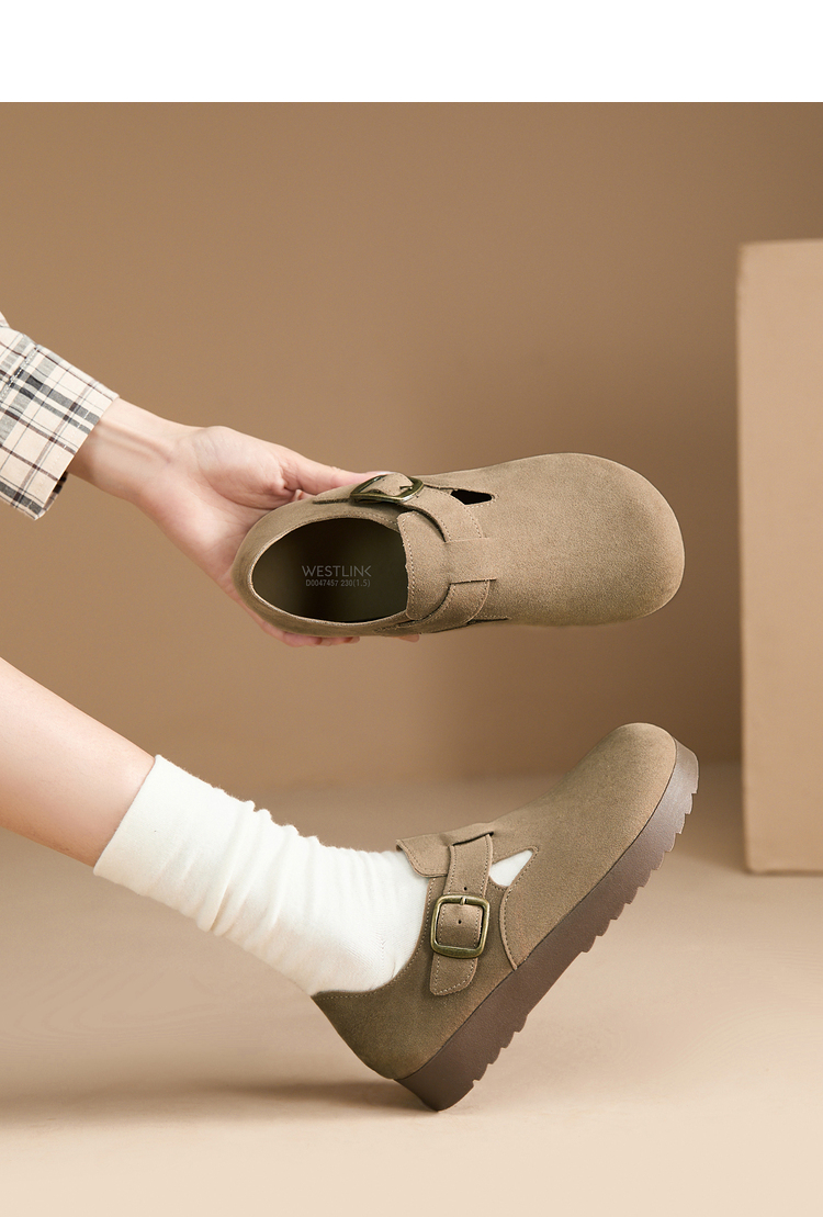 西遇全包厚底勃肯鞋女新款早春舒适休闲软底小皮鞋一脚蹬单鞋D0047457
