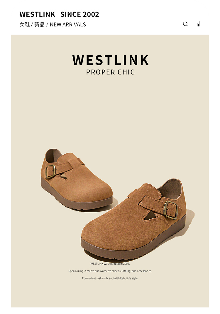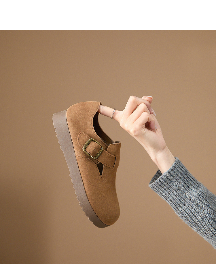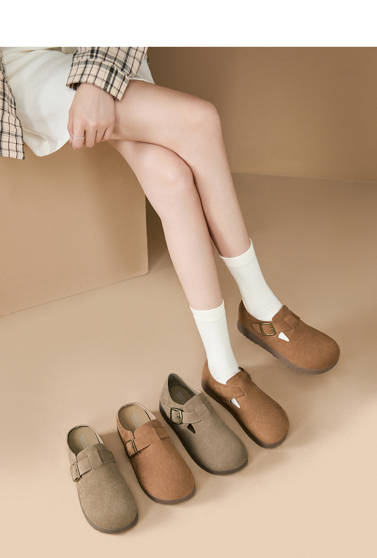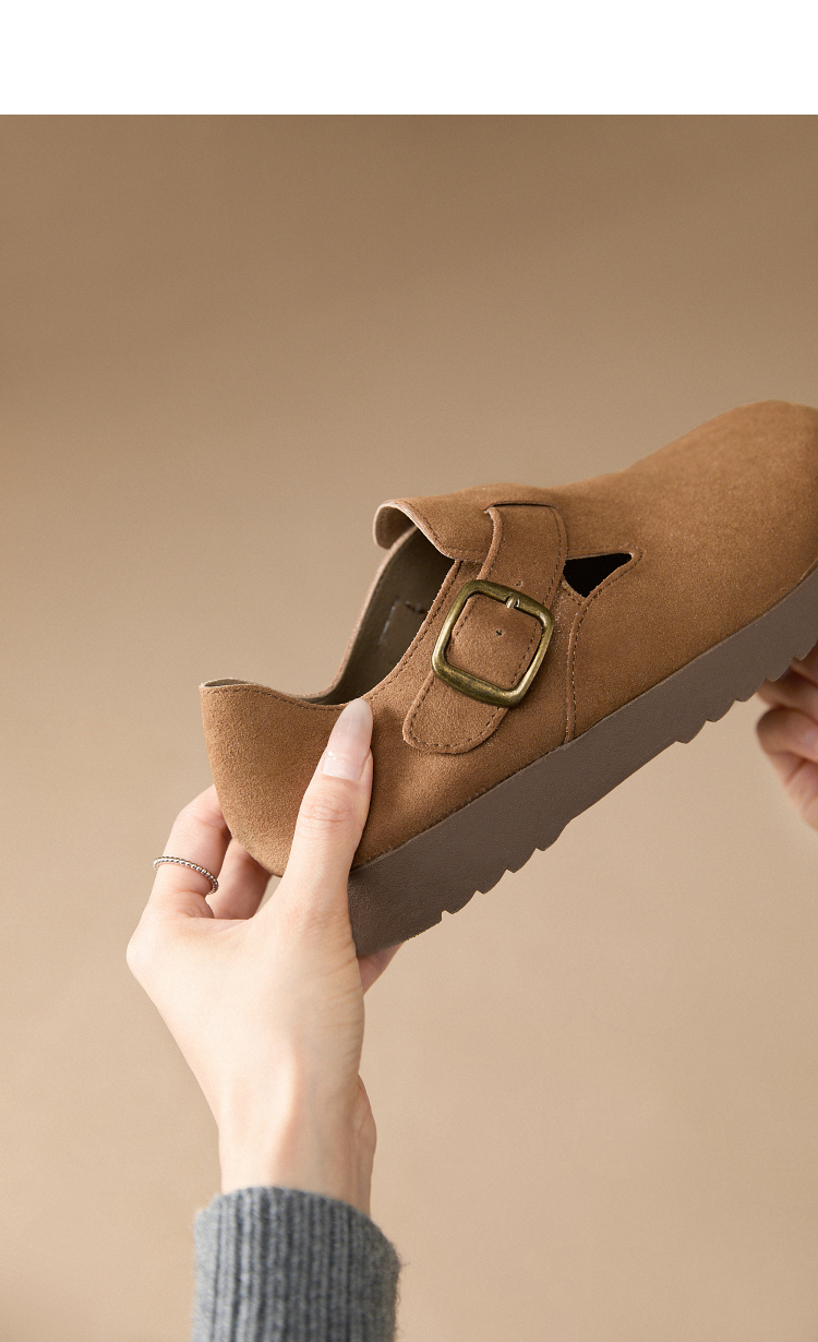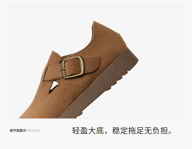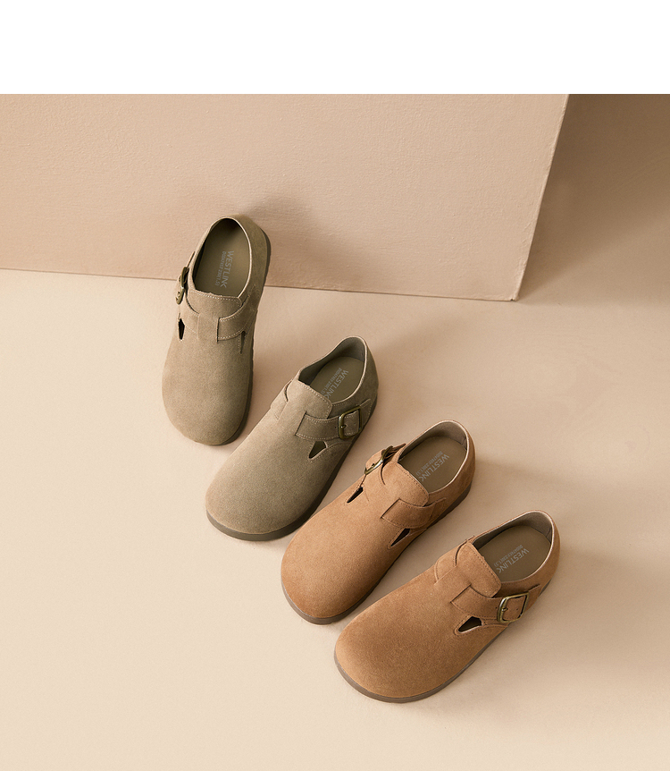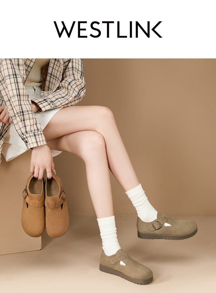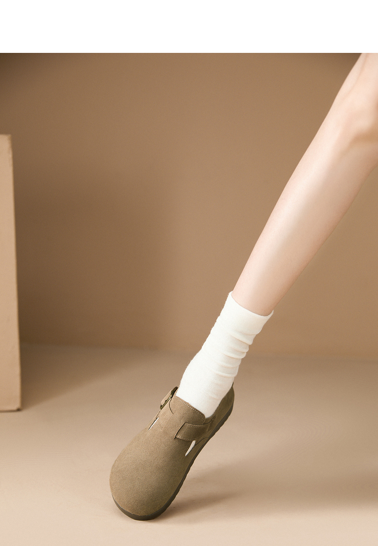 西遇全包厚底勃肯鞋女新款早春舒适休闲软底小皮鞋一脚蹬单鞋D0047457