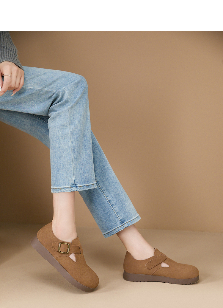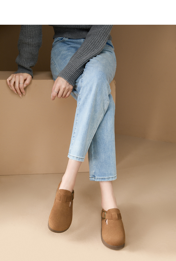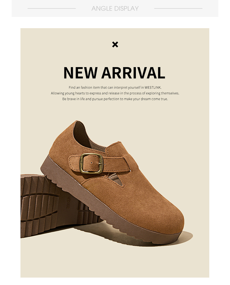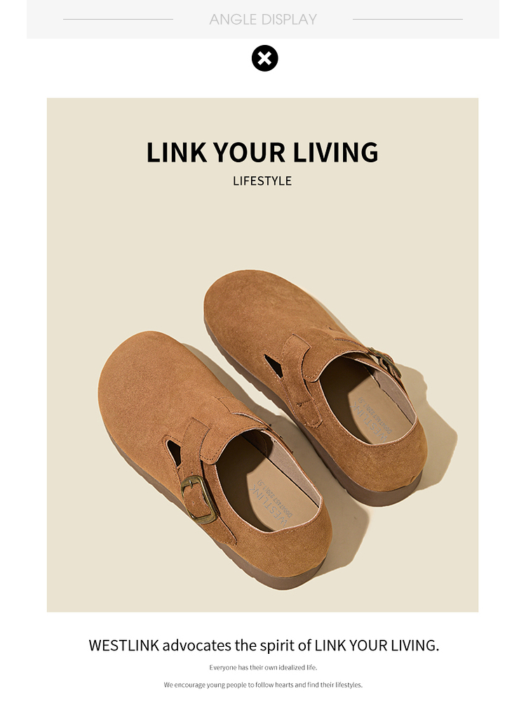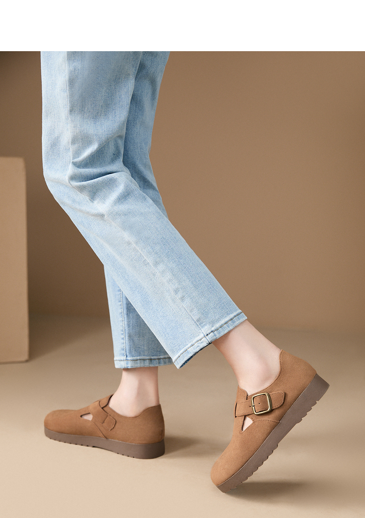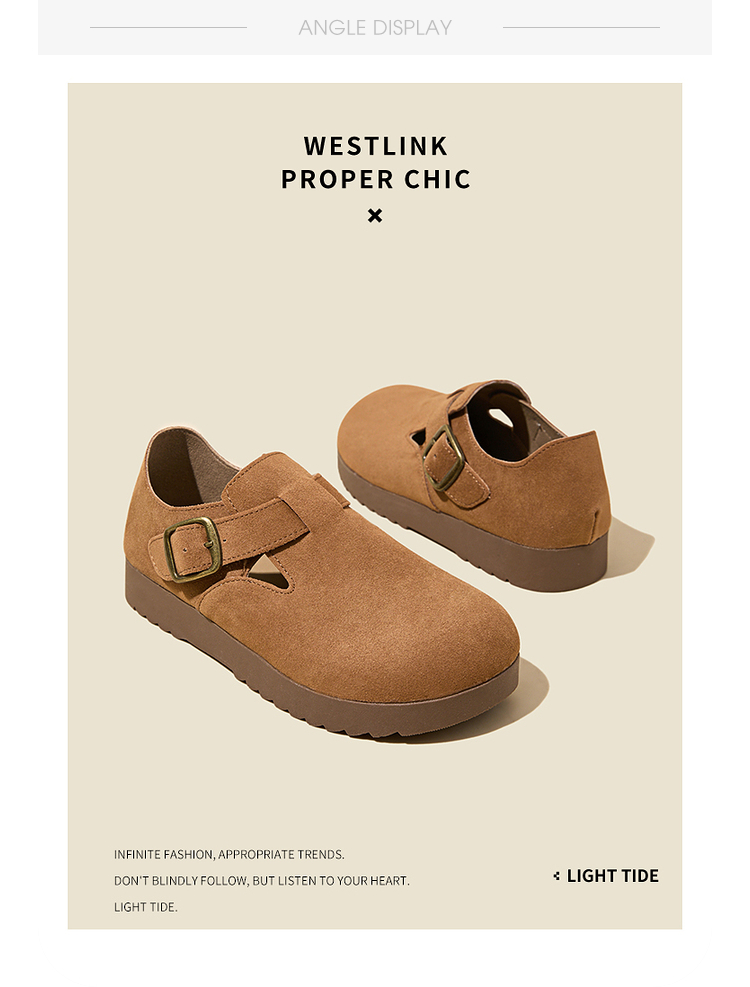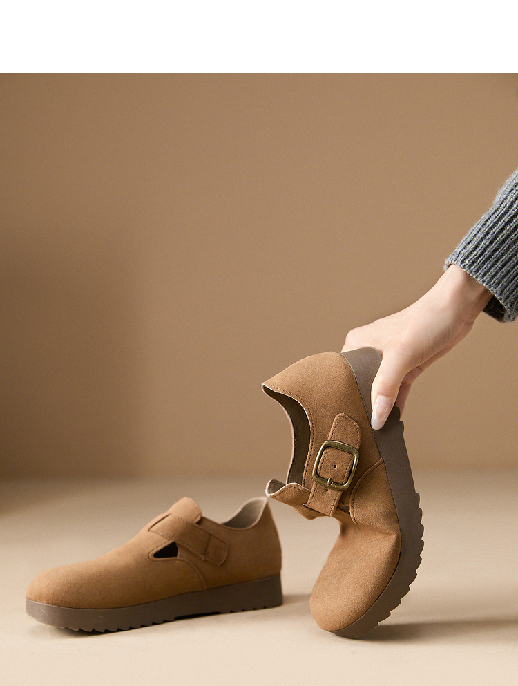 西遇全包厚底勃肯鞋女新款早春舒适休闲软底小皮鞋一脚蹬单鞋D0047457