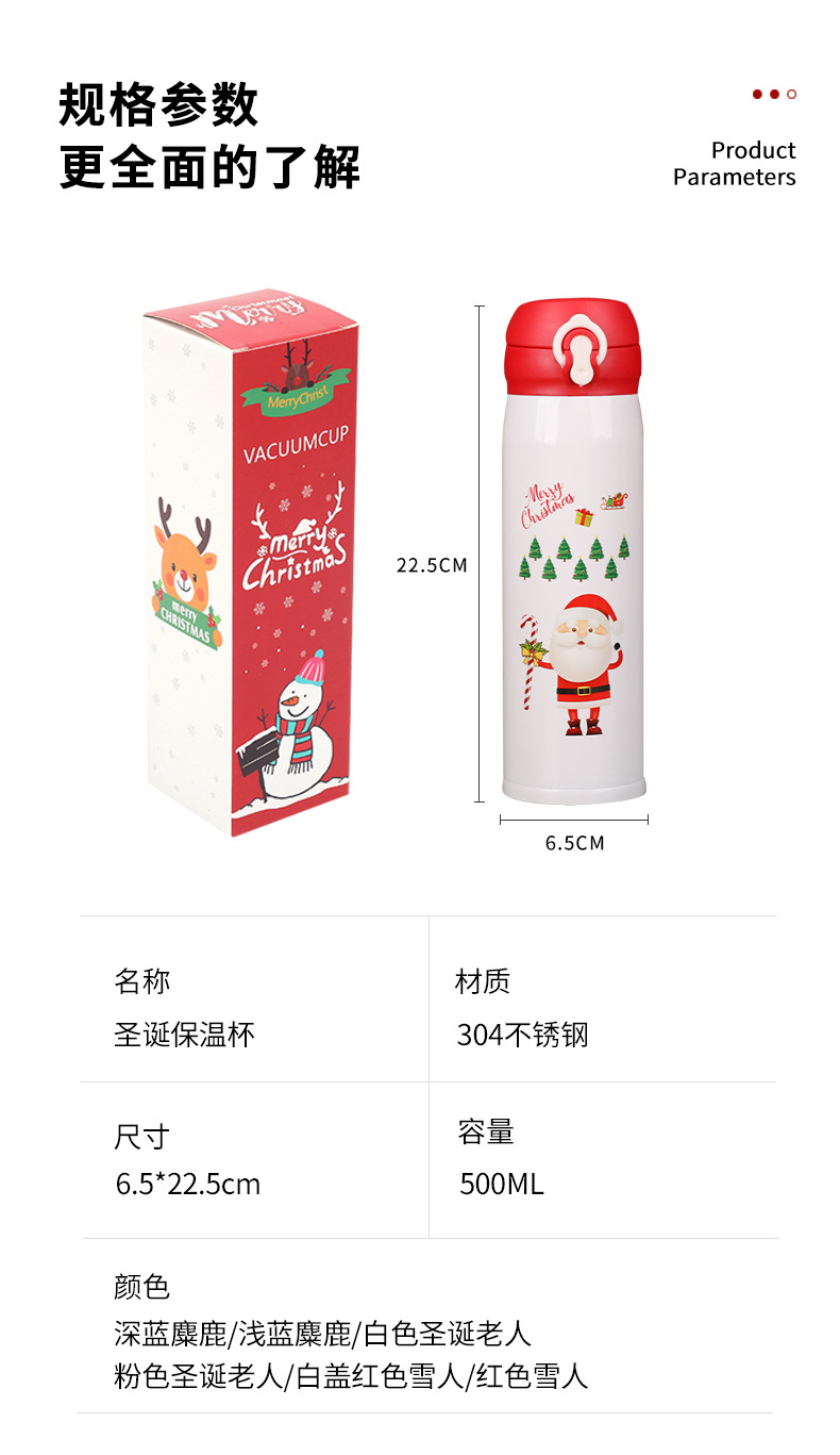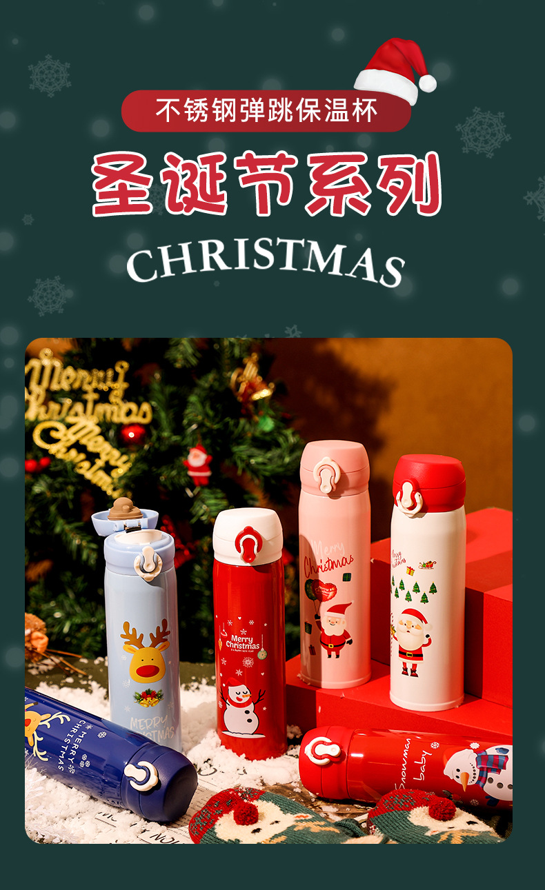 【圣诞保温杯500ml】男女弹跳不锈钢304水杯,温暖小精灵寻找主人;聪明跳跃,灵动围览,守护节日的温馨和快乐。适合作为节日礼品,也是孩子们心动颜值礼物,让圣诞主题弹跳水杯点燃心灵的火花!