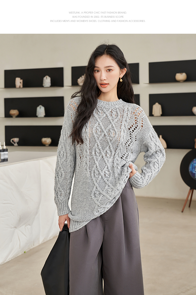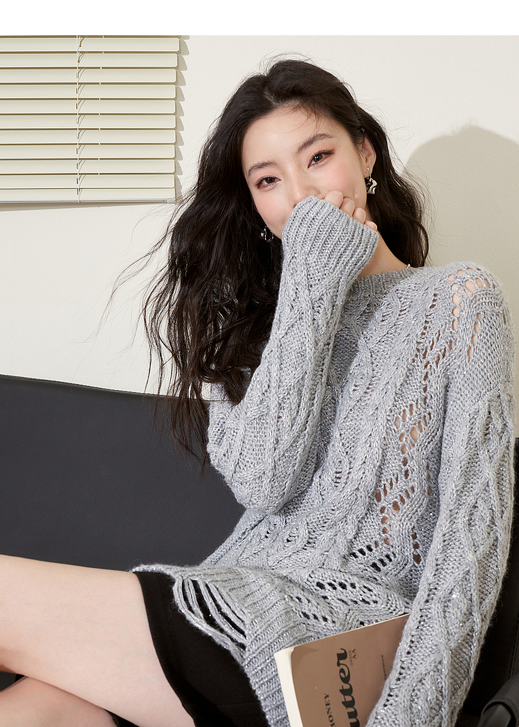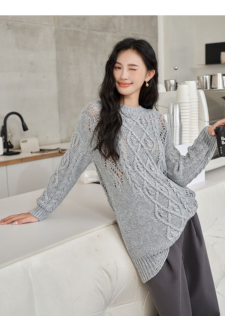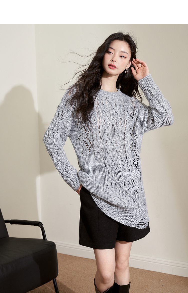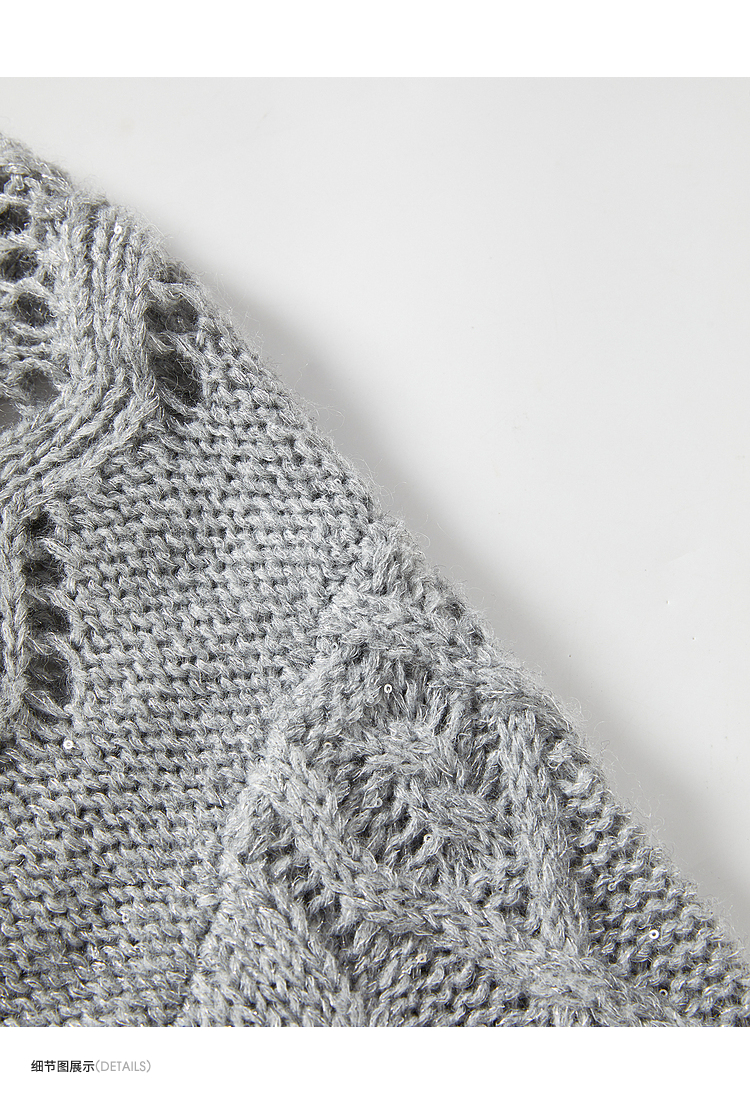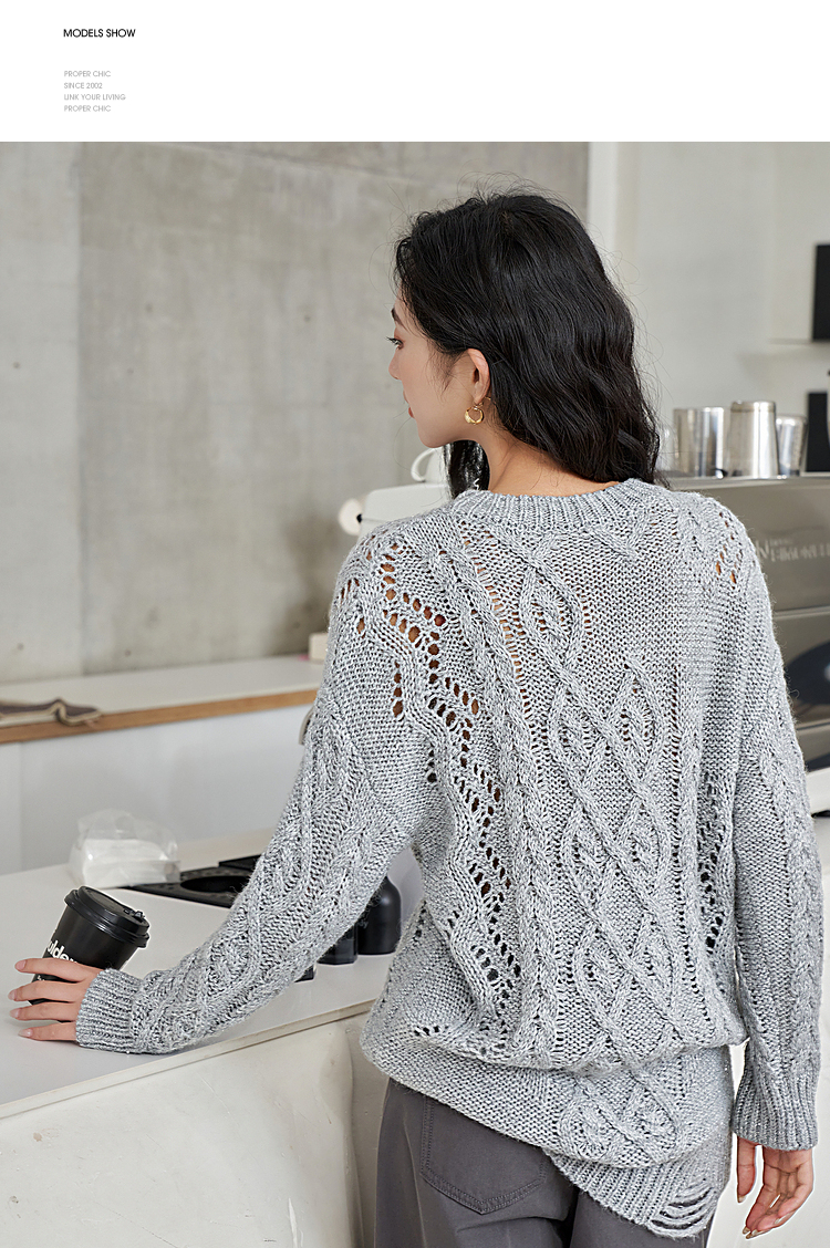 慵懒风镂空针织衫毛衣女秋季新款设计感宽松套头上衣女V2038424