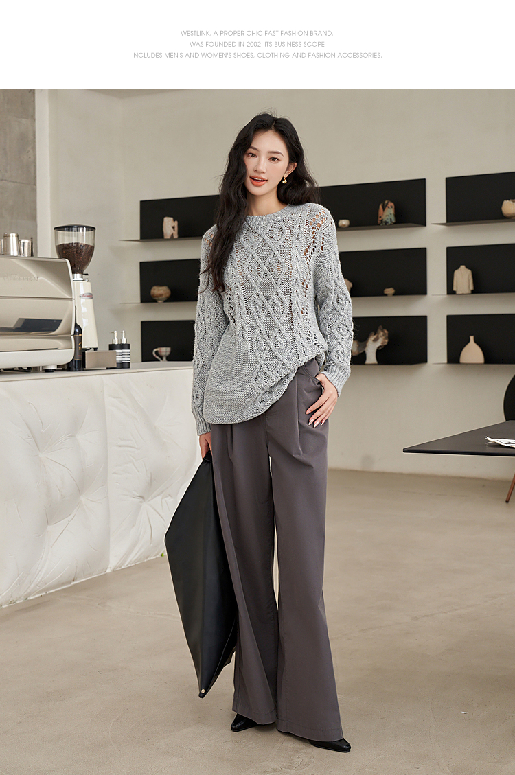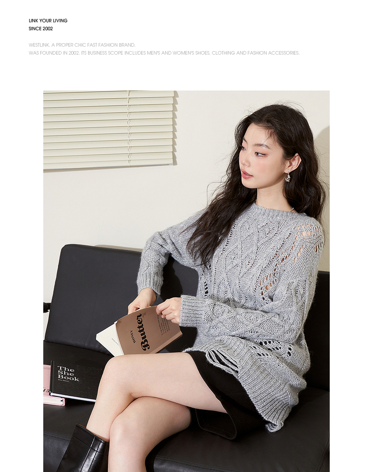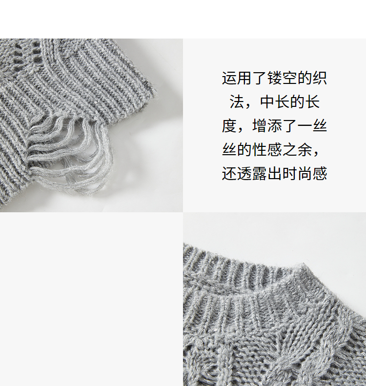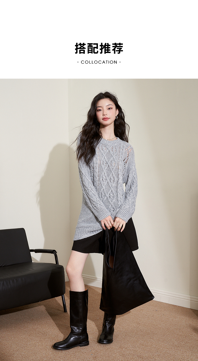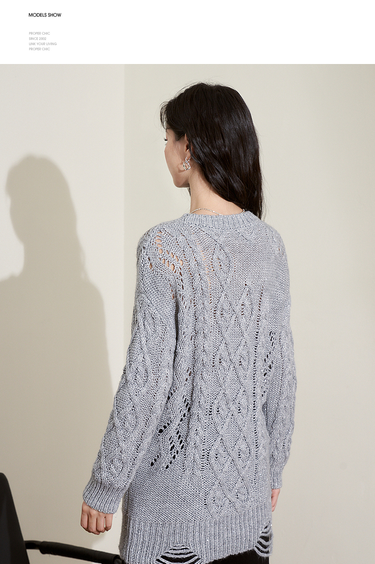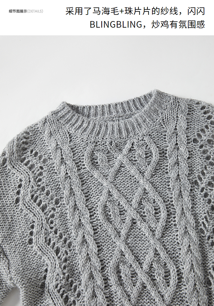 慵懒风镂空针织衫毛衣女秋季新款设计感宽松套头上衣女V2038424
