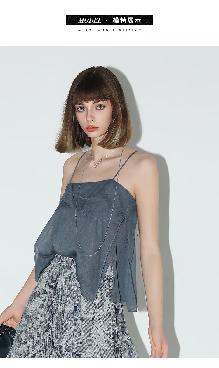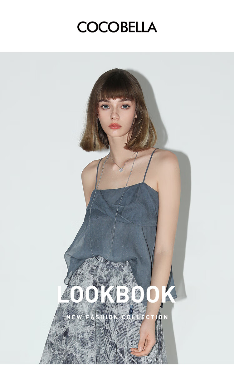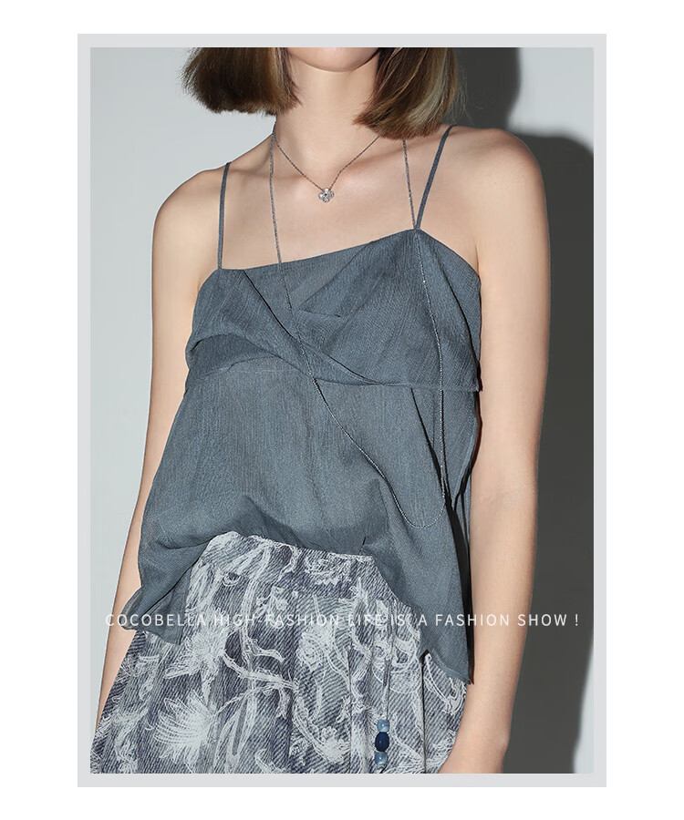 COCOBELLA设计感立体拧花吊带可外穿轻盈雪纺抹胸背心VT0015