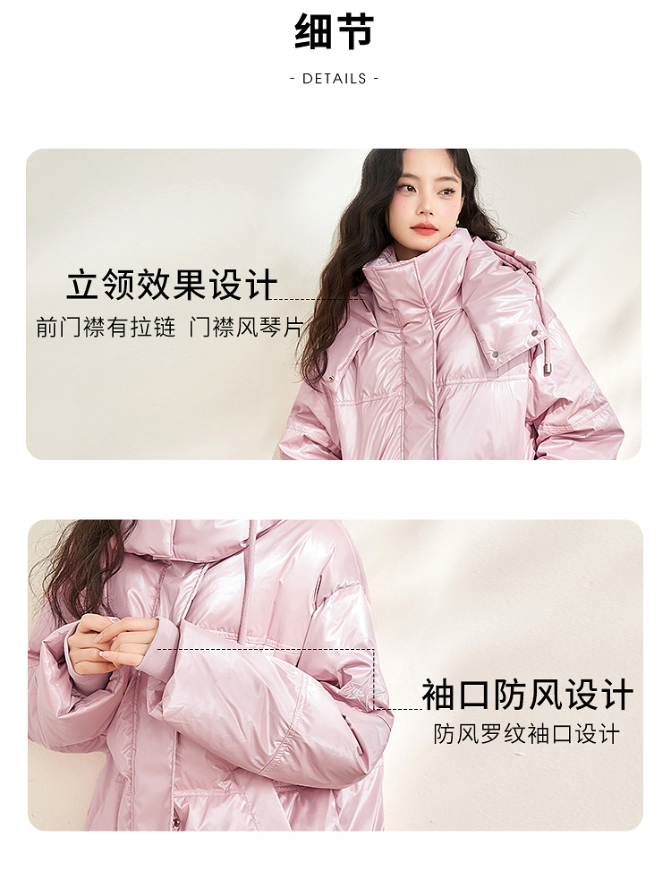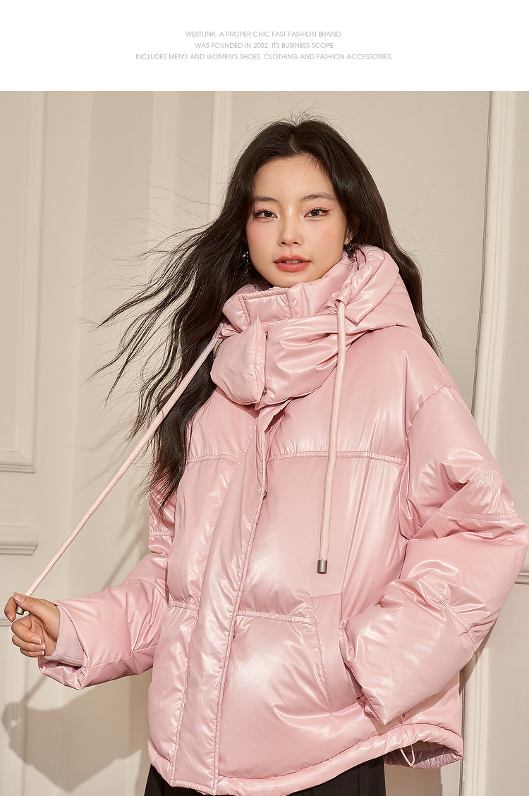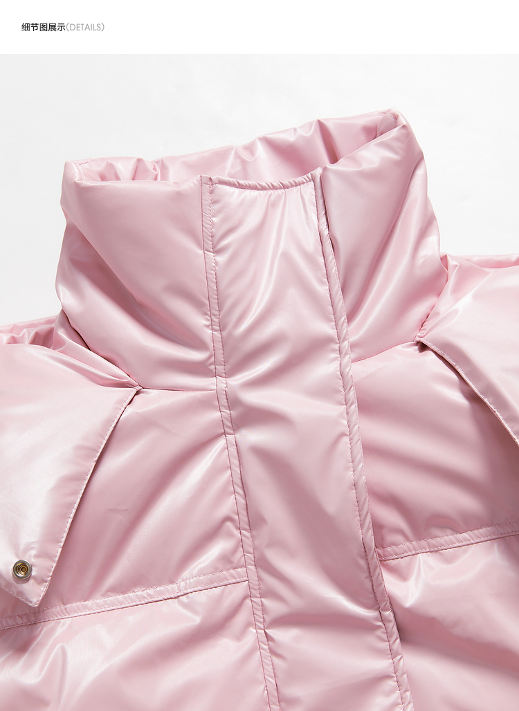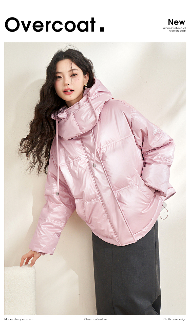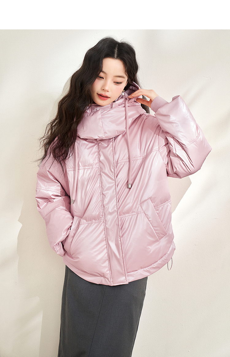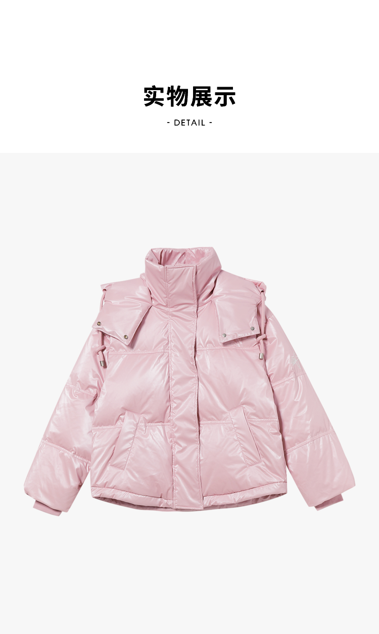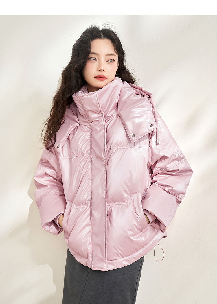 西遇粉色立领连帽羽绒服女秋冬新款小个子韩系加厚短款外套D2438585