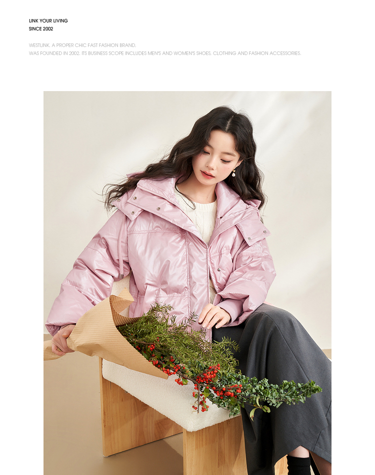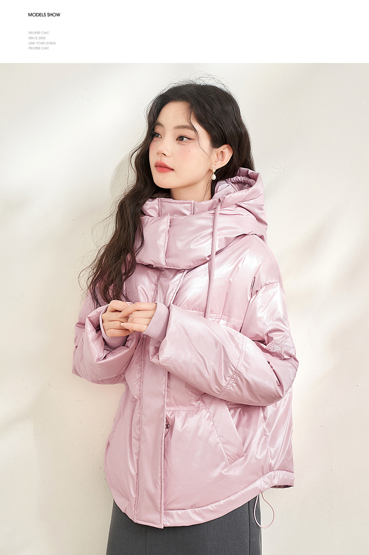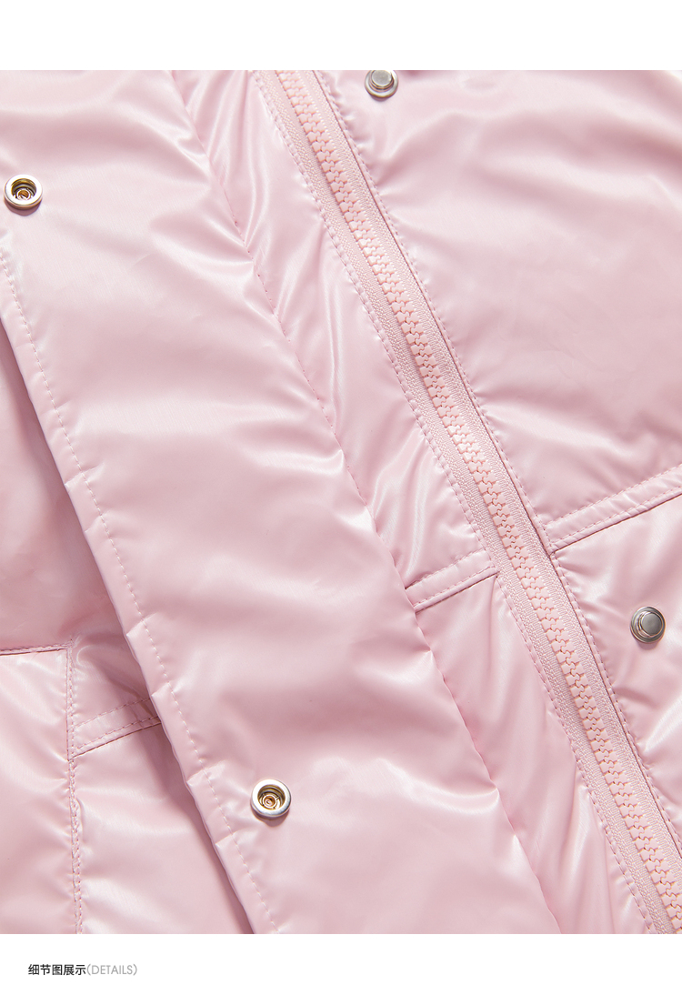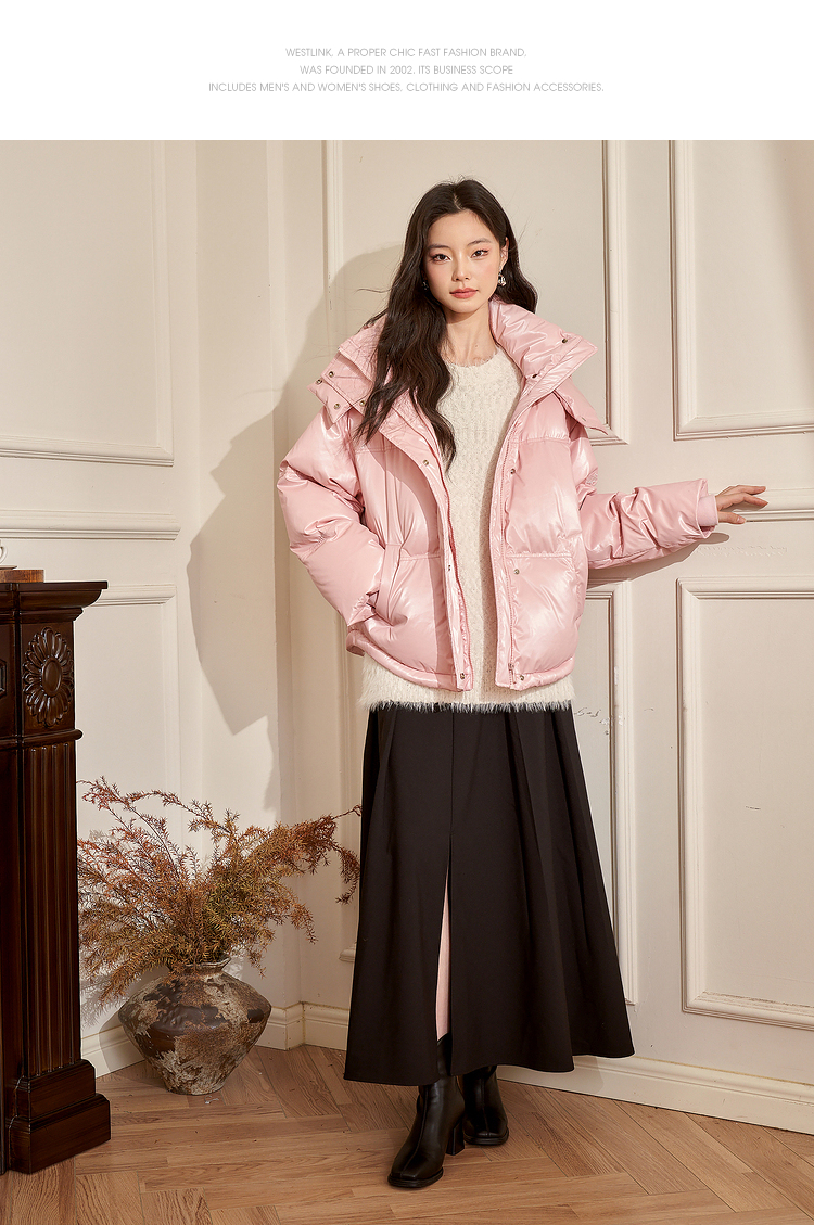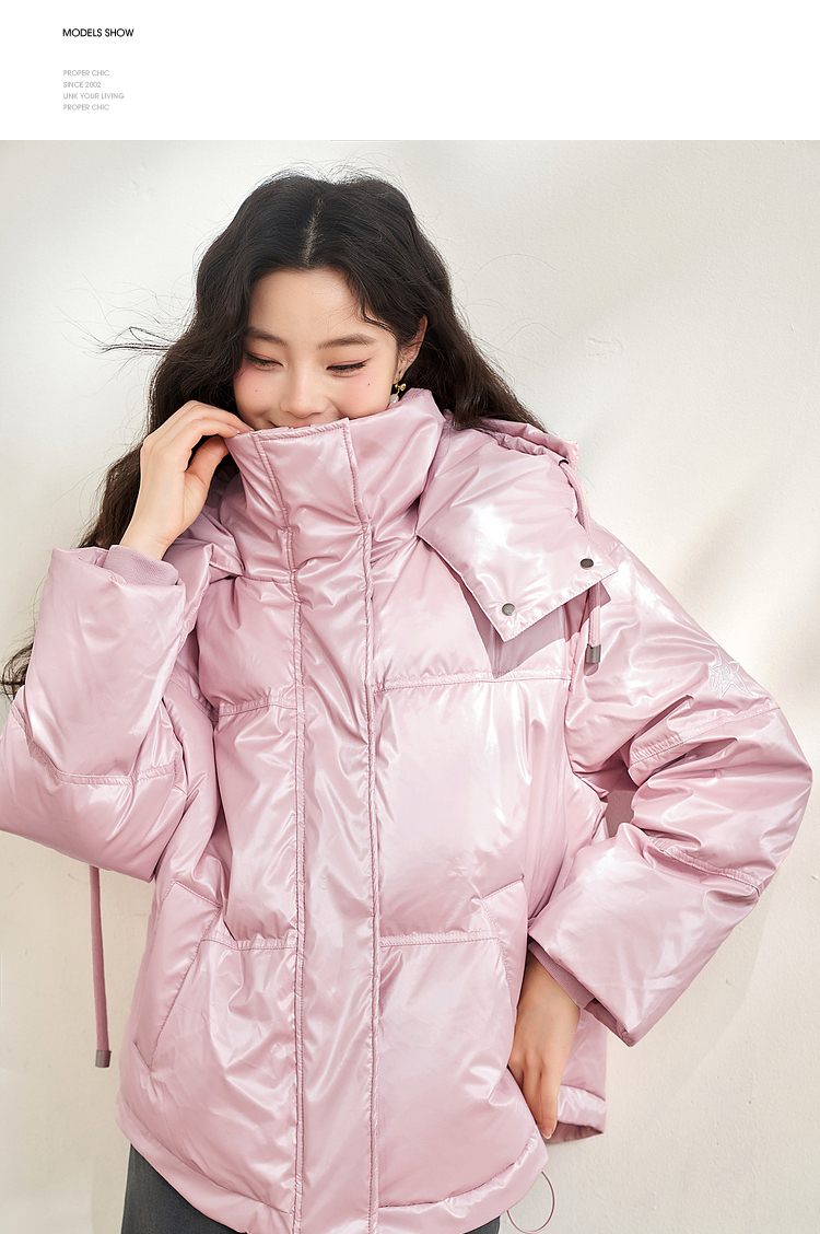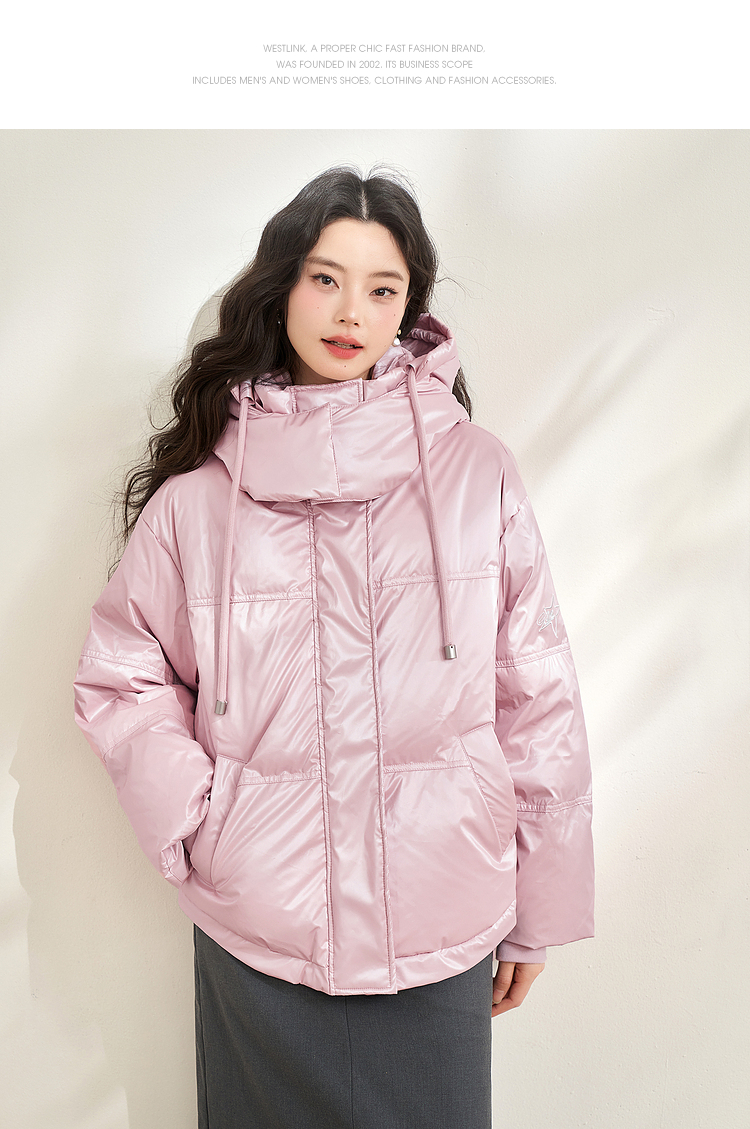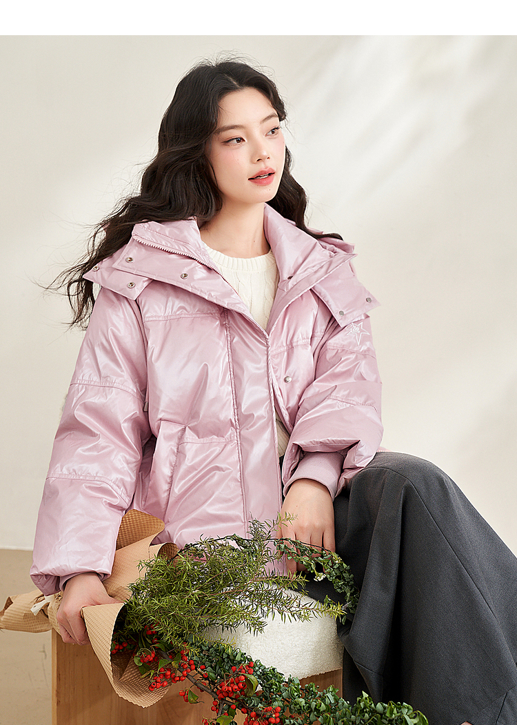 西遇粉色立领连帽羽绒服女秋冬新款小个子韩系加厚短款外套D2438585