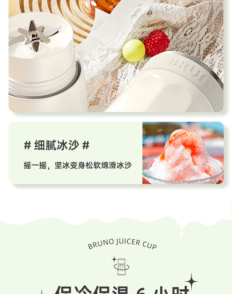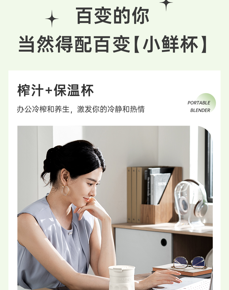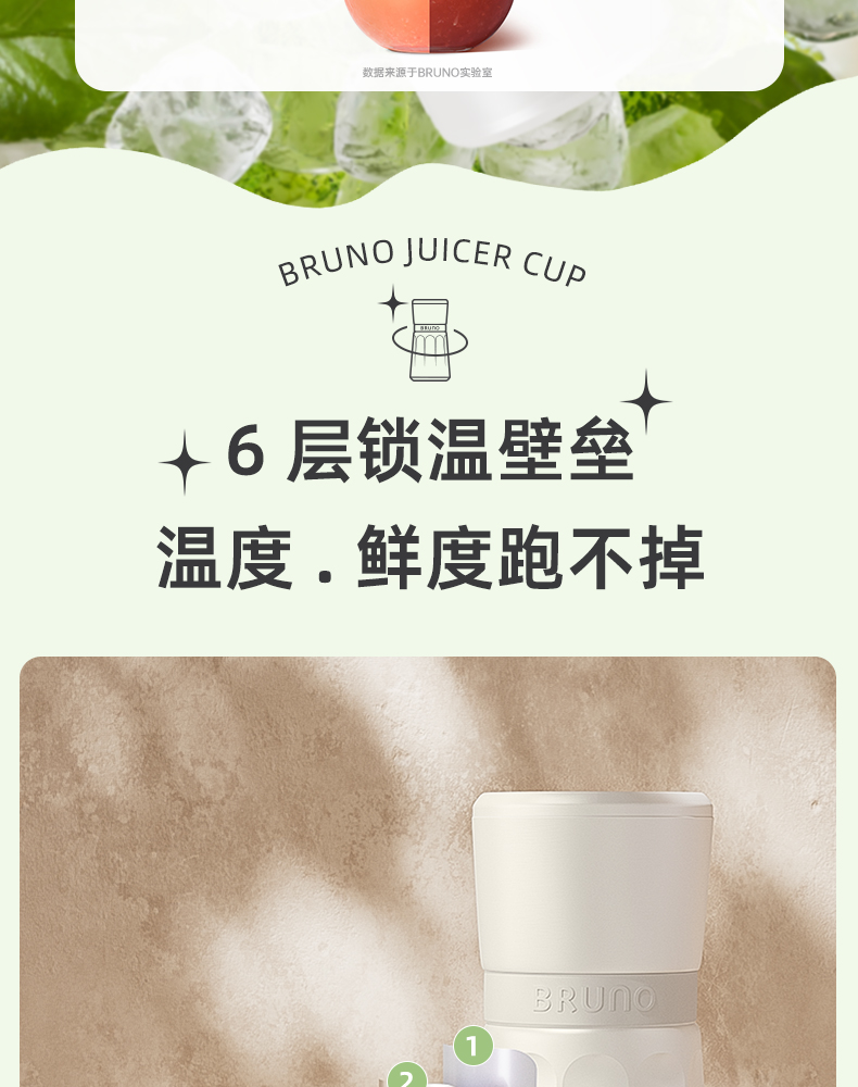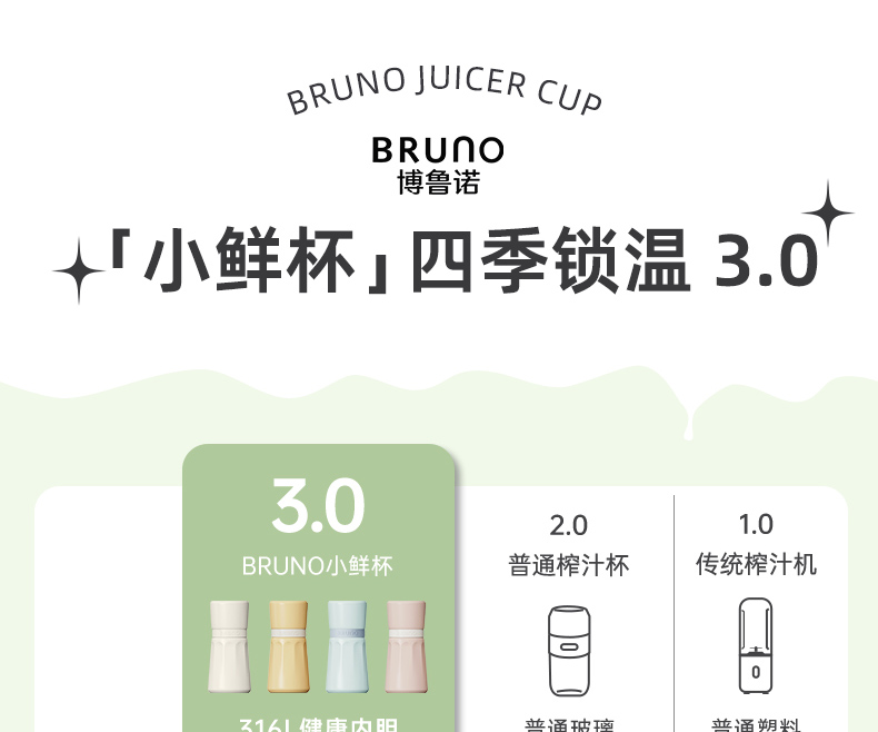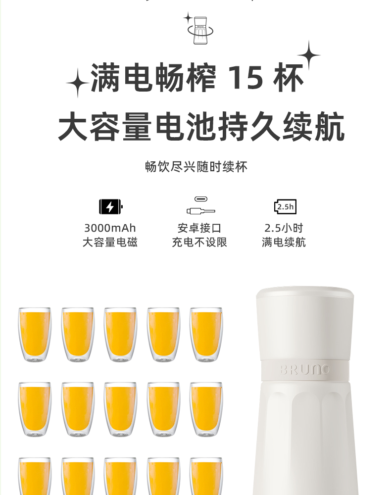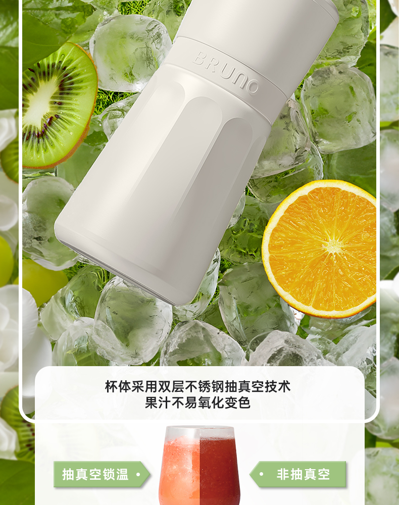 【日本迷你榨汁机】BRUNO榨汁机小型无线便携不锈钢保温果蔬榨汁杯家用碎冰搅拌果汁