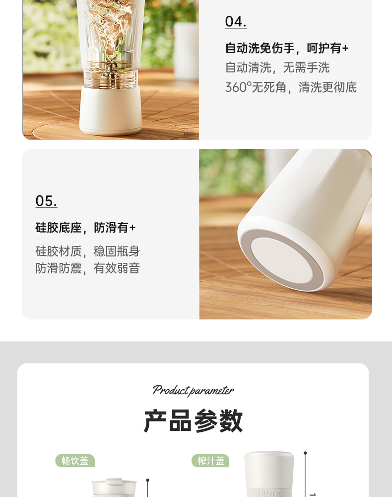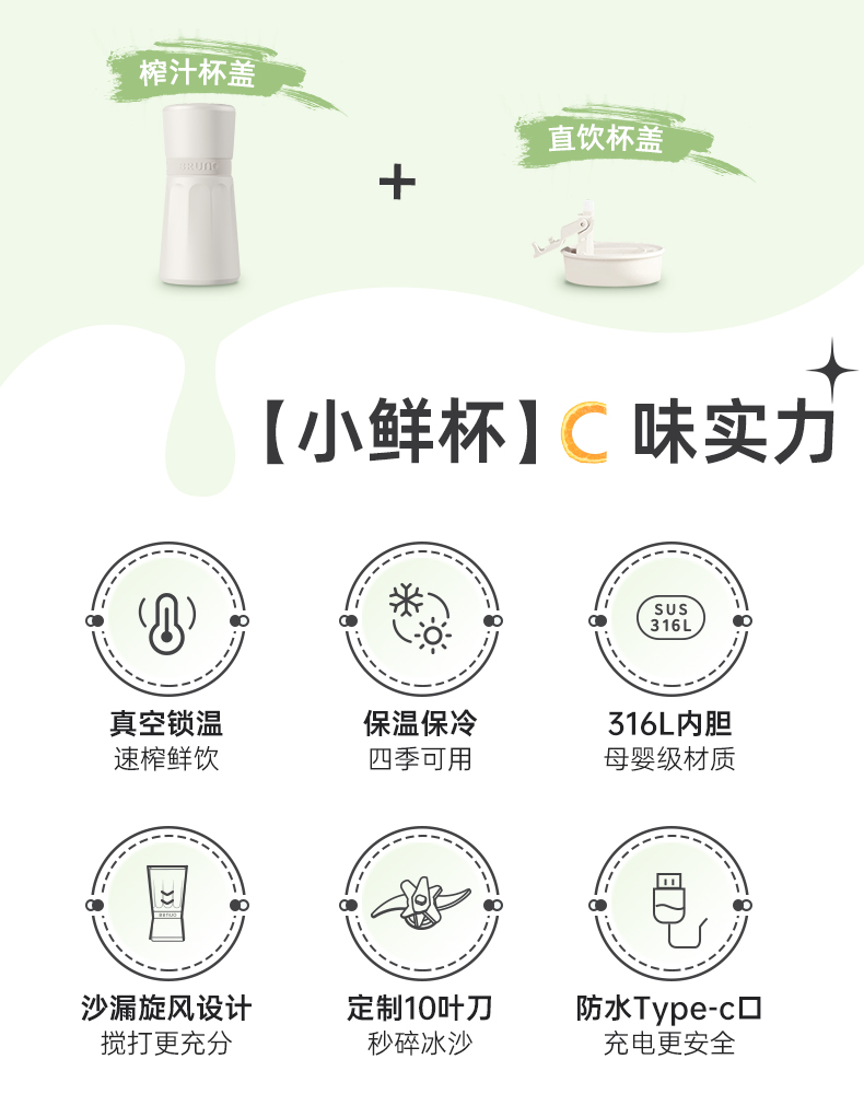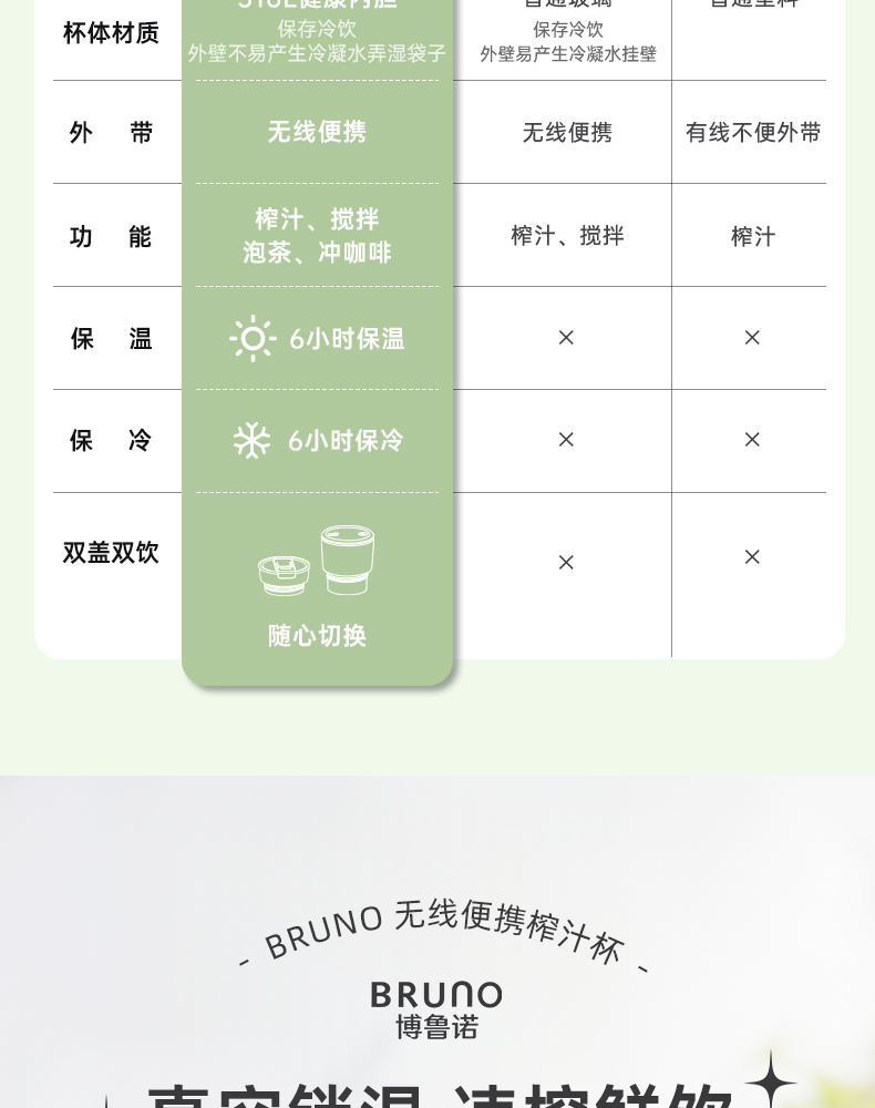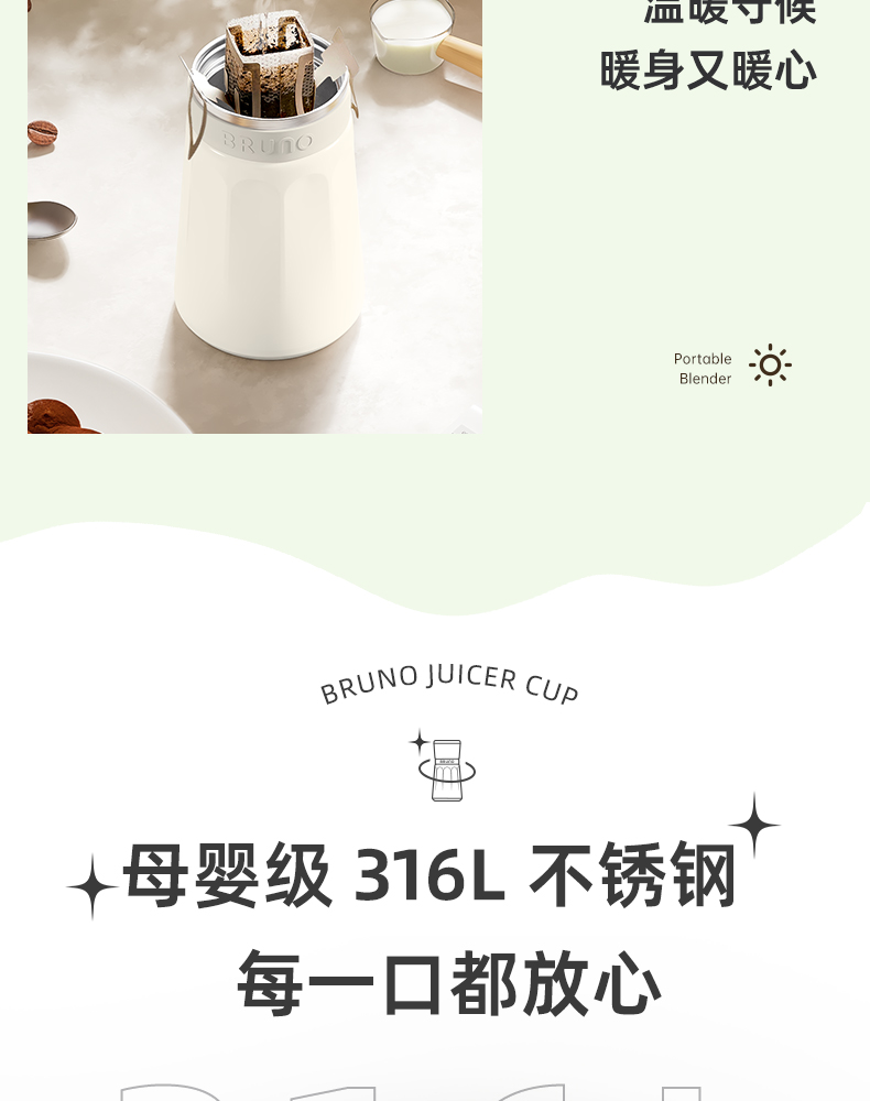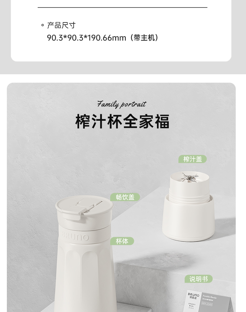 【日本迷你榨汁机】BRUNO榨汁机小型无线便携不锈钢保温果蔬榨汁杯家用碎冰搅拌果汁