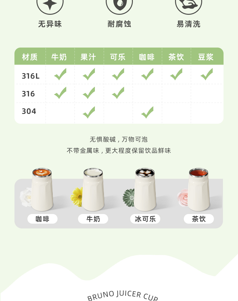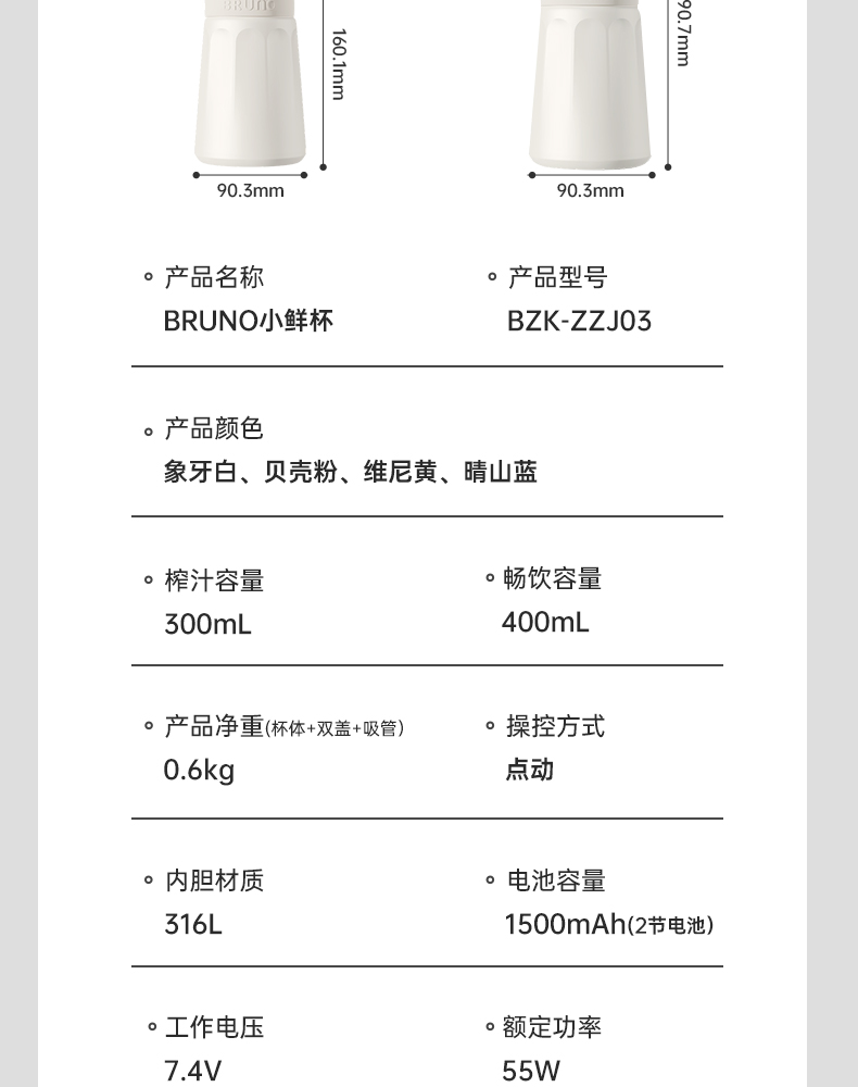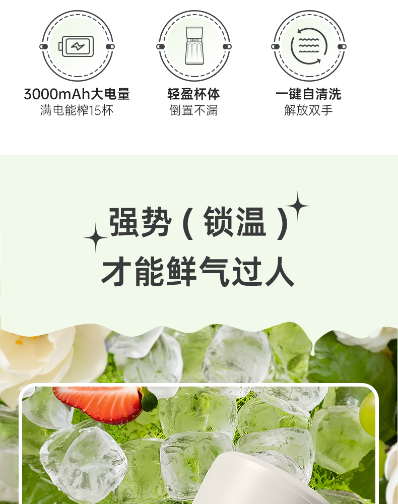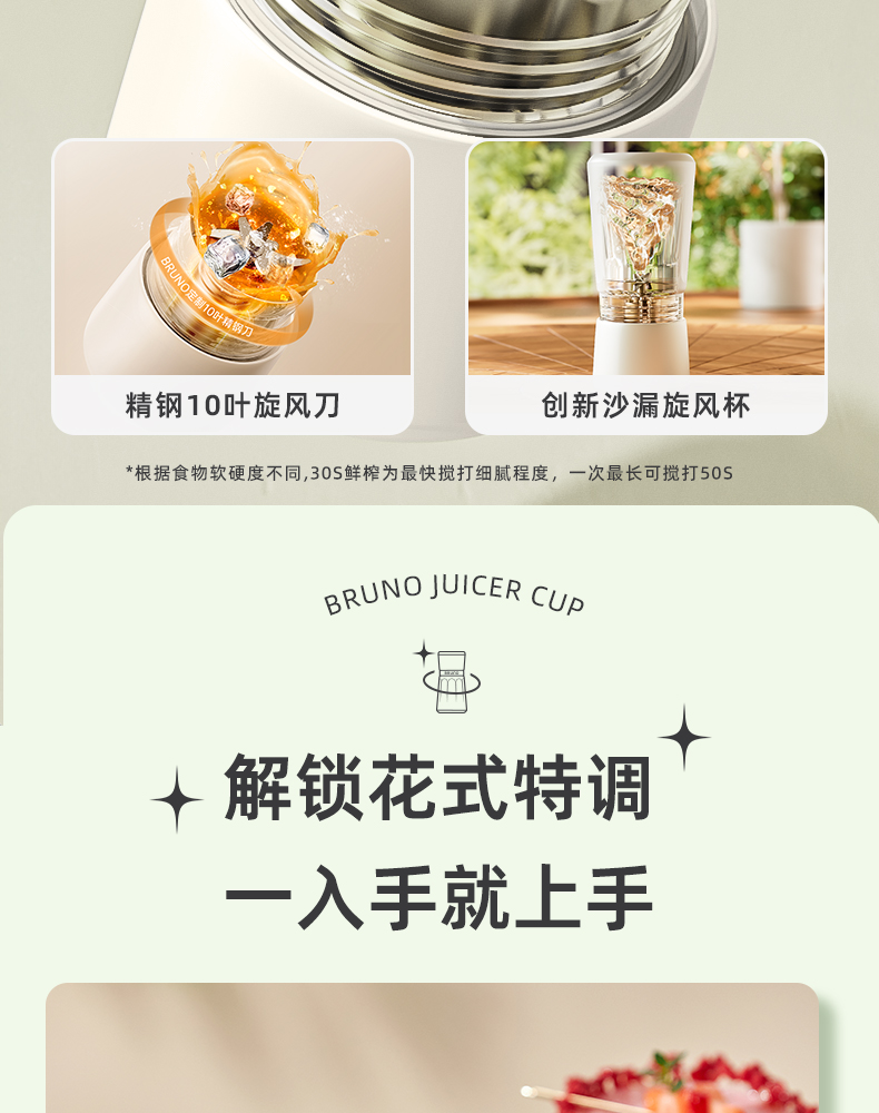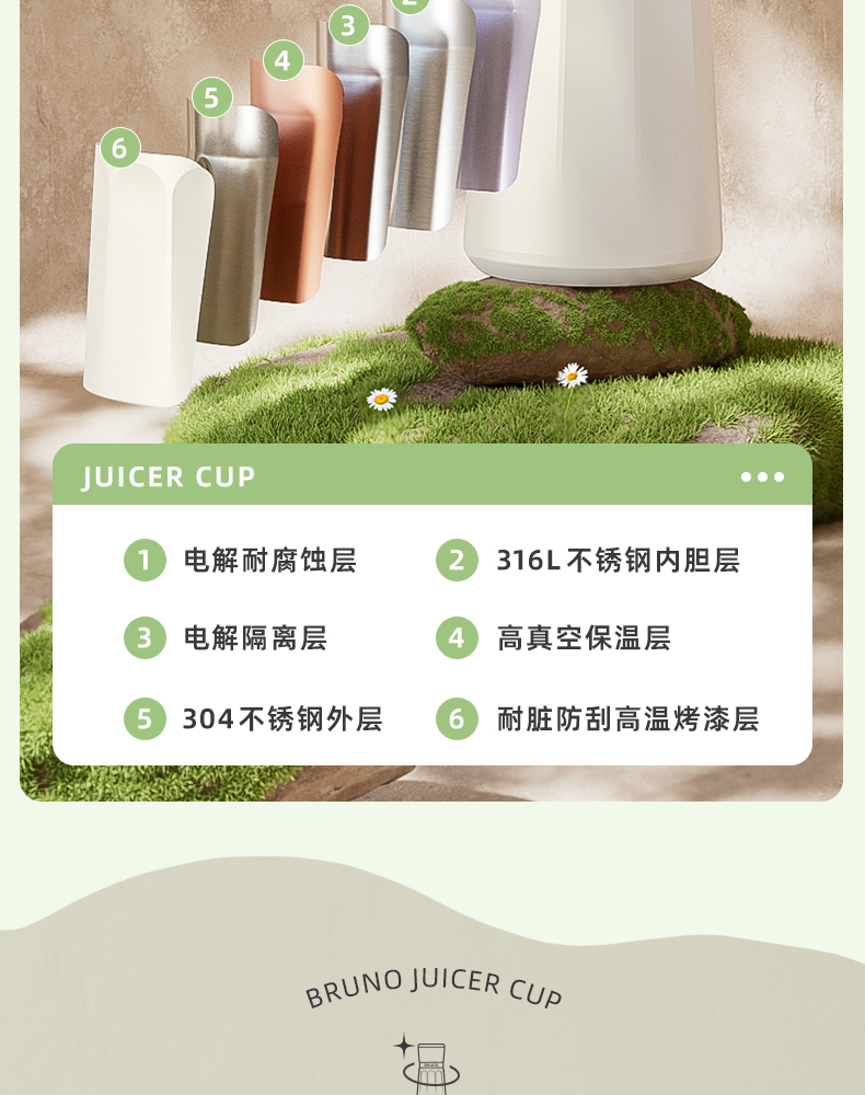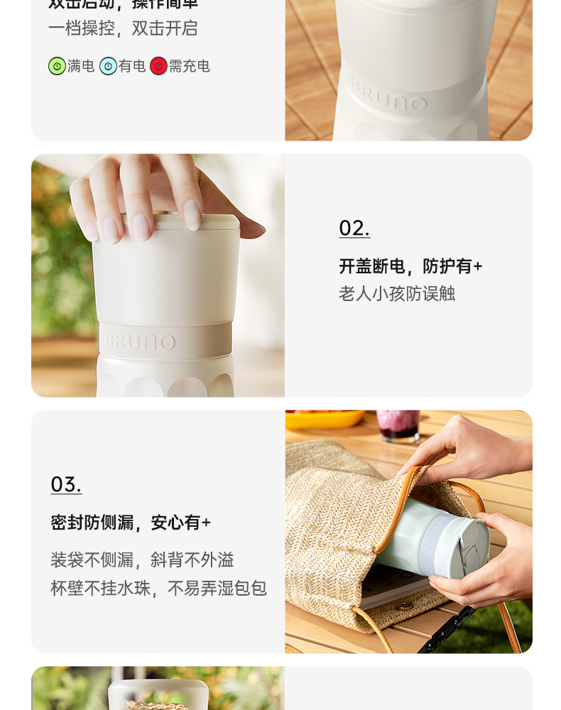 【日本迷你榨汁机】BRUNO榨汁机小型无线便携不锈钢保温果蔬榨汁杯家用碎冰搅拌果汁