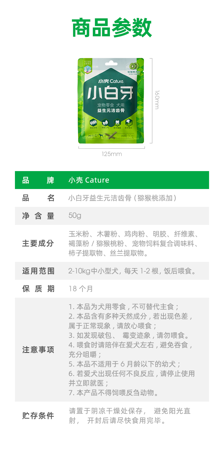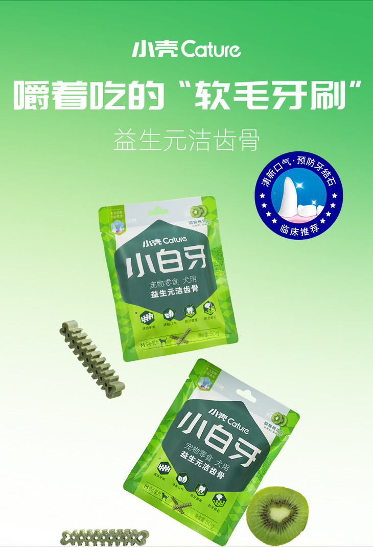 【壳币兑换】小白牙狗狗益生元洁齿骨试用装组合 50g/包(猕猴桃口味),限兑1份
