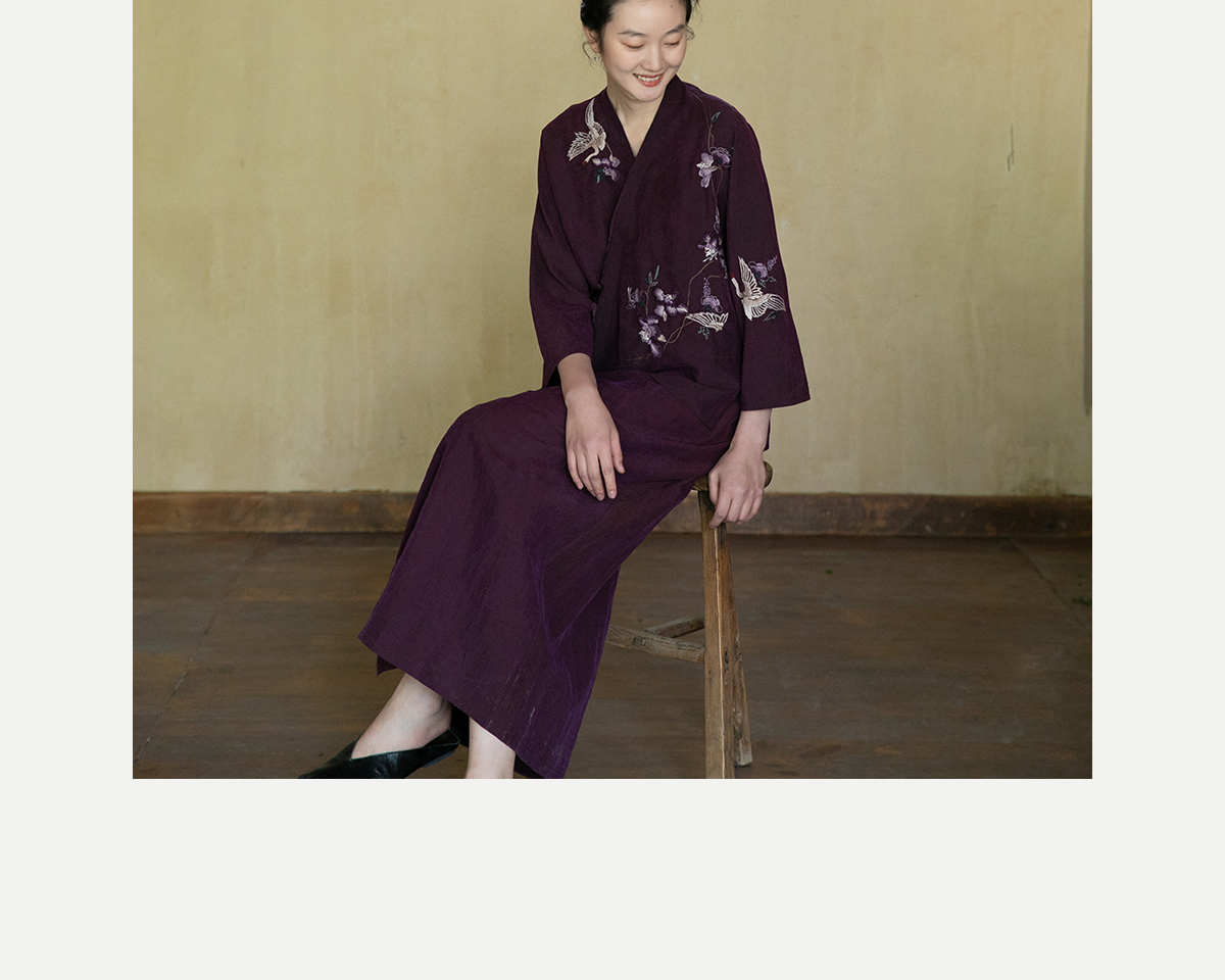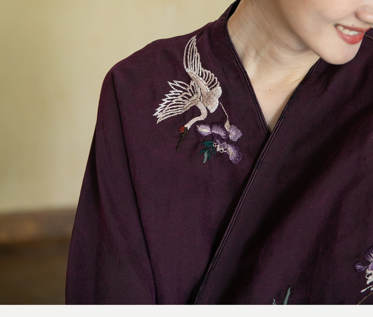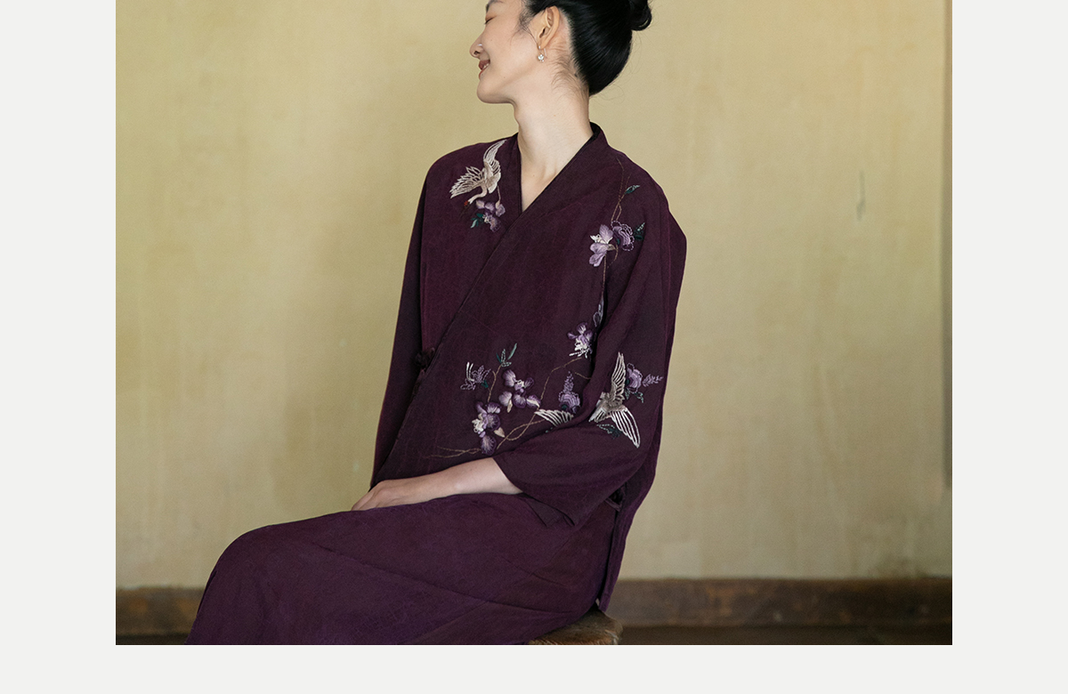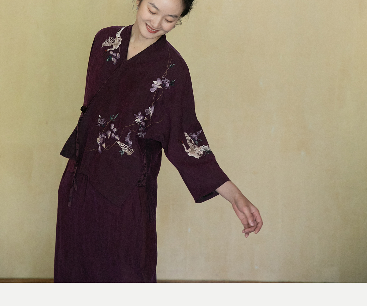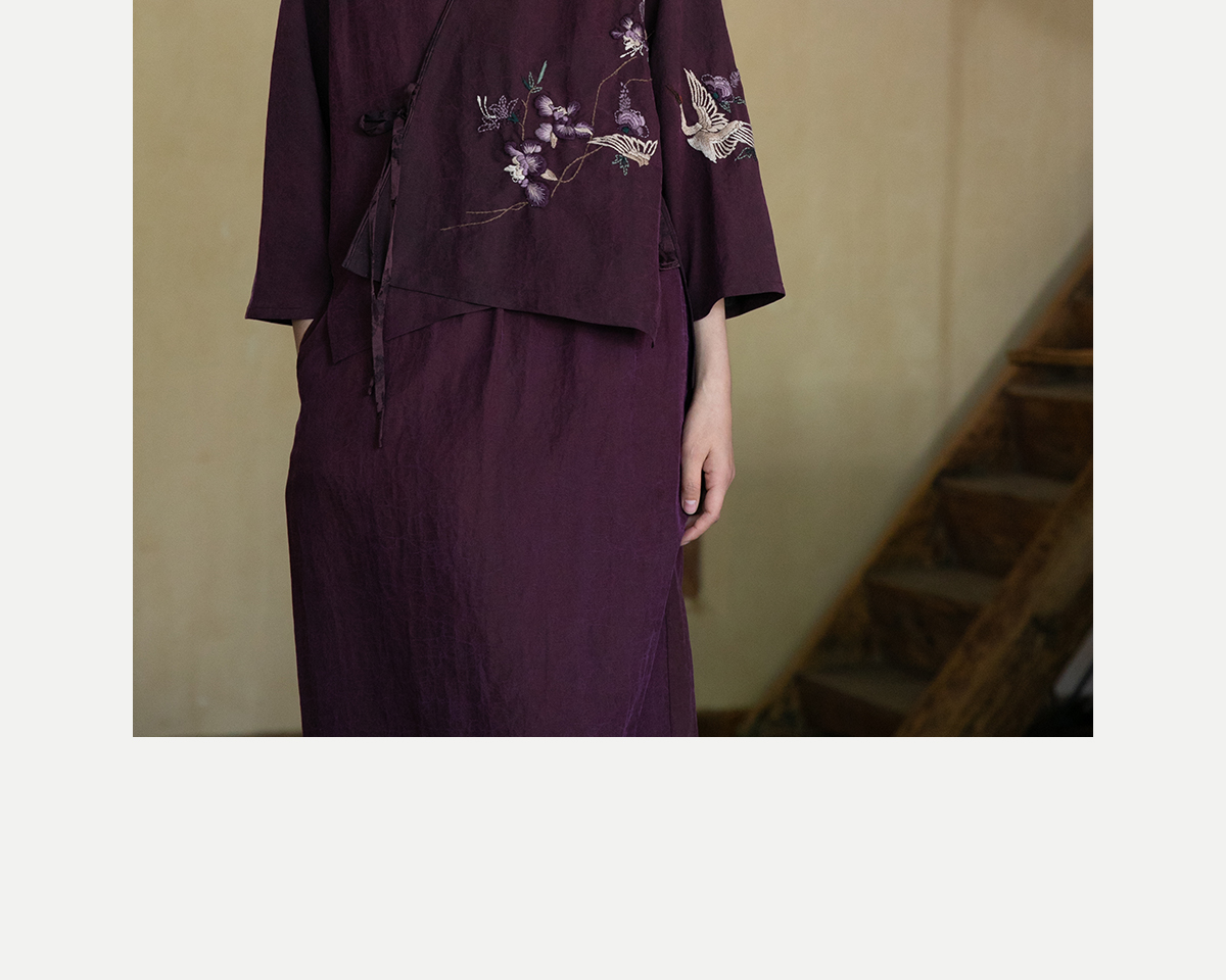 牧衣游原创重工手绣紫香云纱外套新款龟裂纹禅意复古上衣 深深愿