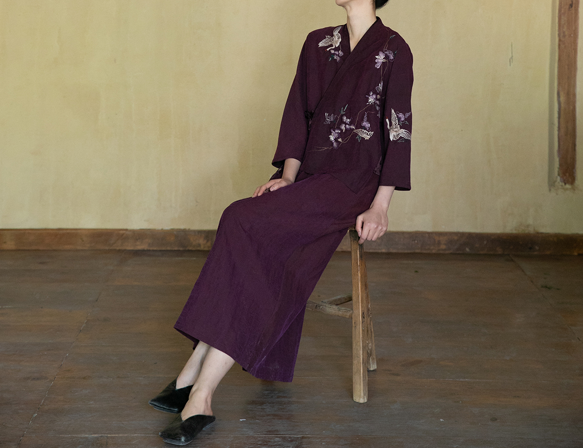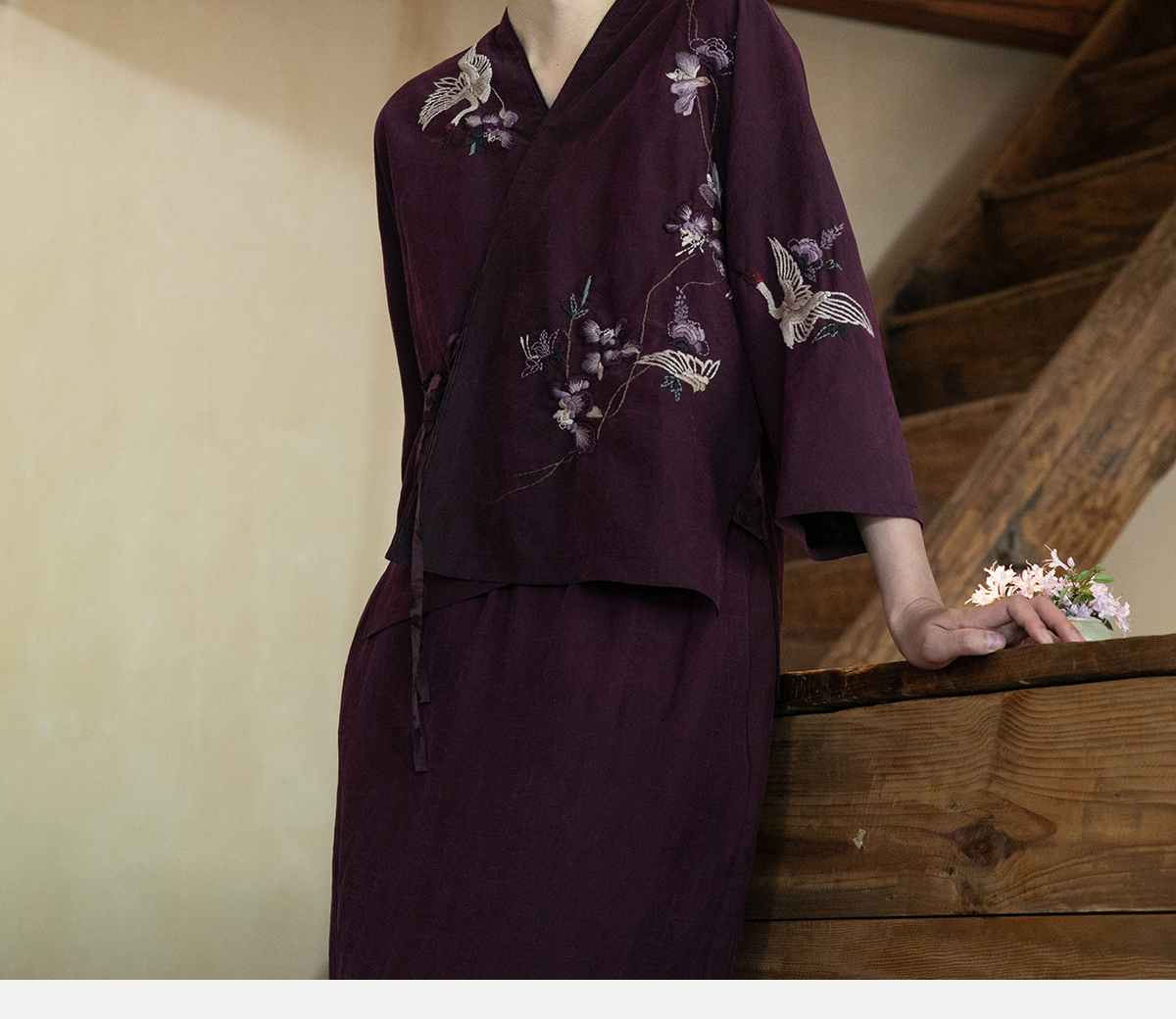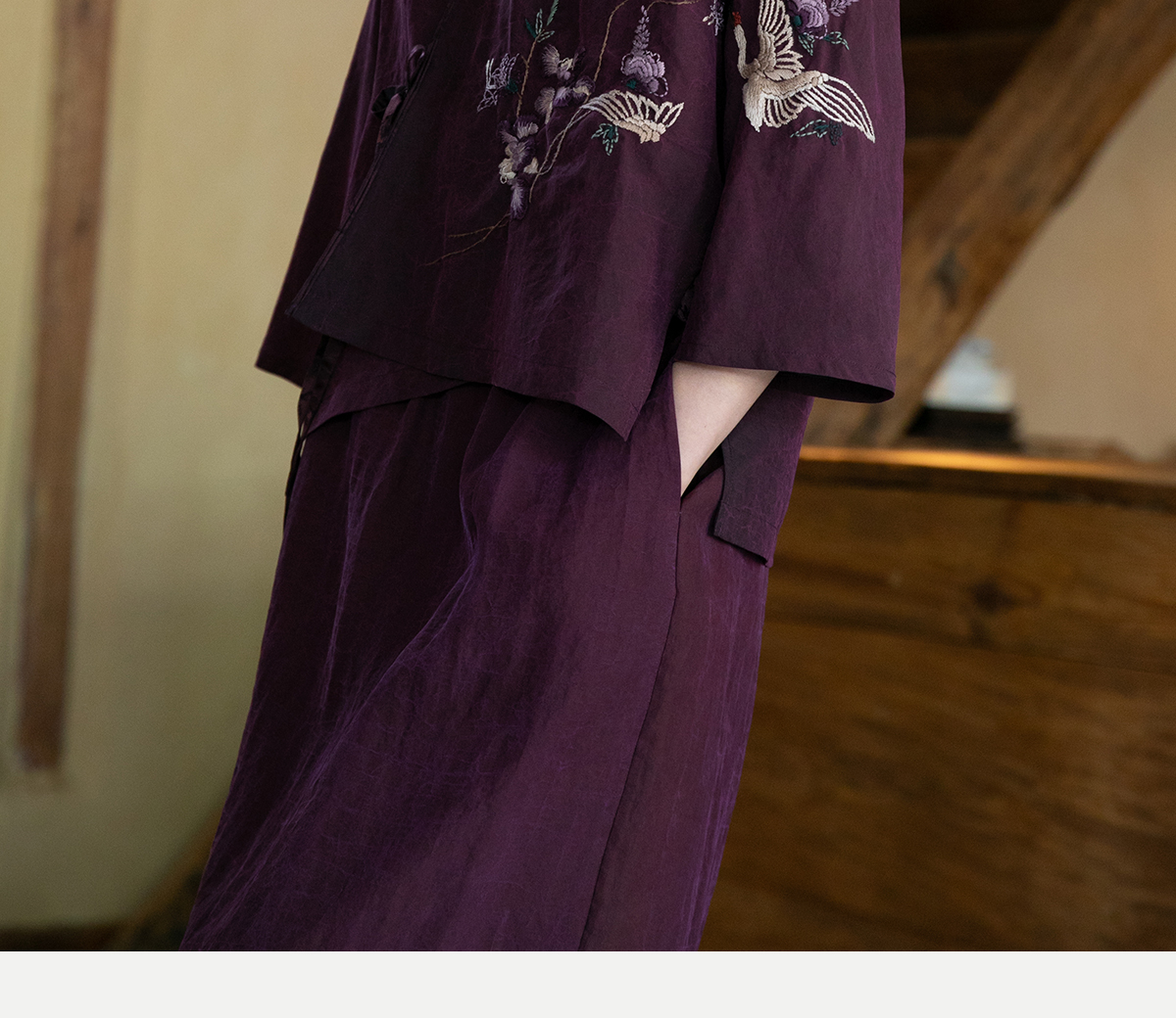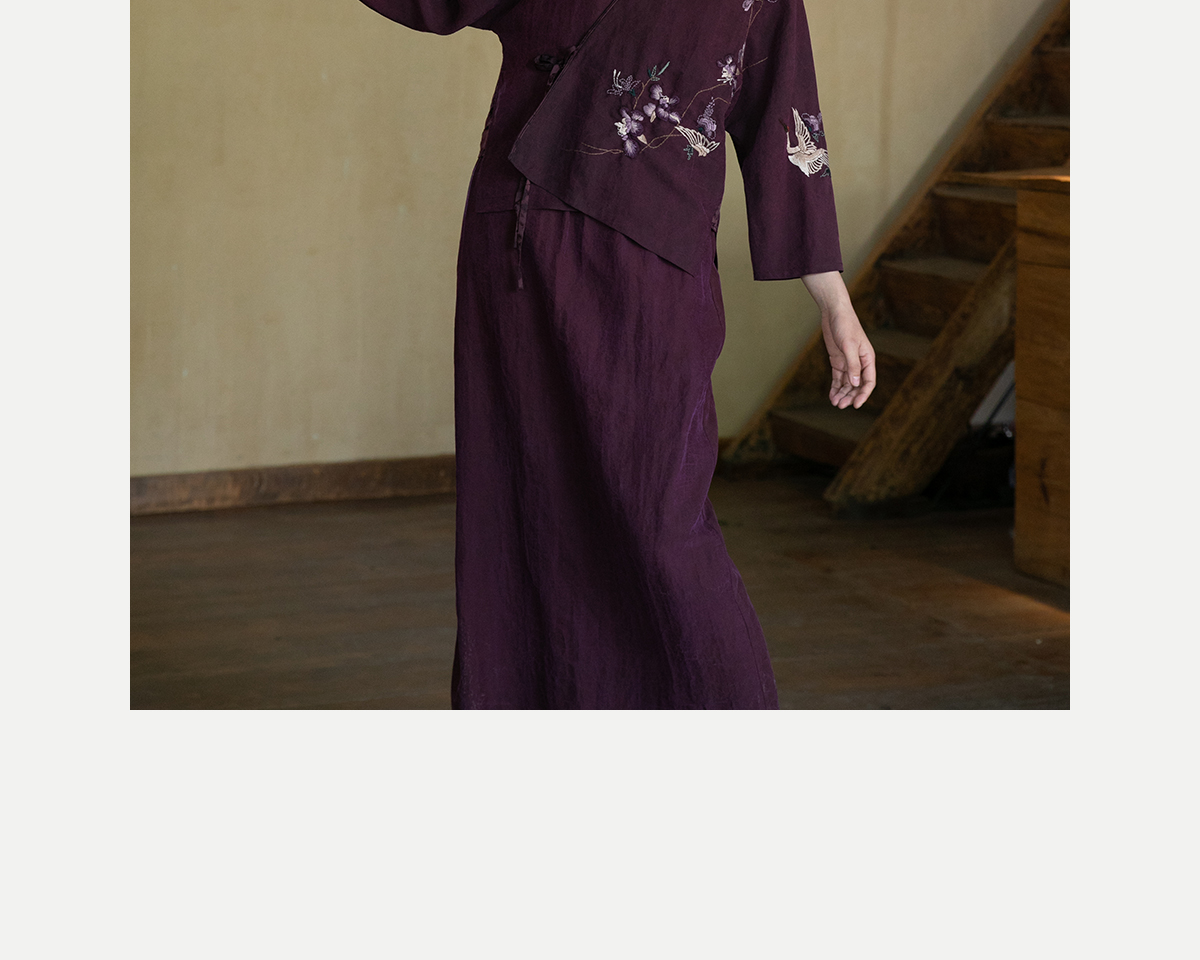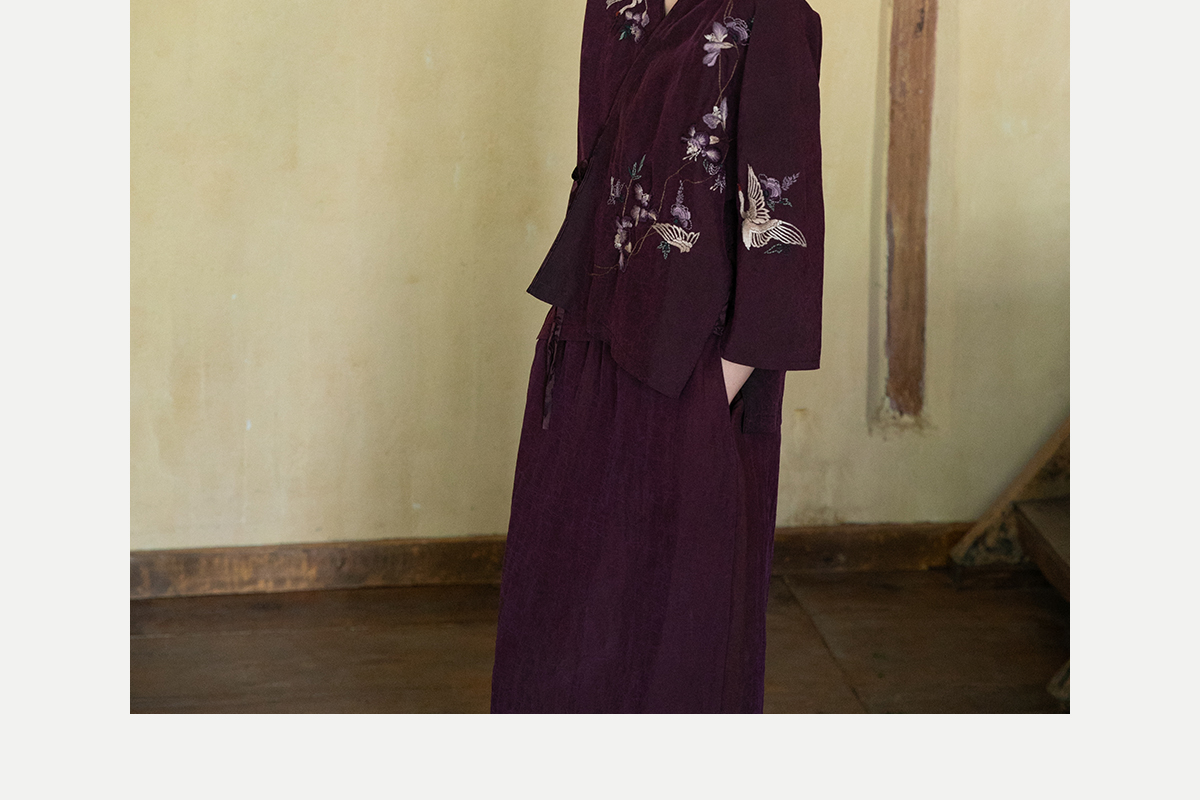 牧衣游原创重工手绣紫香云纱外套新款龟裂纹禅意复古上衣 深深愿
