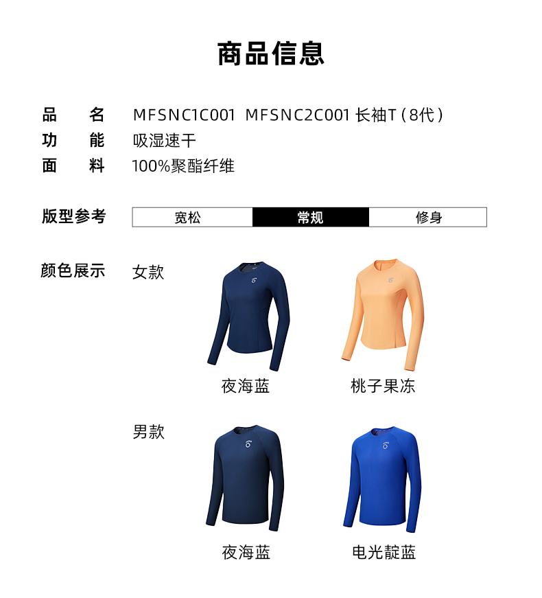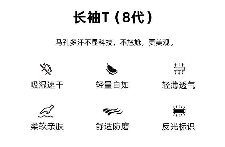马孔多汗不显科技跑步长袖T恤8代 吸湿速干 腋下一片式拼接 训练