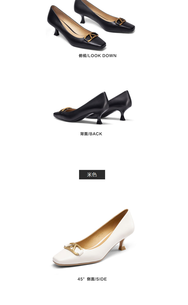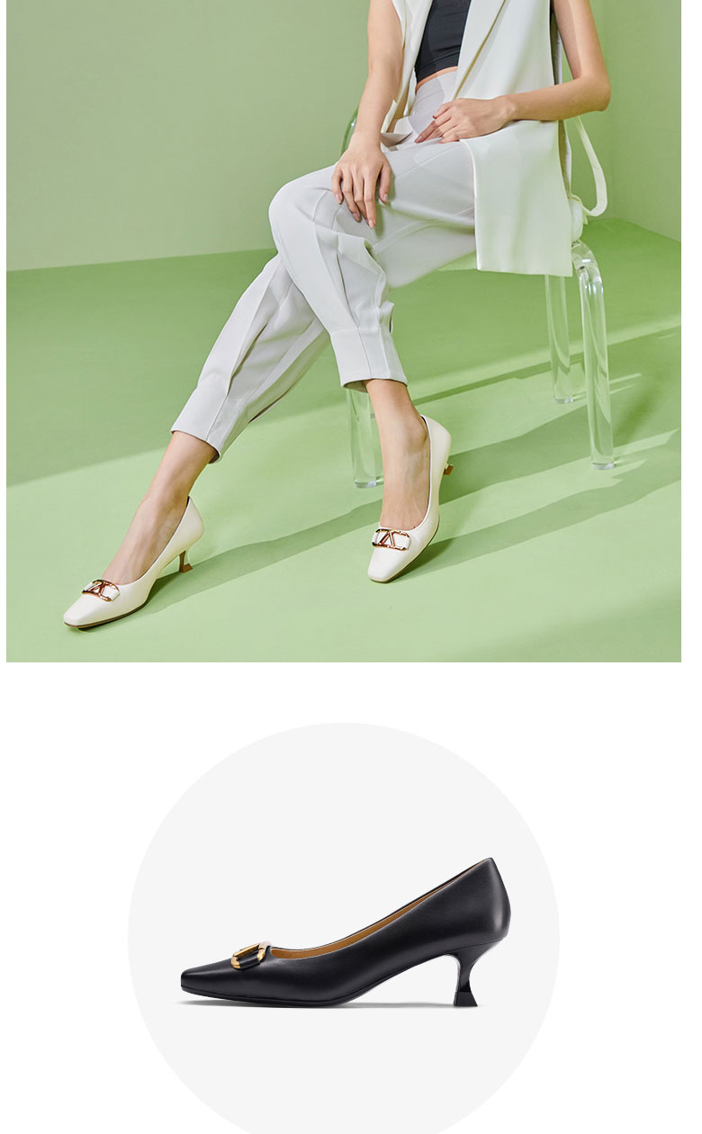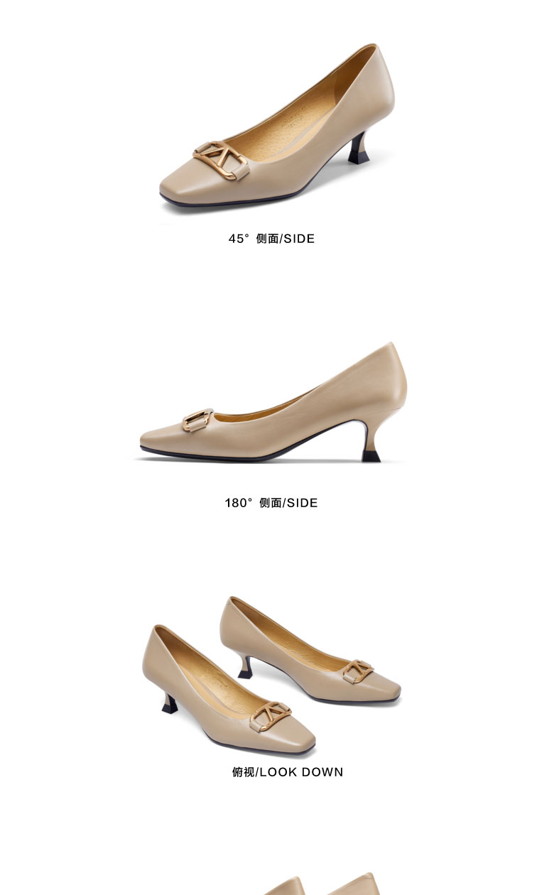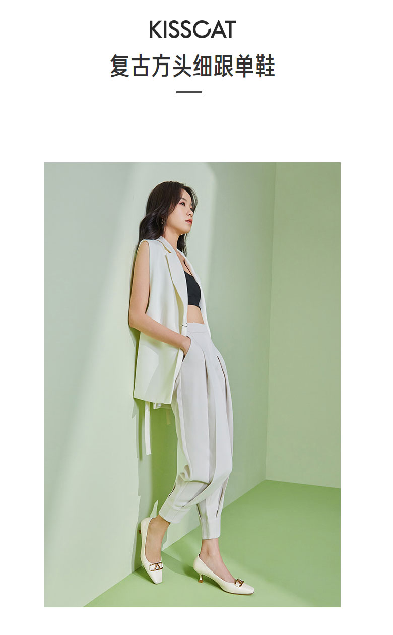 接吻猫2022春夏季新款复古高跟鞋软羊皮女鞋舒适方头细跟单鞋女32101-17