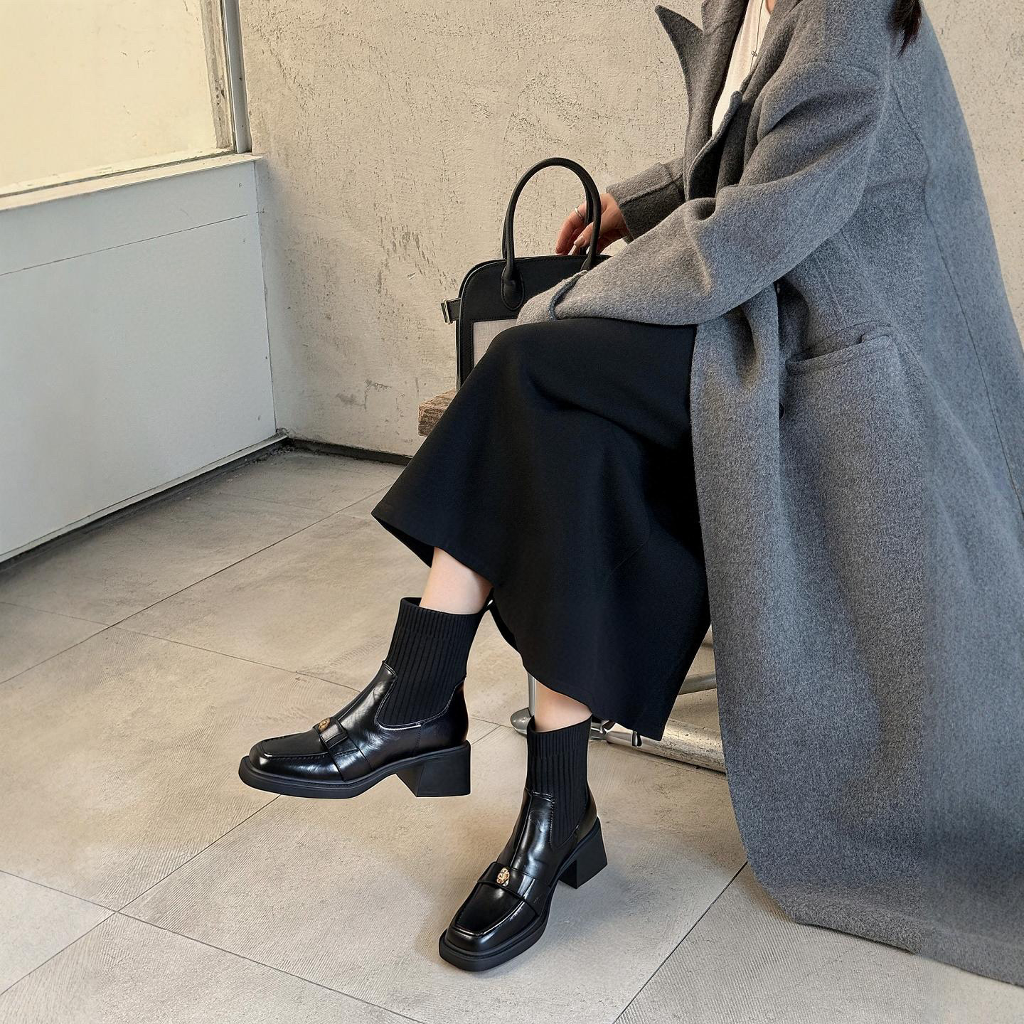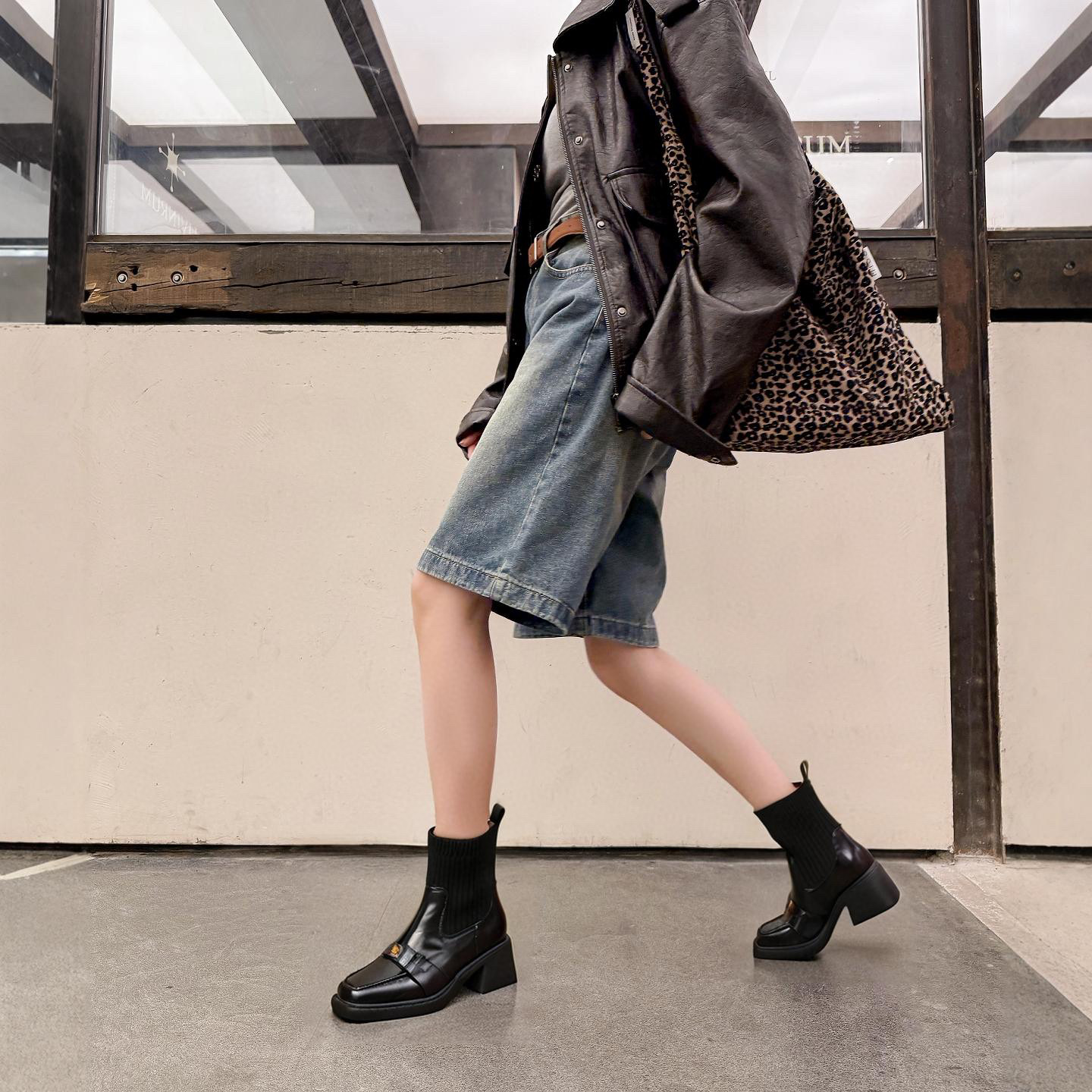 保证会越穿越爱哦飞线针织罗纹弹力袜口,上脚简直就是刀削般的显瘦效果!!