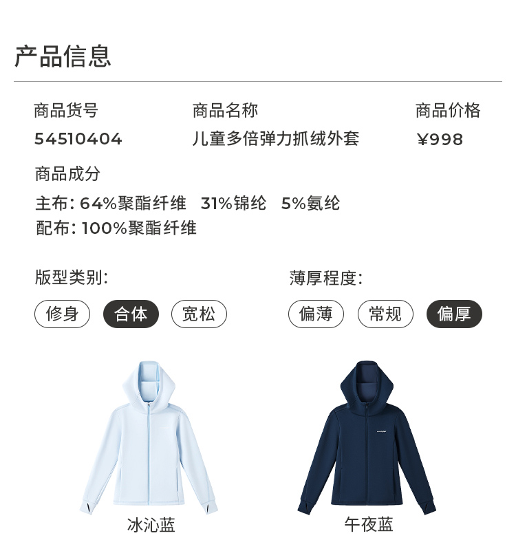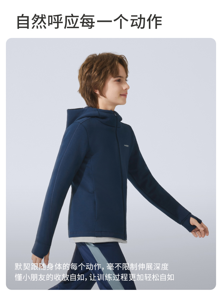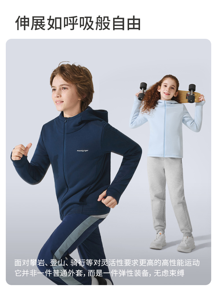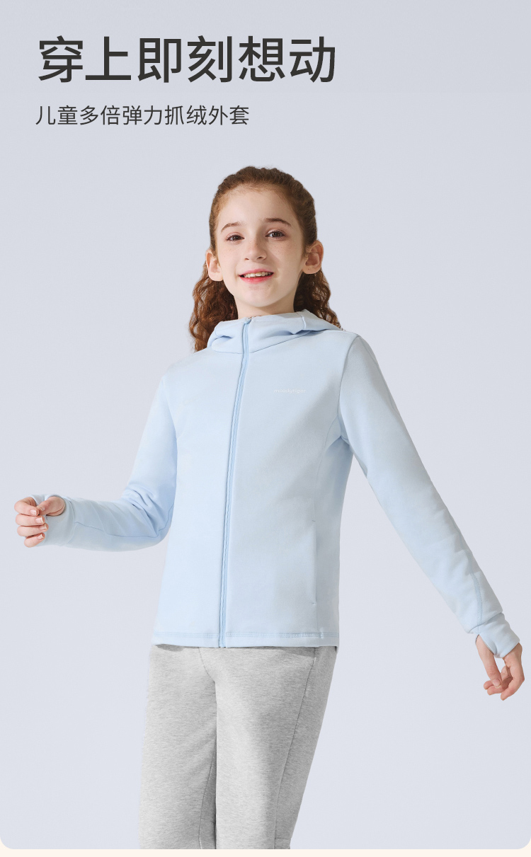 【大J专属】moodytiger多倍弹力抓绒外套舒适保暖运动连帽外套54510404