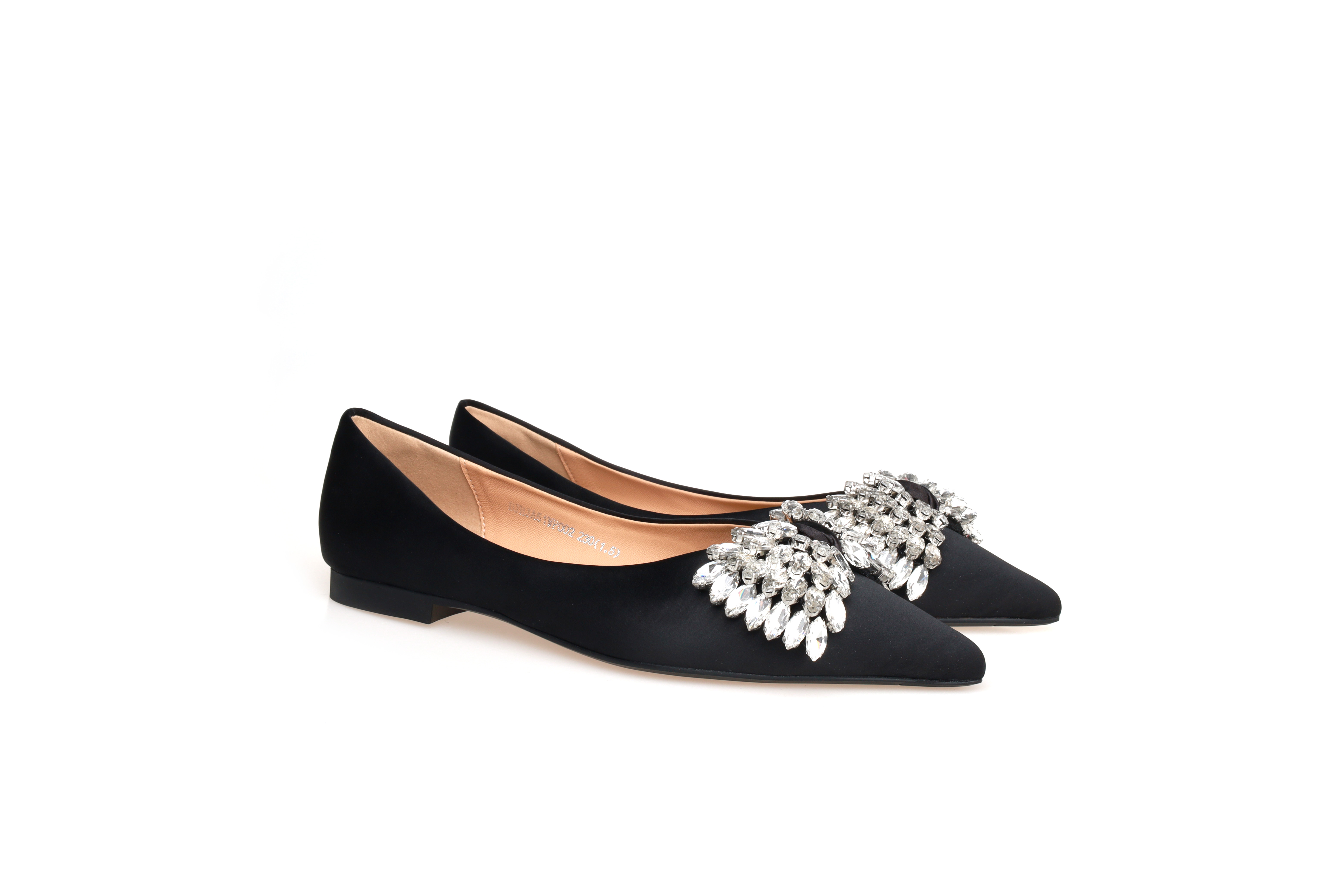 豪麟名鞋迪嘉女鞋平底鞋真丝布DJHJA51WP002黑色