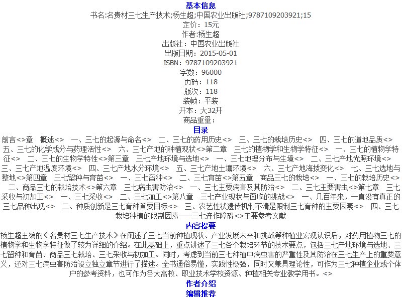 名贵材三七生产技术;杨生超;中国农业出版社;9787109203921;15