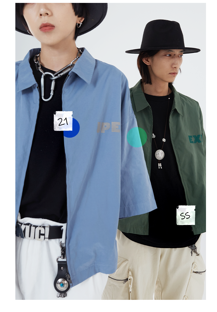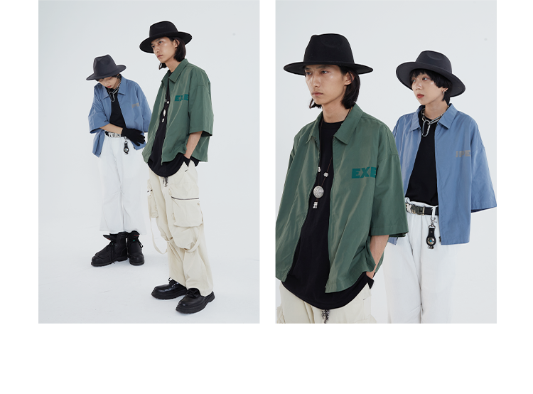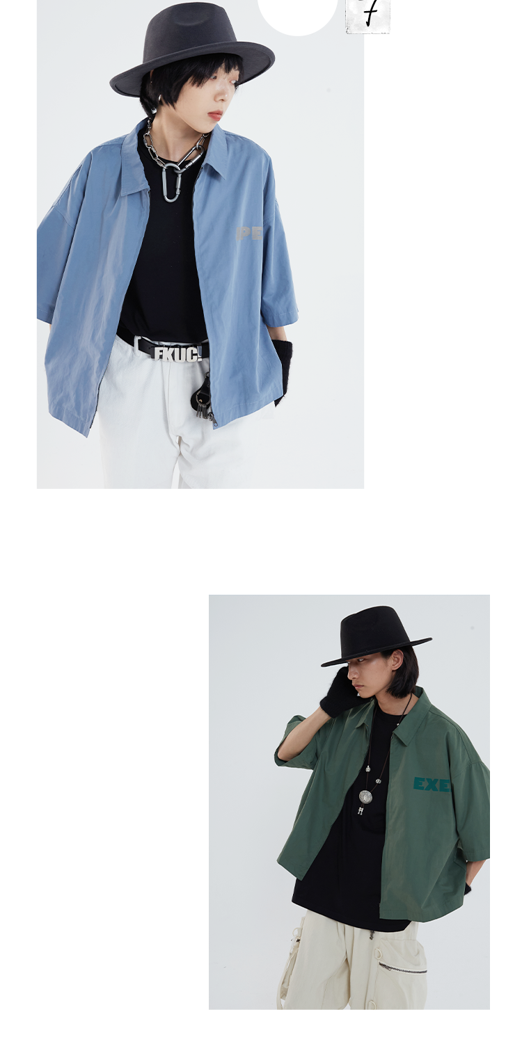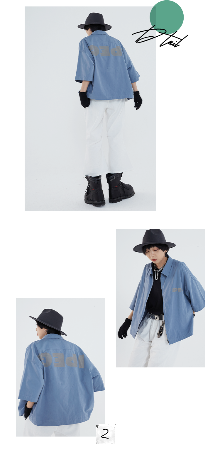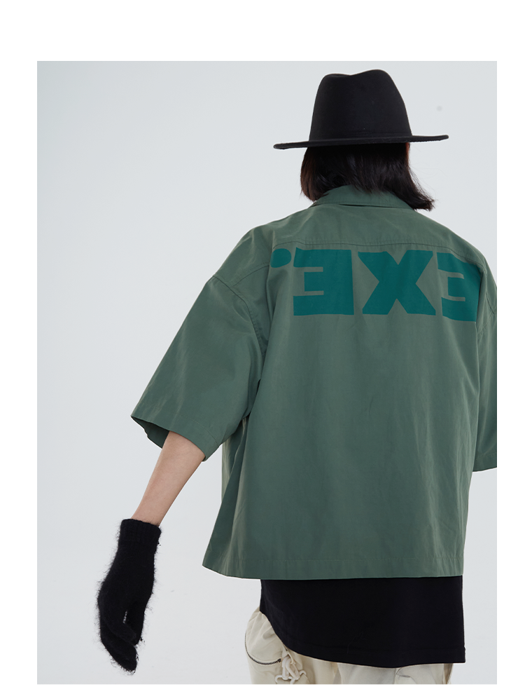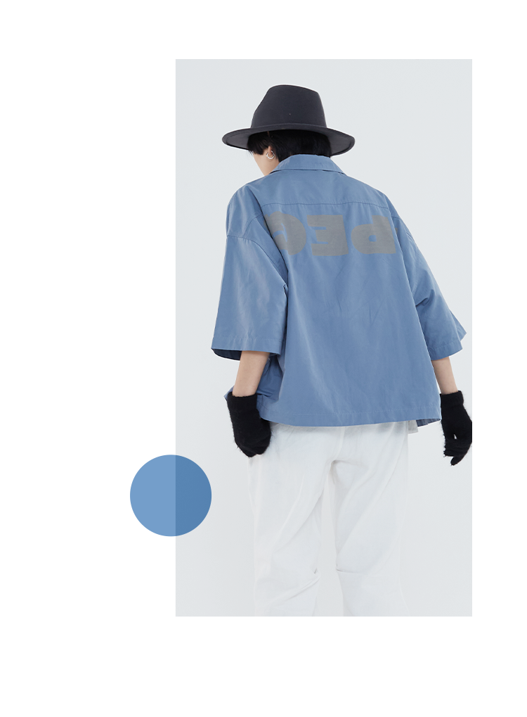 POH 「程序编码员」街头纯色休闲印花宽松短款双色衬衫男夏季潮
