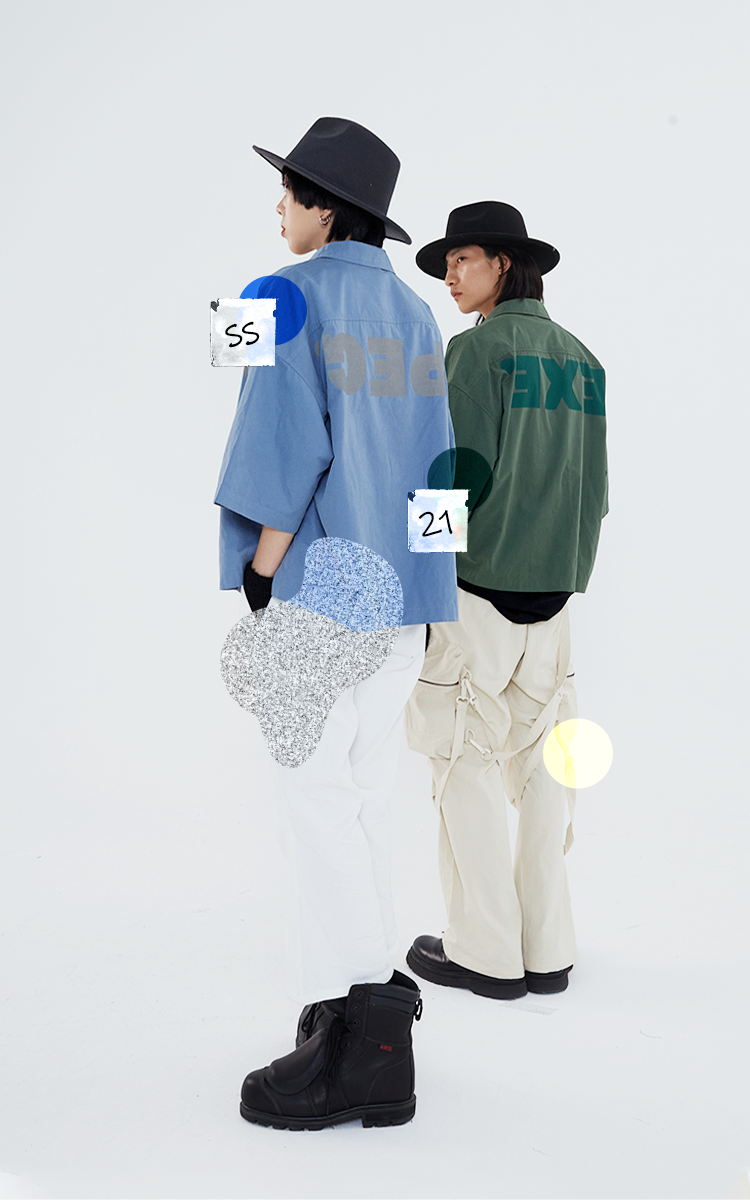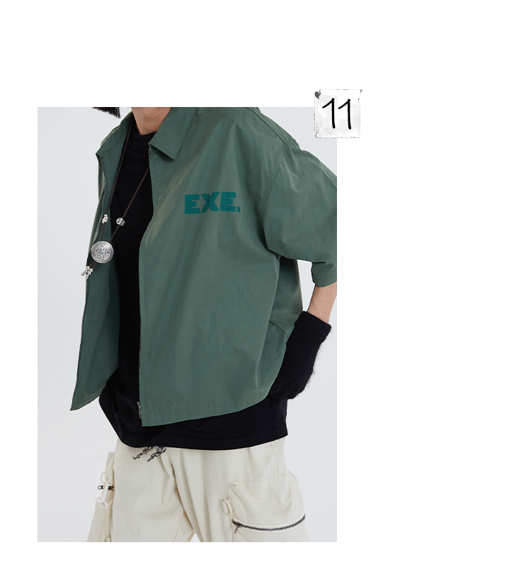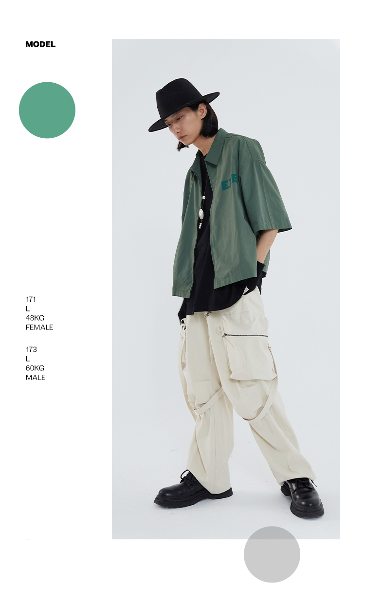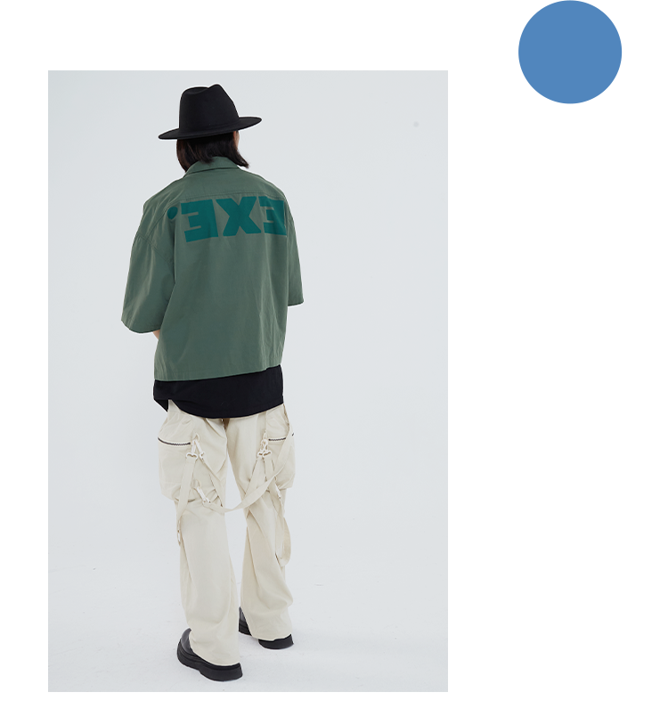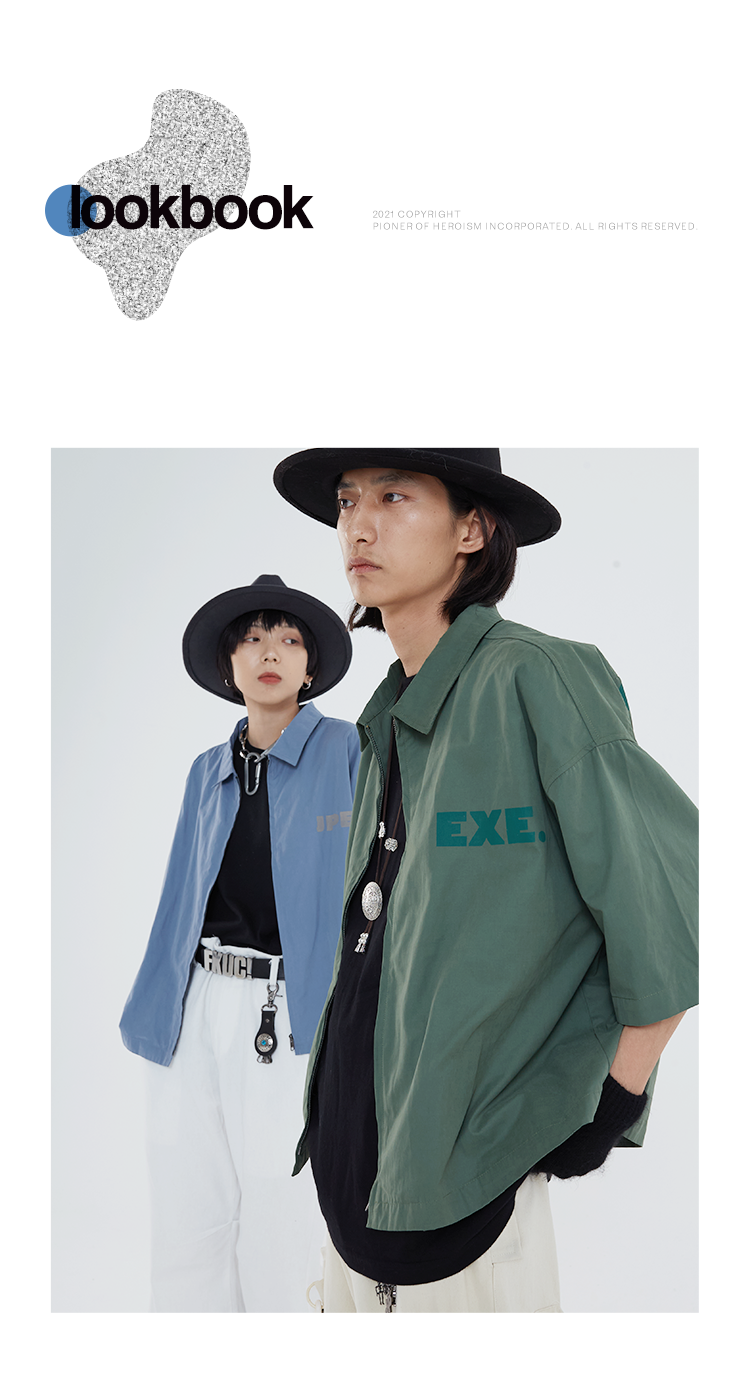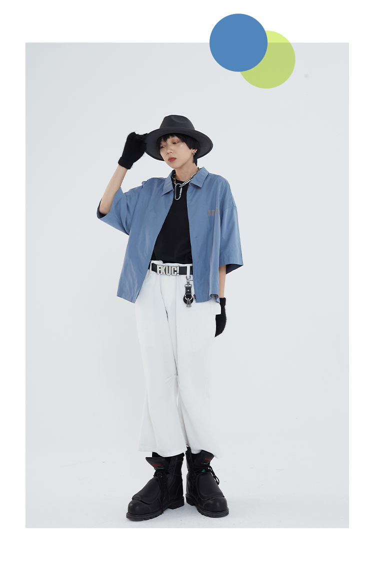 POH 「程序编码员」街头纯色休闲印花宽松短款双色衬衫男夏季潮