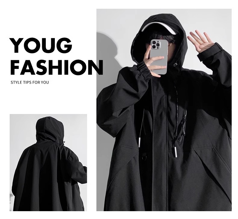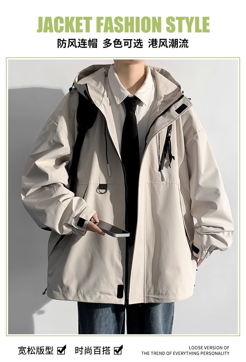 NASA新款外套男士春秋季连帽工装夹克潮牌休闲宽松防风防水冲锋衣 商品图7