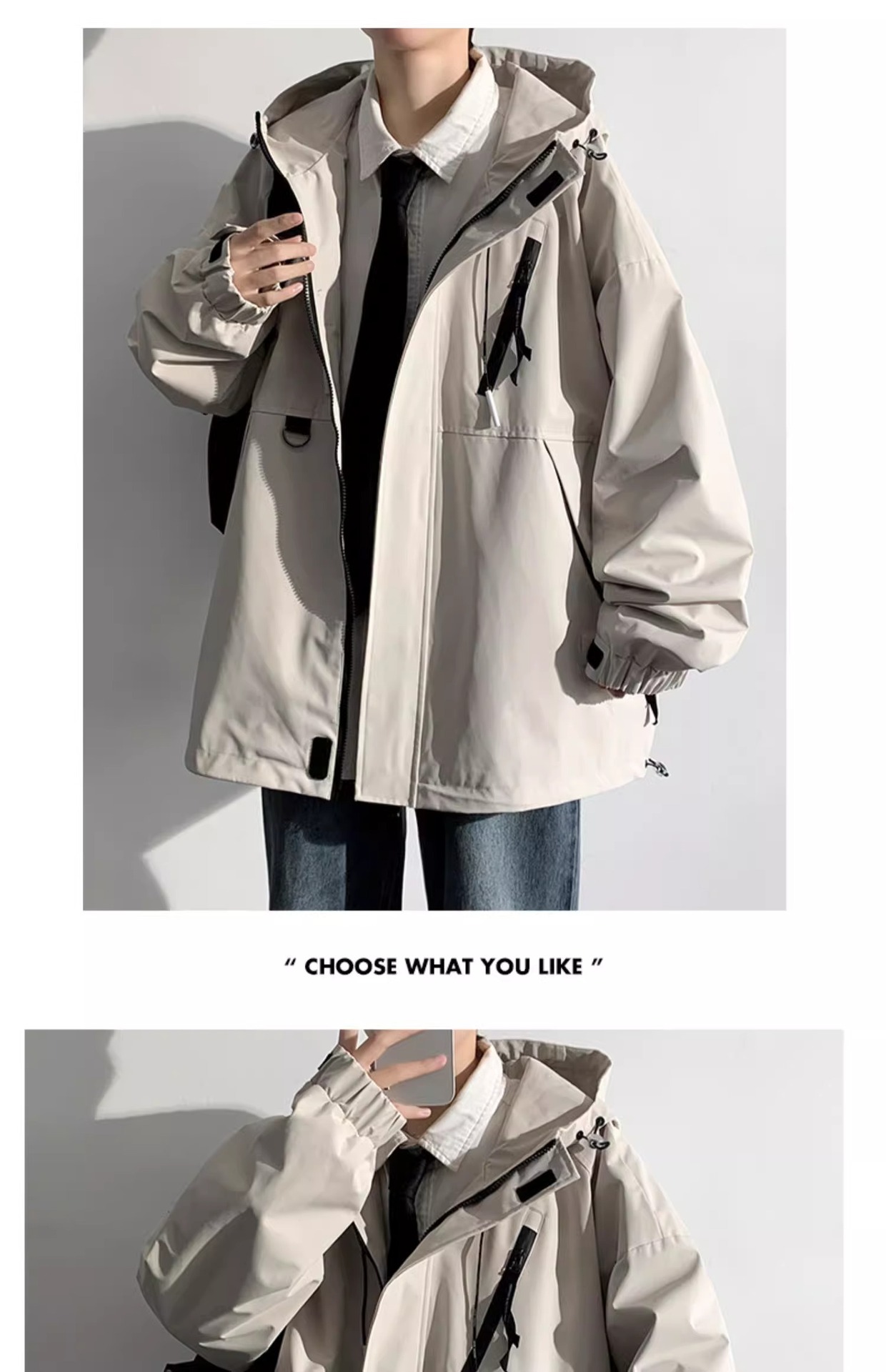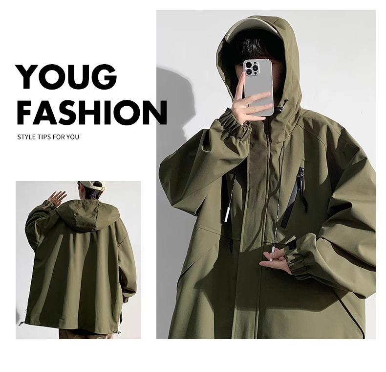 NASA新款外套男士春秋季连帽工装夹克潮牌休闲宽松防风防水冲锋衣 商品图6