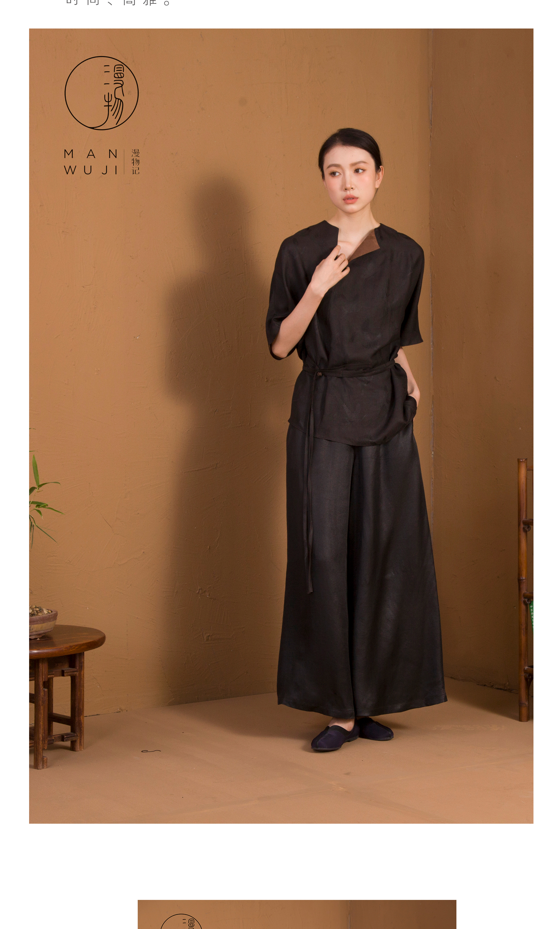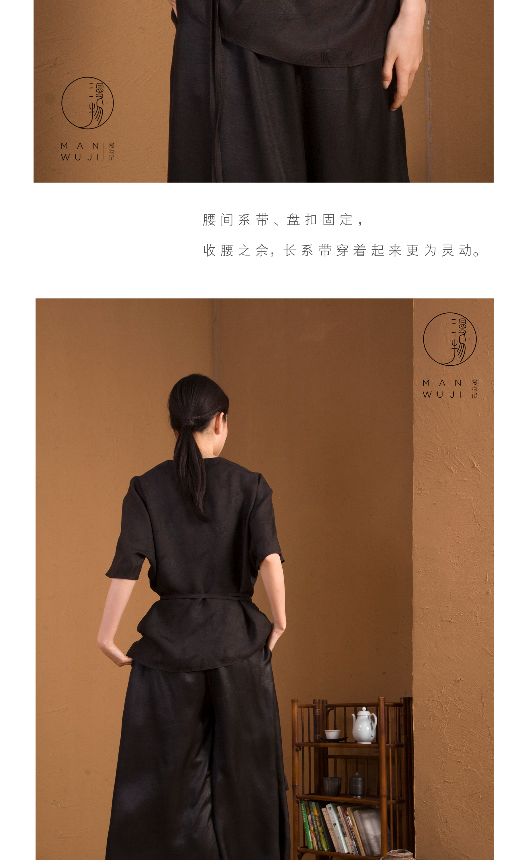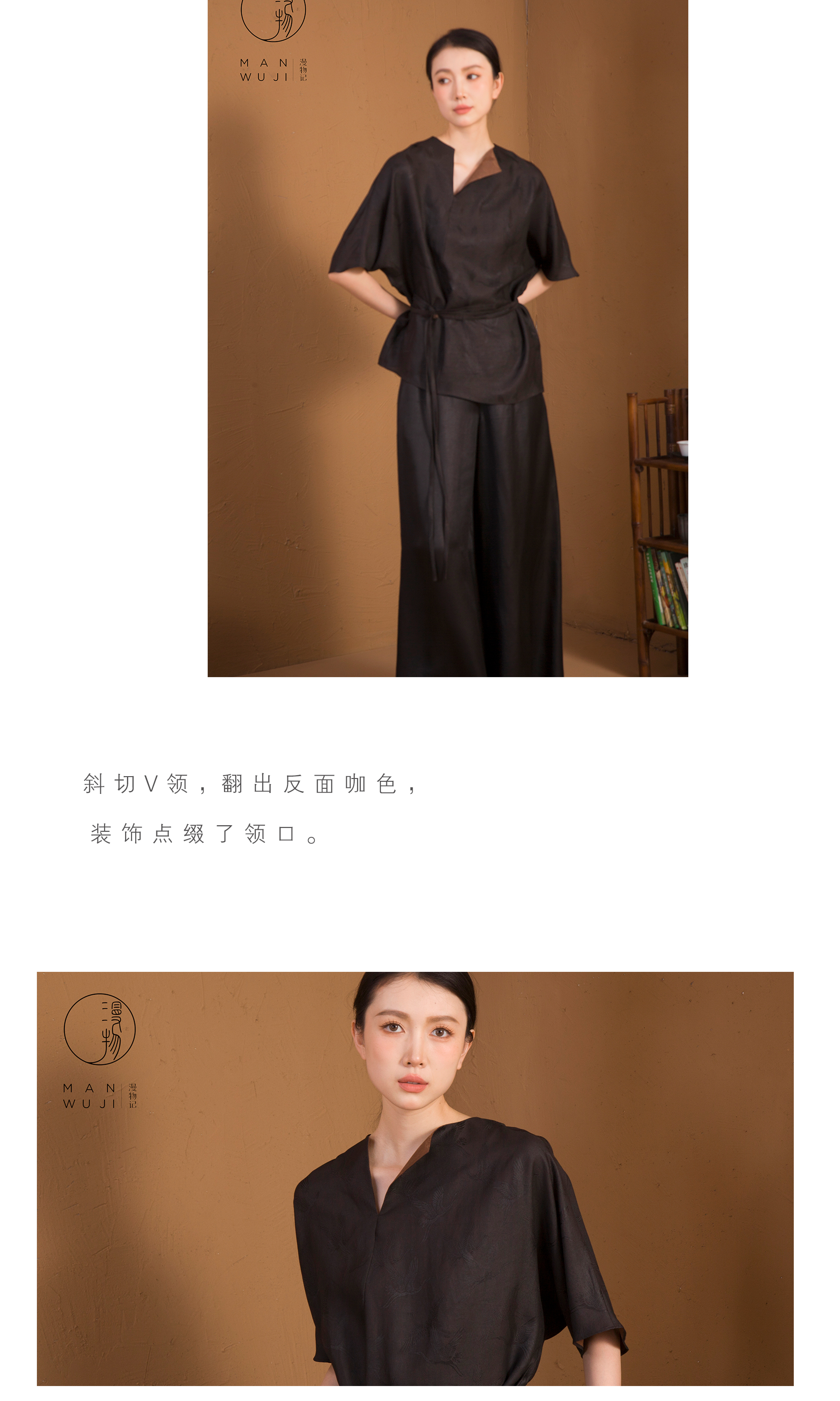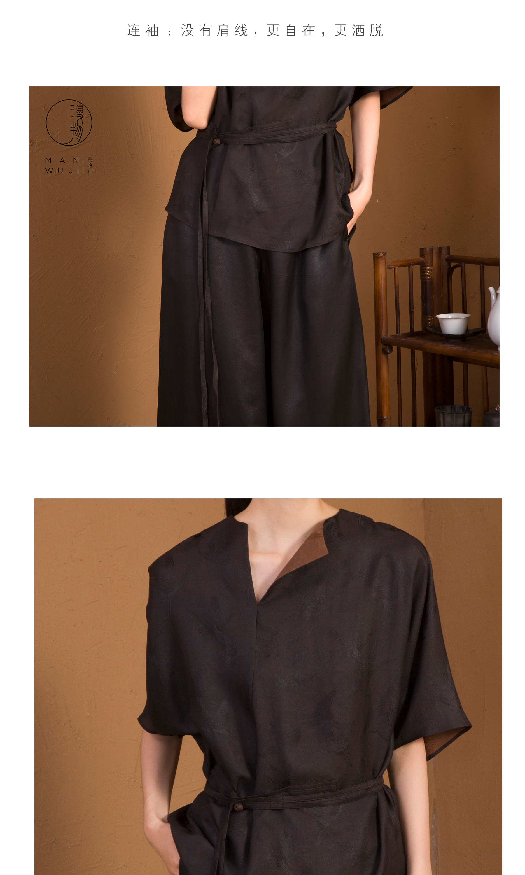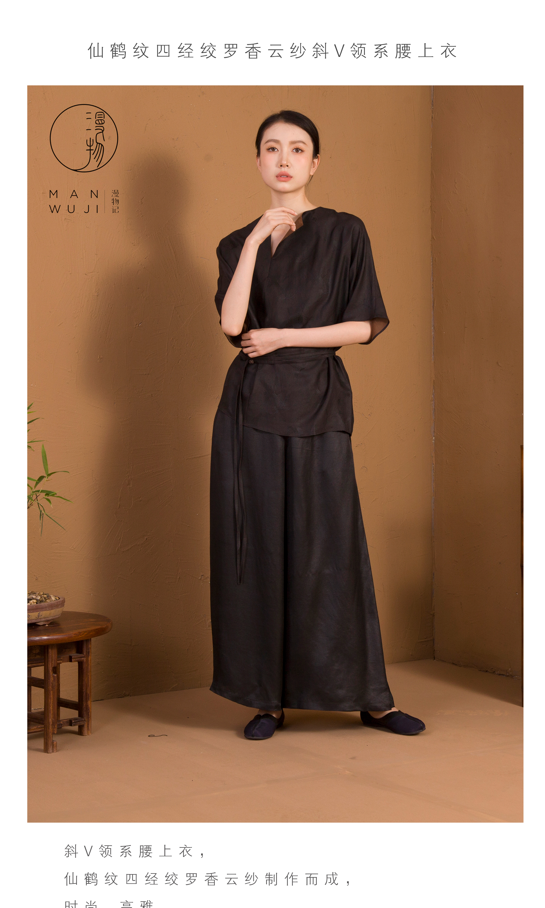 漫物记XYS-020仙鹤纹四经绞罗香云纱斜V领系腰上衣