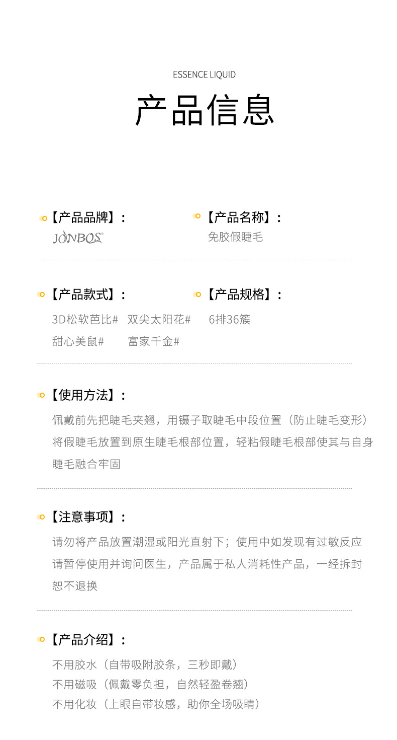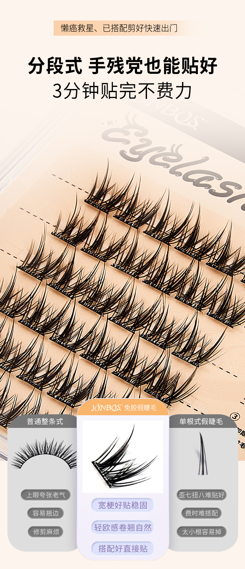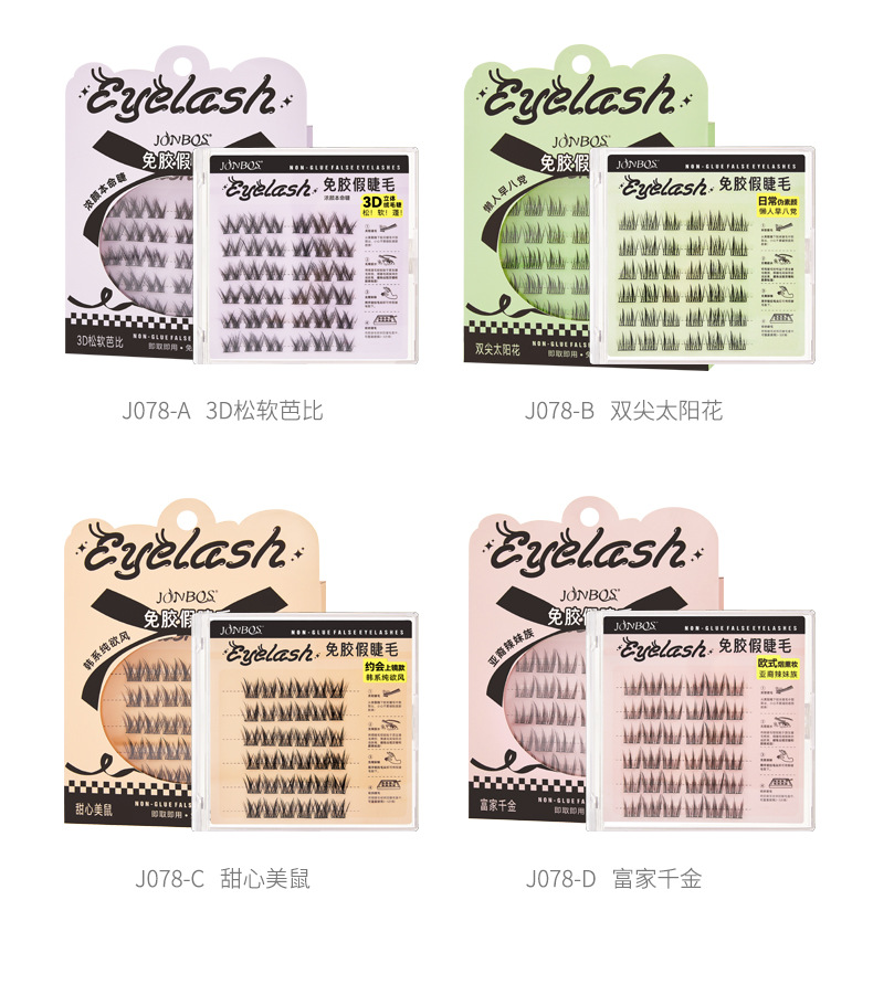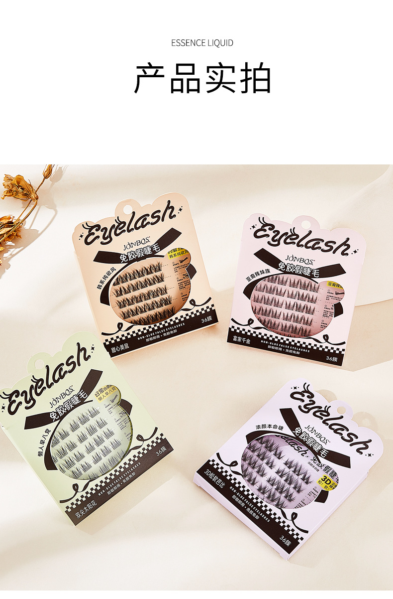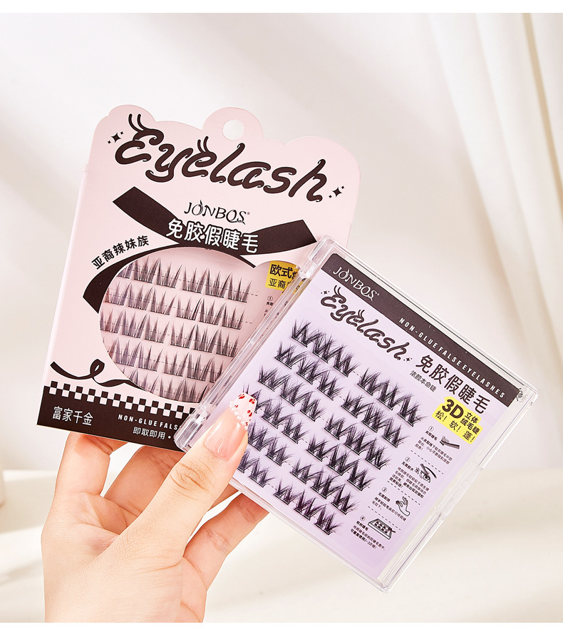 【第二件!免费送】免胶免卸 JONBOS免胶假睫毛 单簇5D婴儿弯 自然仿真眼睫毛 自粘免胶水浓密款