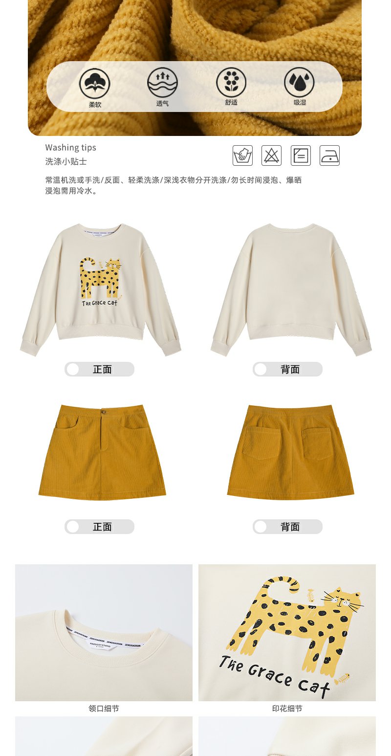 <曾小咸推荐>现货秒杀!微信超特价!杏色黄色猫咪印花卫衣 日常149.99 立减70 秒杀79.99!黄色短裙秒杀69.99!