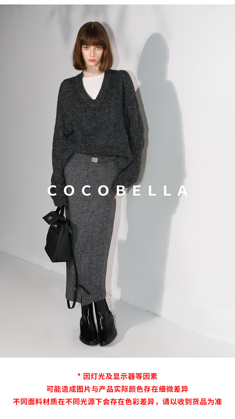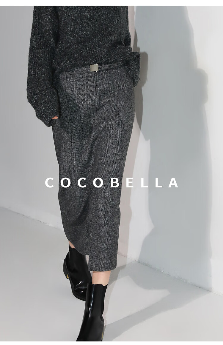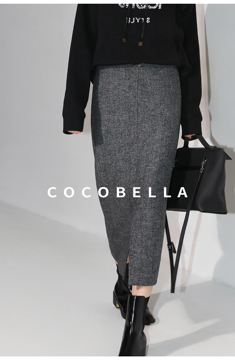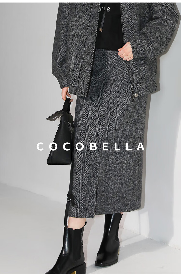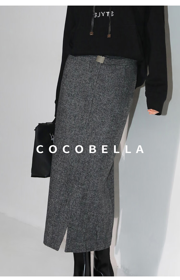 COCOBELLA[miu系穿搭]人字纹羊毛半身冬毛呢长裙附腰带HS0058