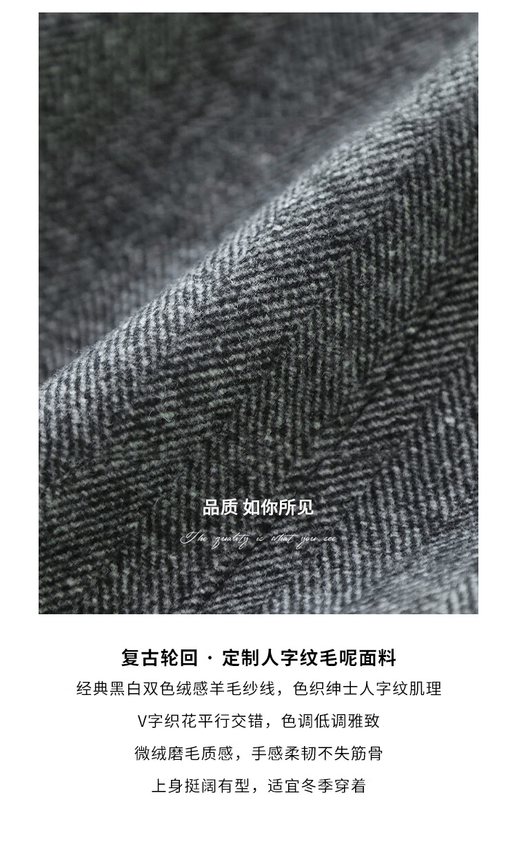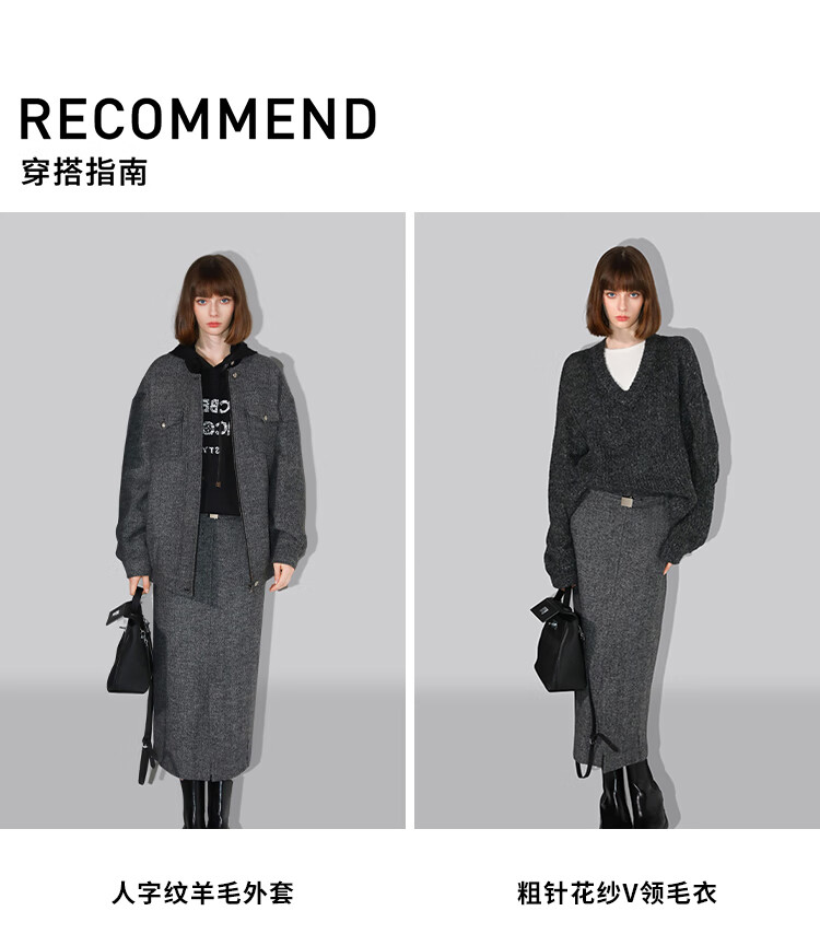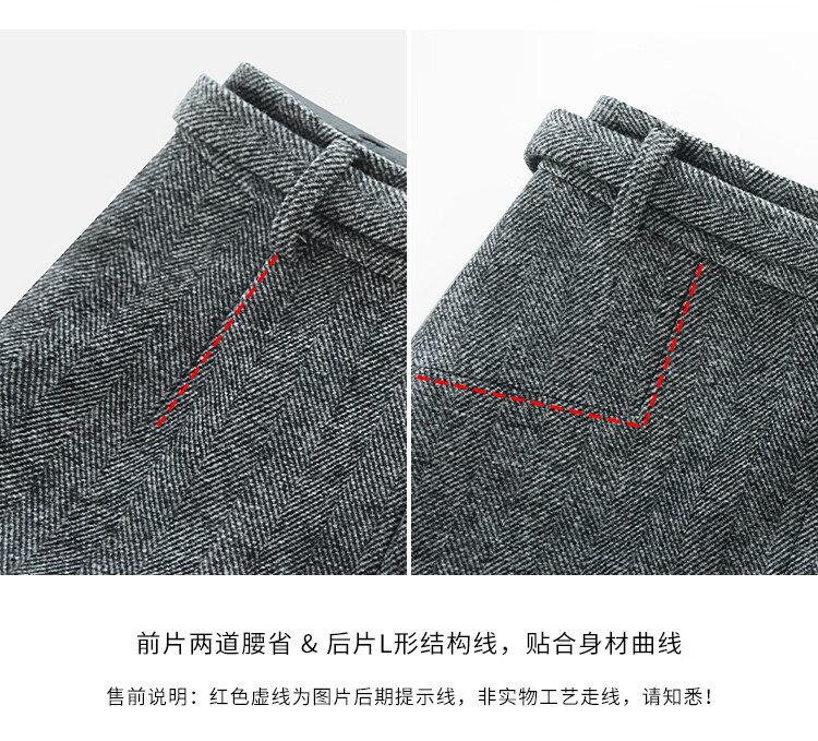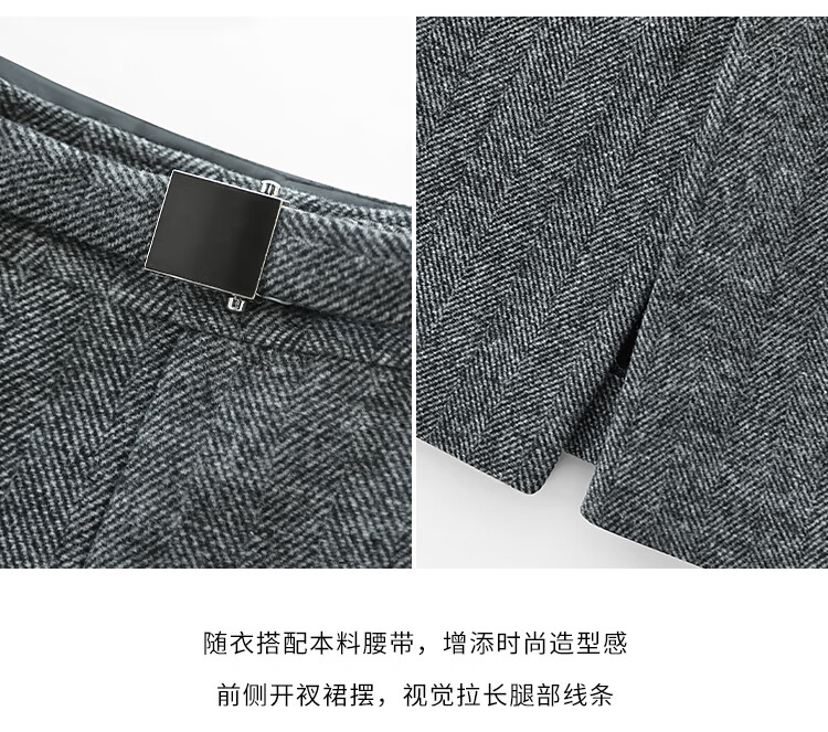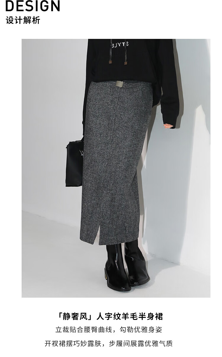COCOBELLA[miu系穿搭]人字纹羊毛半身冬毛呢长裙附腰带HS0058