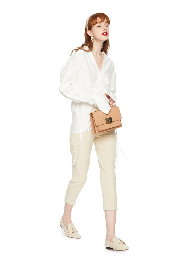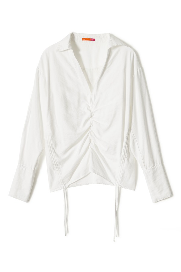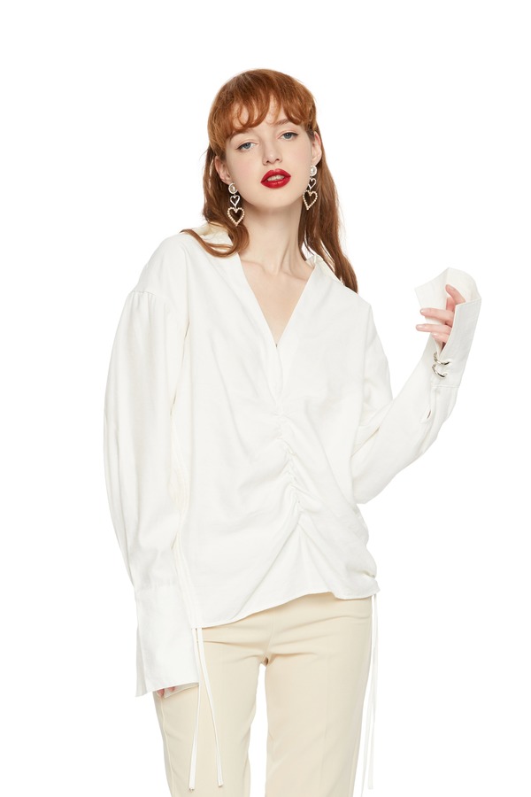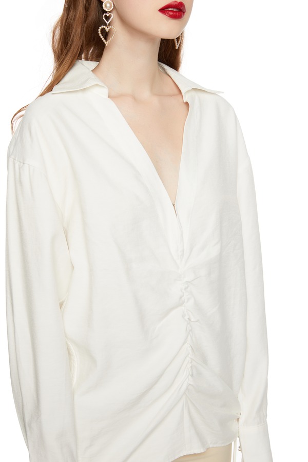 AVA 褶裥V领白色上衣 4115
