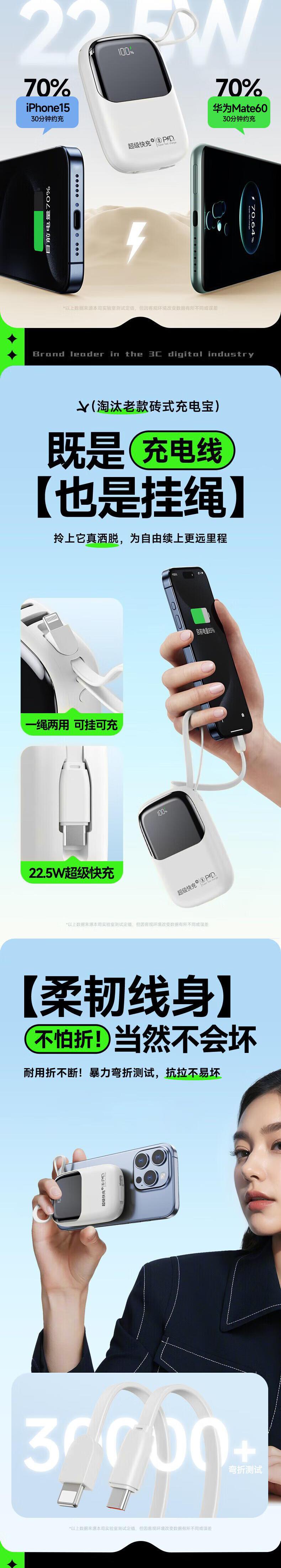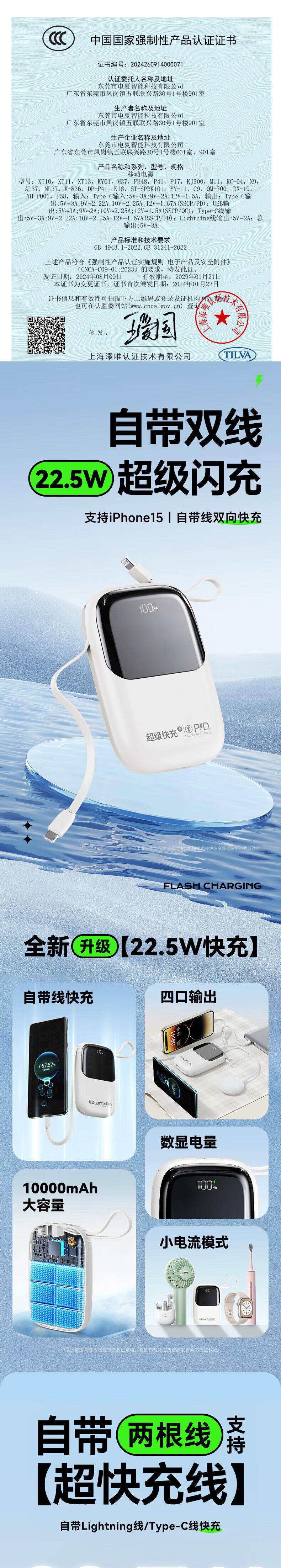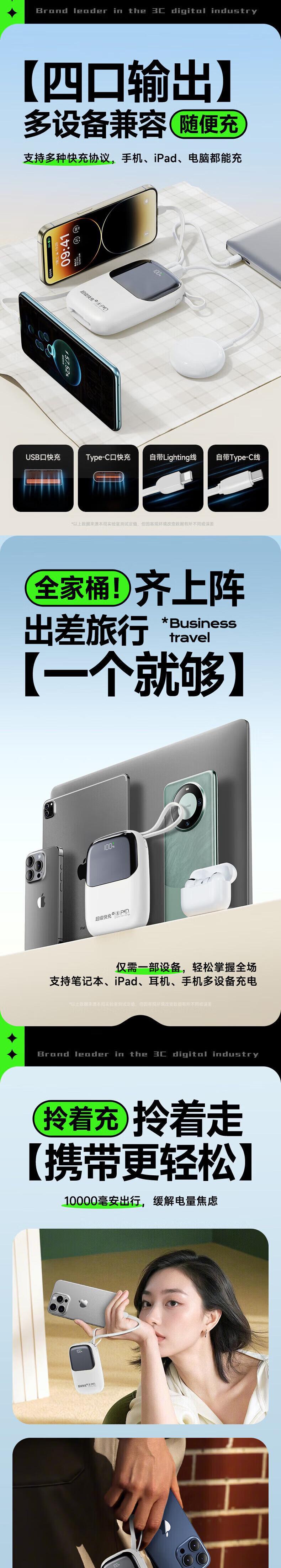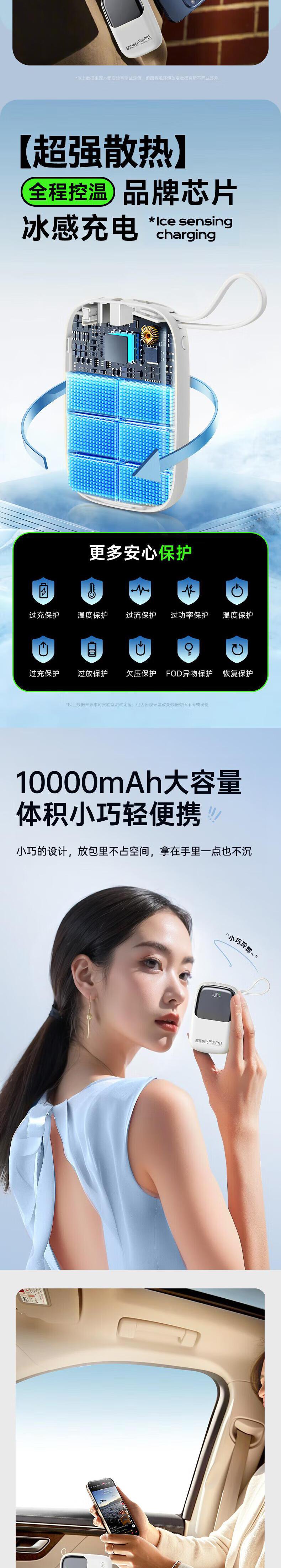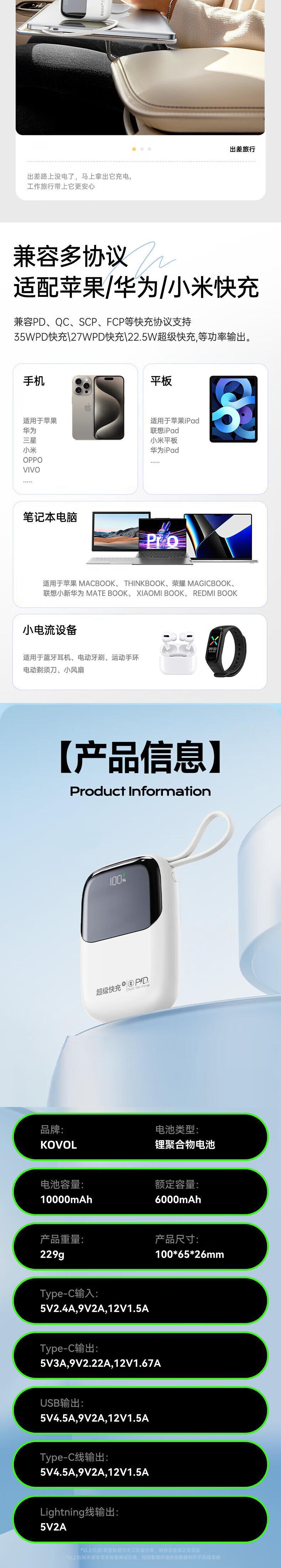 科沃ST-SPBK101移动电源充电宝自带2线1万毫安3C认证可上飞机轻薄