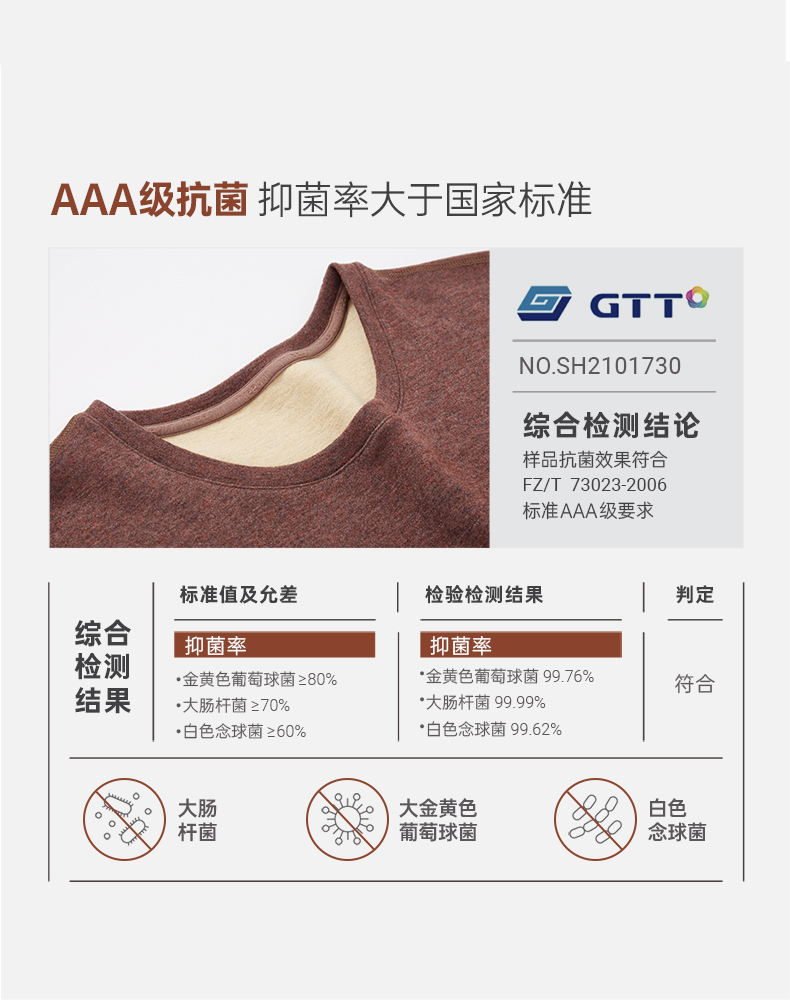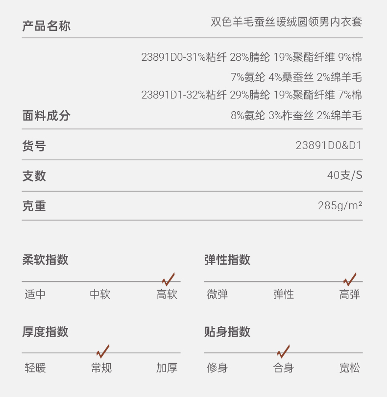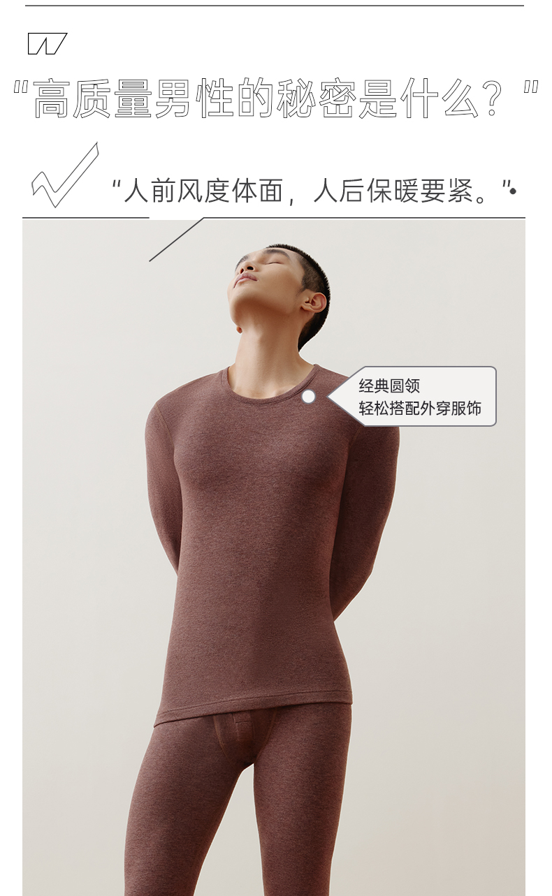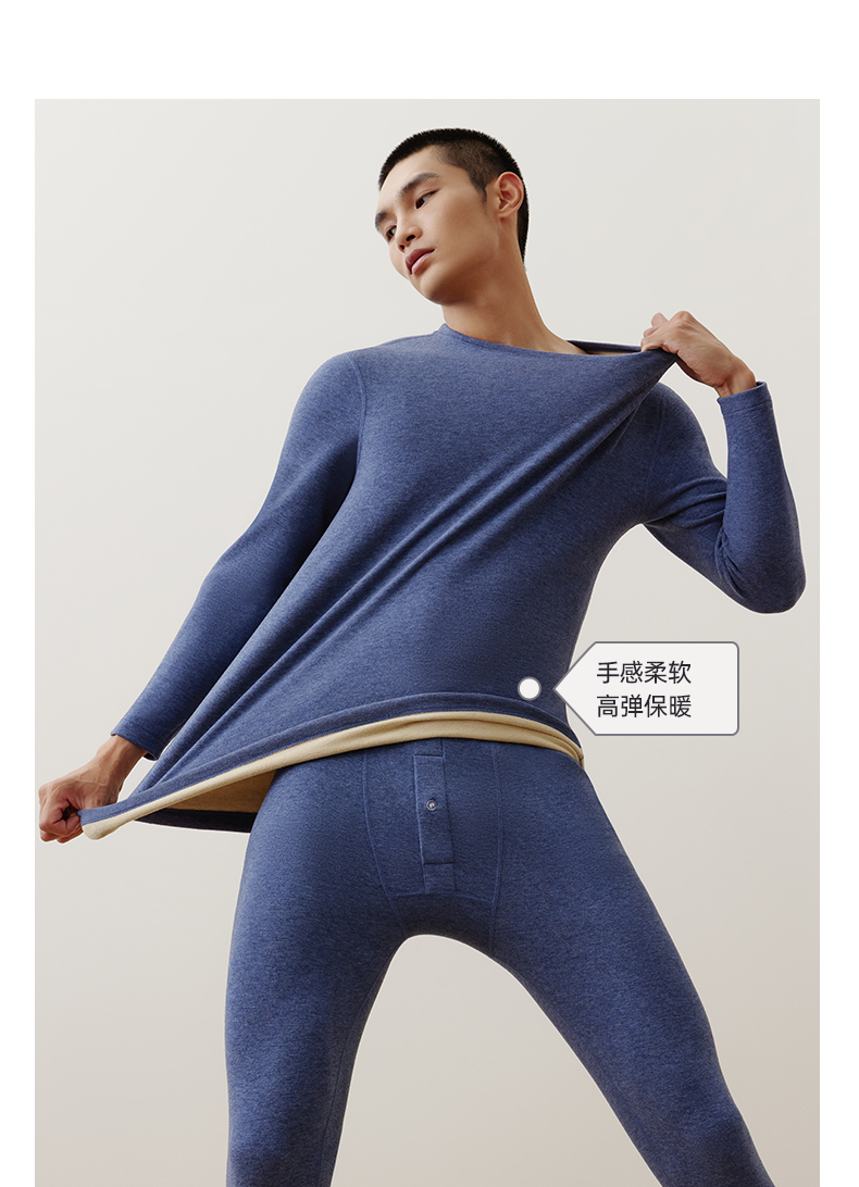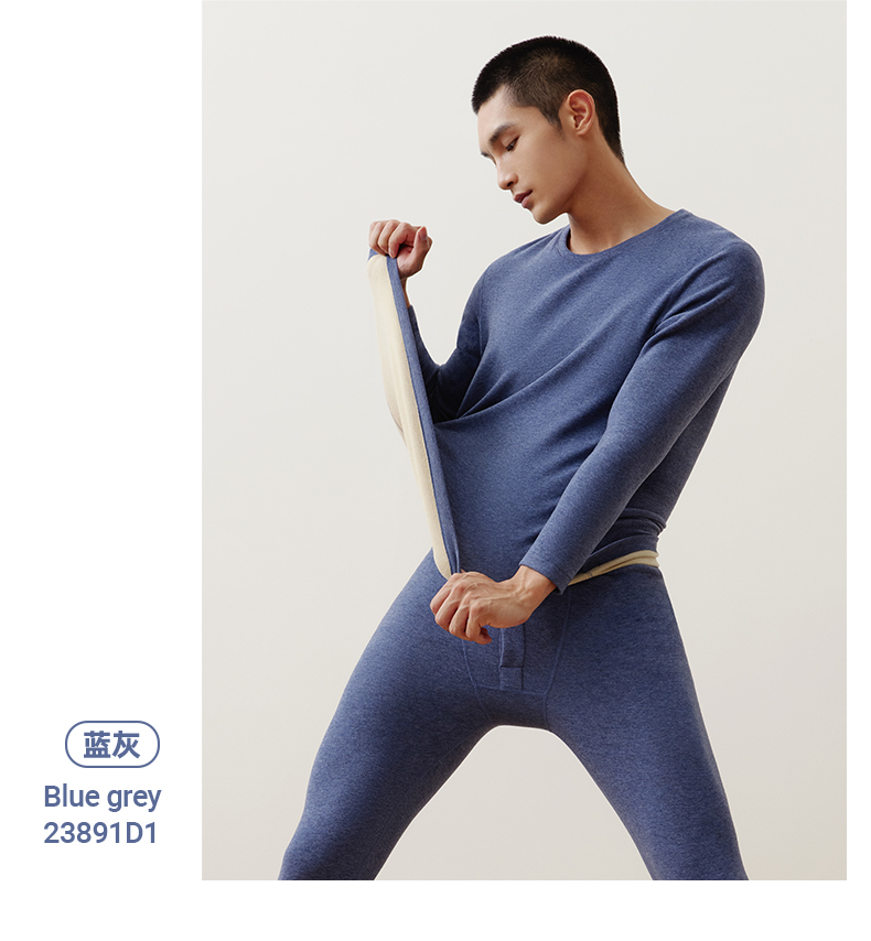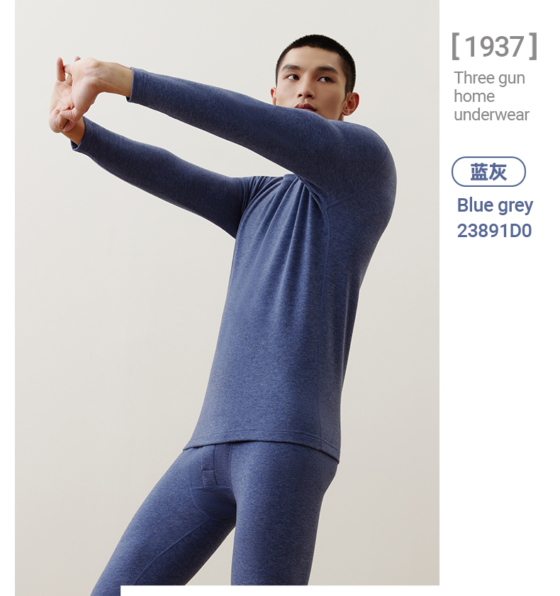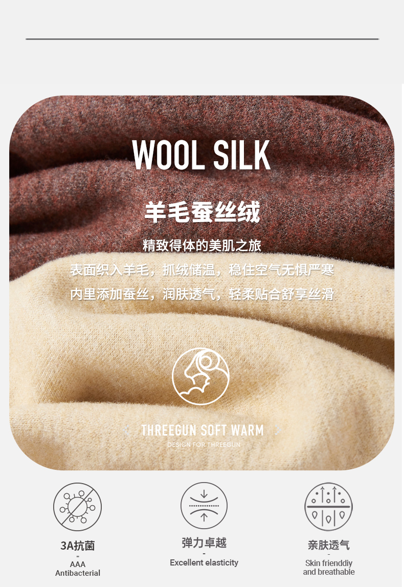 Threegun三枪 【双色羊毛蚕丝】暖绒圆领男士保暖内衣套装-23891D021
