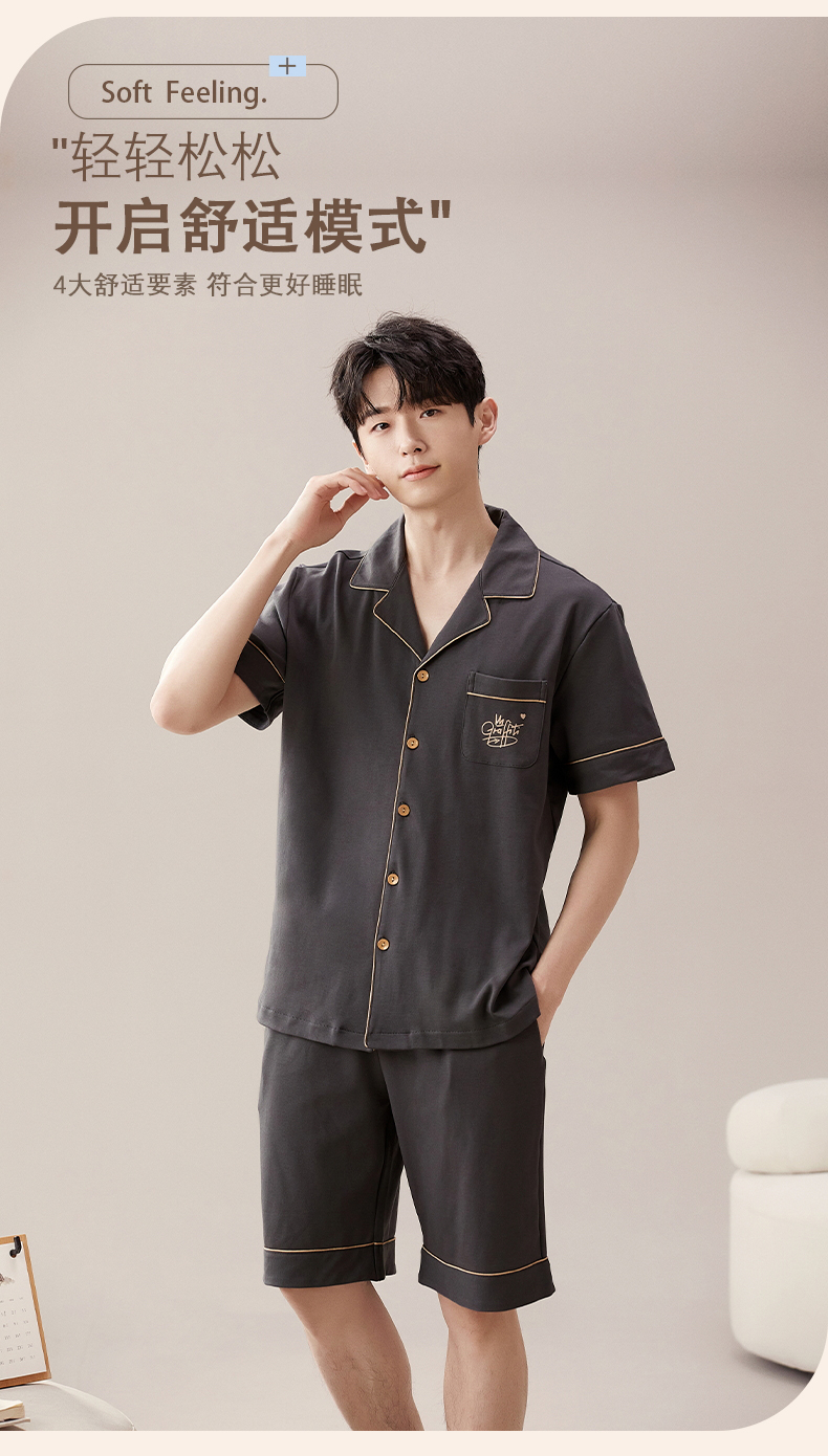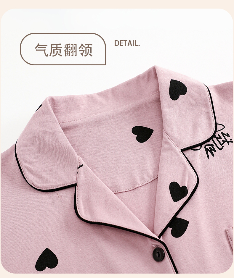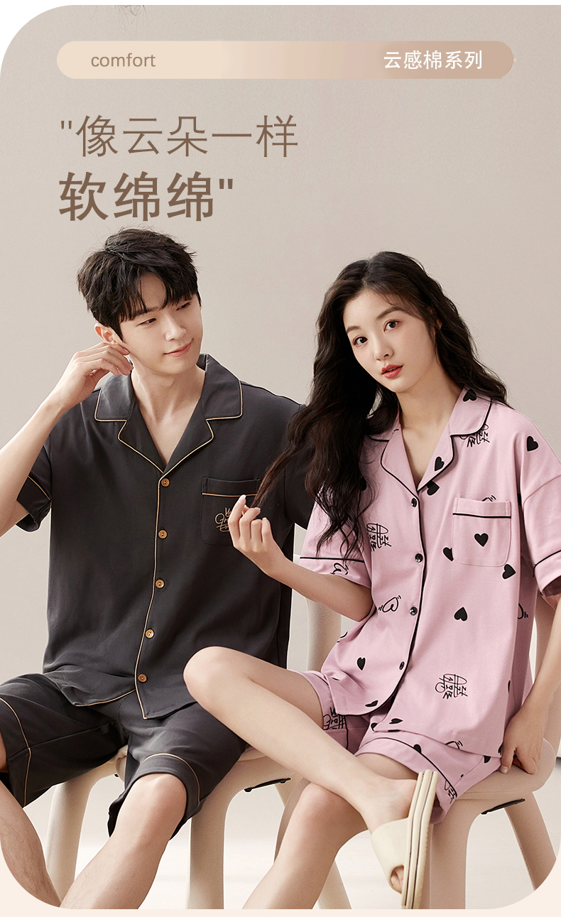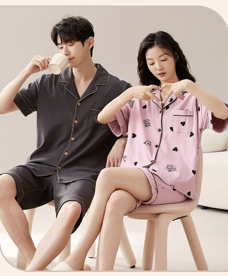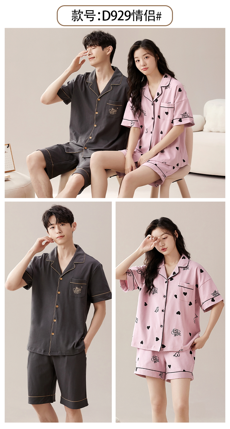 自然醒素香情侣睡衣女夏针织棉短袖短裤开衫韩版卡通加大码男士夏天家居服套装QH
