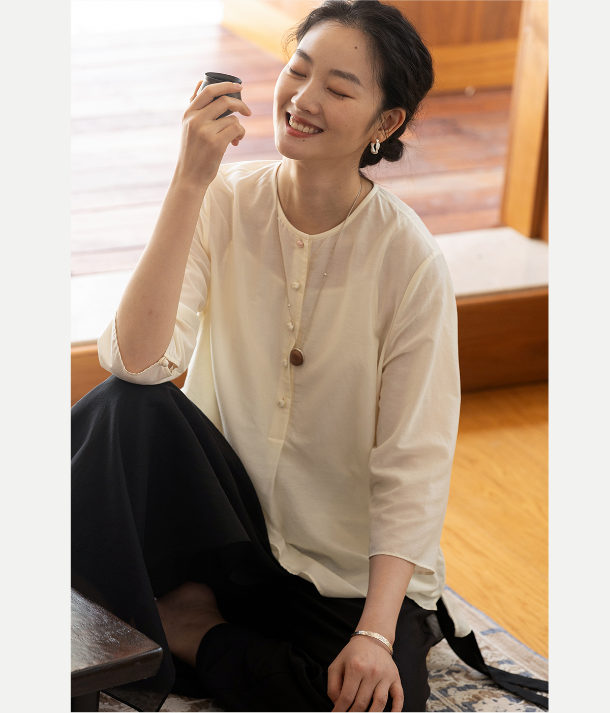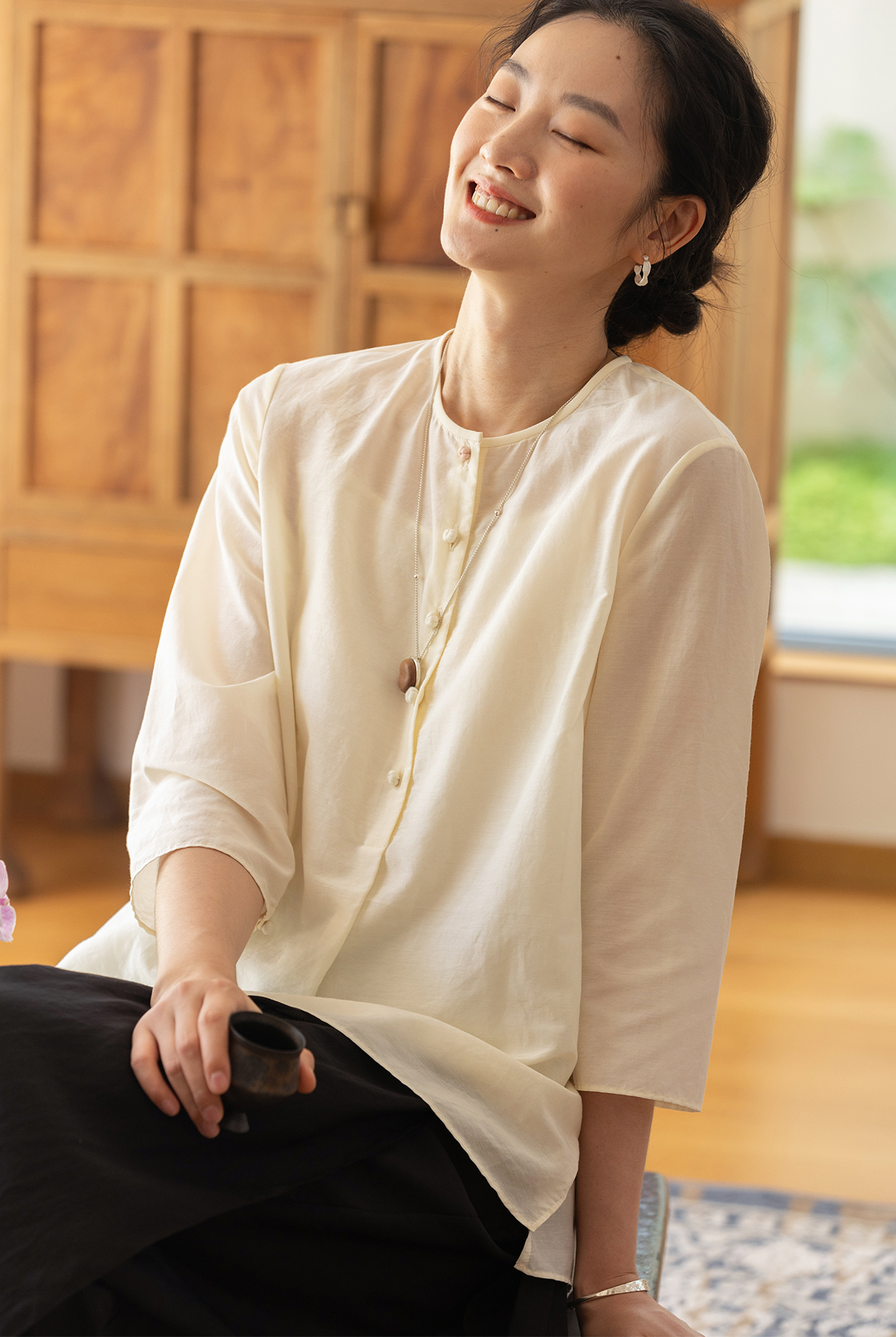 牧衣游原创 丝棉轻薄套头衫秋季新款轻薄文艺素雅百搭上衣 茶与蝉
