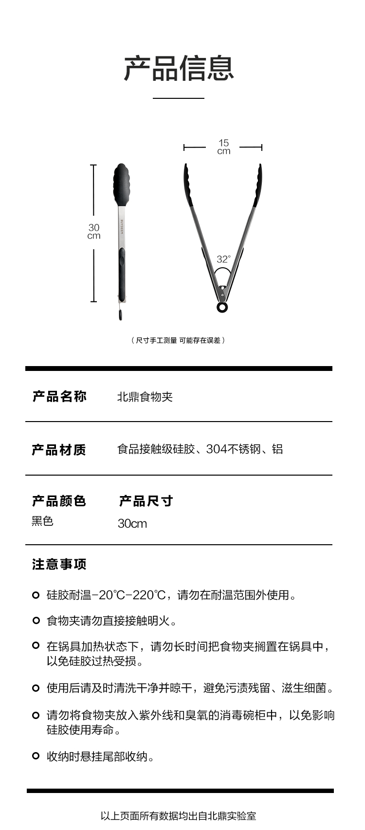 【专柜-北鼎】烤肉锅配件 | 烧烤夹适配烧烤盘不锈钢防滑食物夹