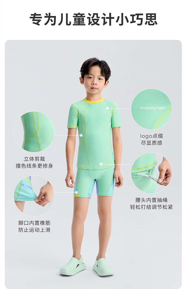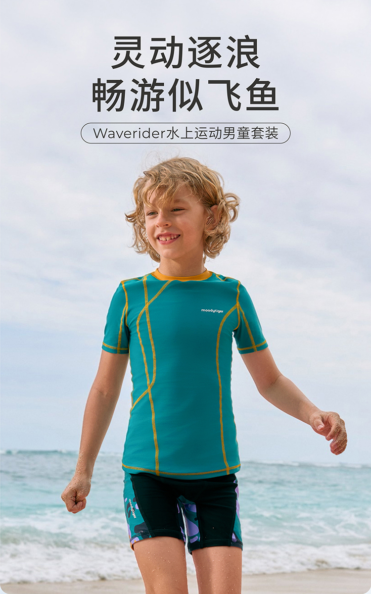 【DR暑假】moodytiger男童泳衣25夏新四面弹不紧绷强支撑彩蛙印花52115302