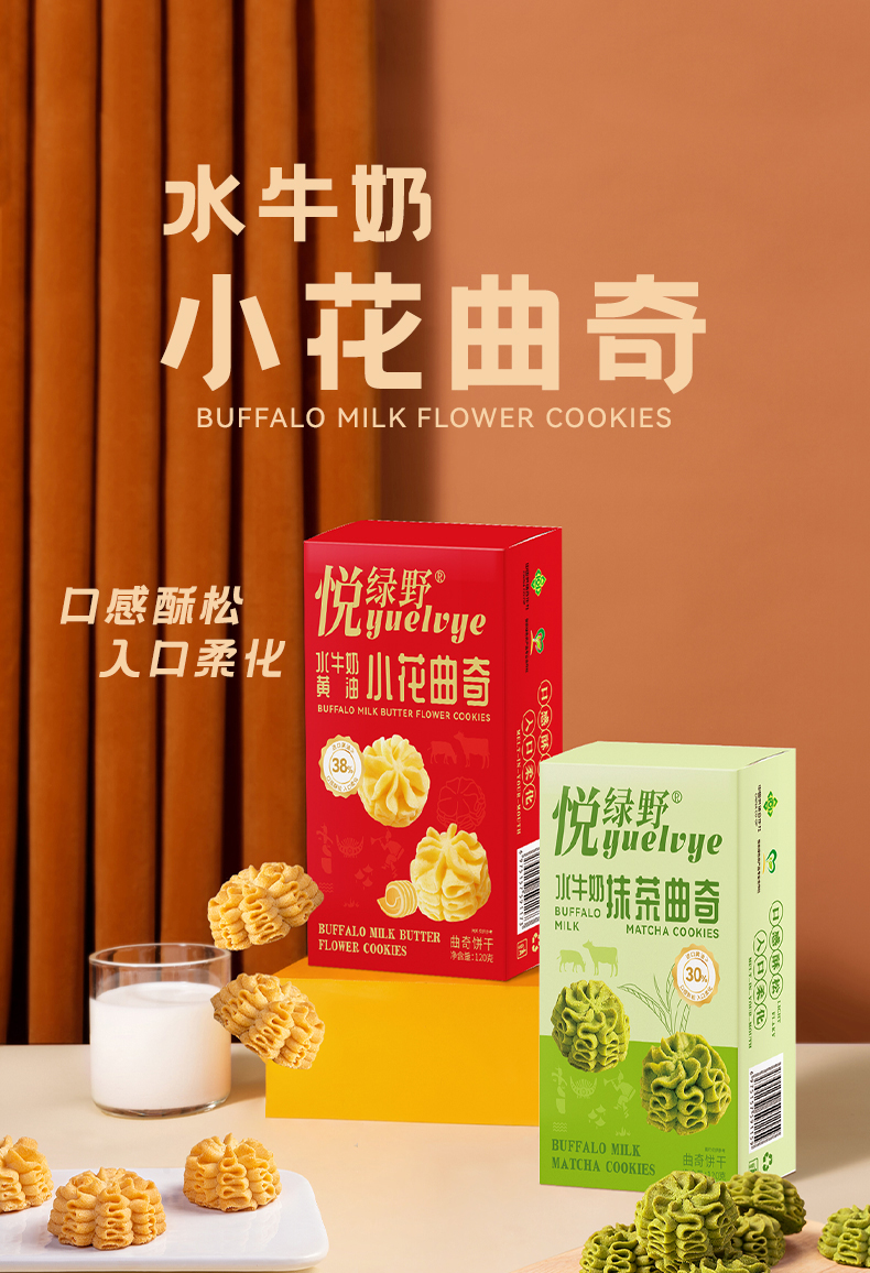 【悦绿野】水牛奶抹茶曲奇120g*2盒