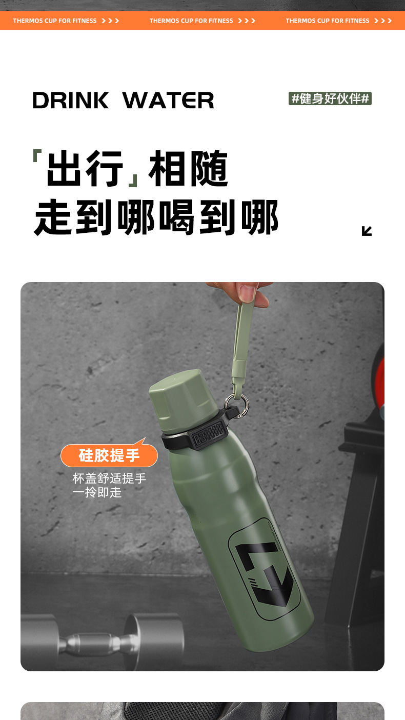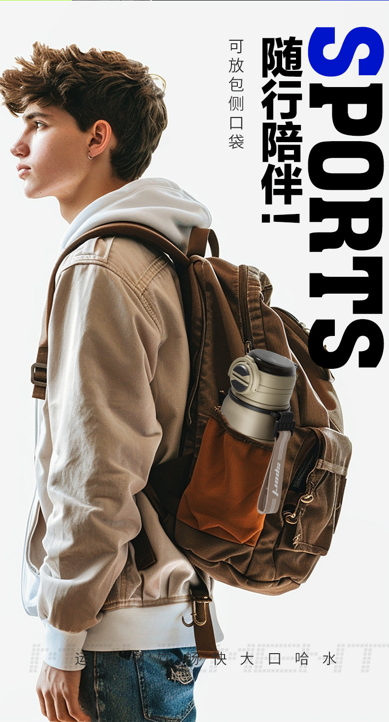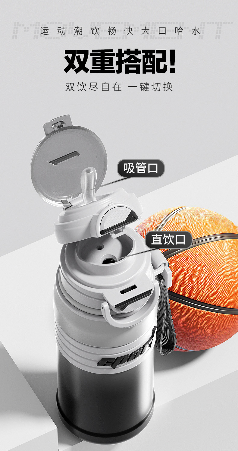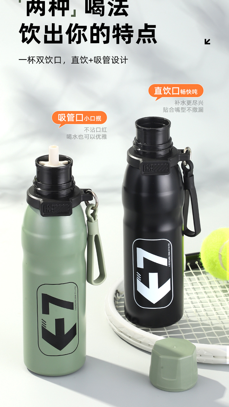户外骑行跑步运动杯316不锈钢保温杯子弹头大容量水壶带吸管水杯