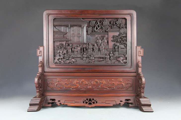 五福临门·简座插屏·50*48cm·非洲酸枝