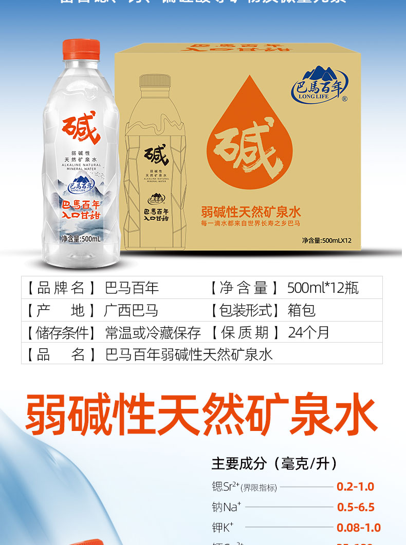 【广西】巴马百年弱碱性天然矿泉水【500ml】