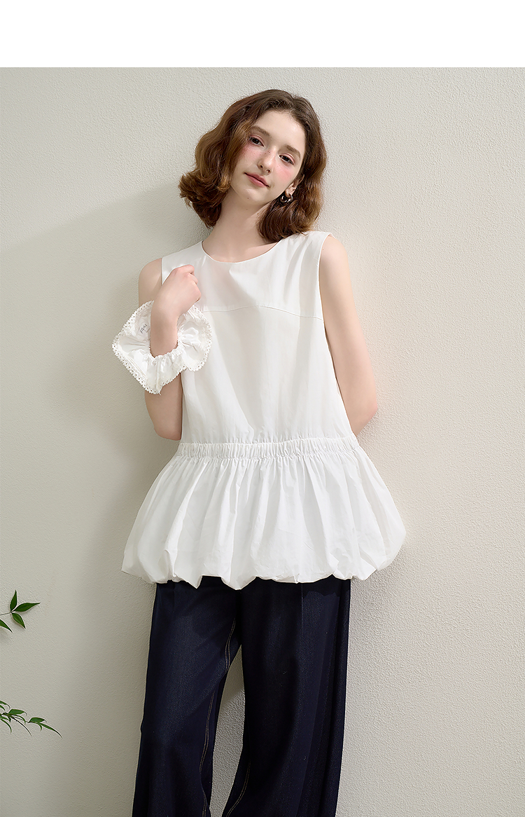 【韩系甜美】设计感简约花苞摆衬衫女夏季背心配发圈H0050869/H0051069