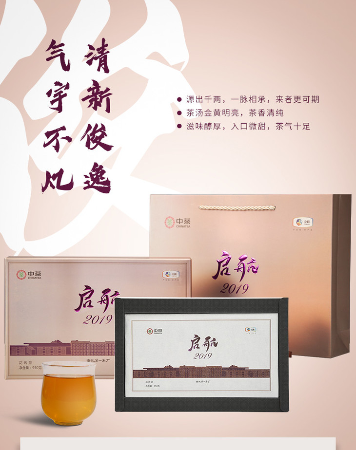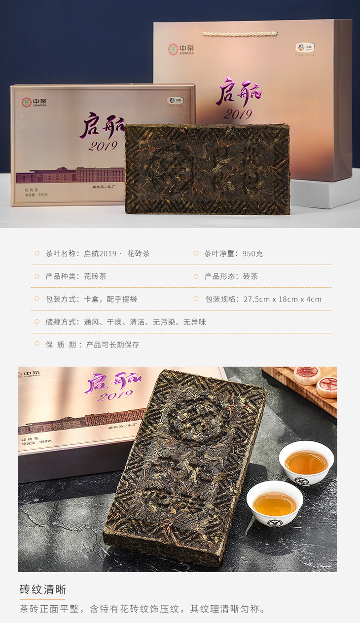 湖南安化黑茶 启航2019花砖茶950g