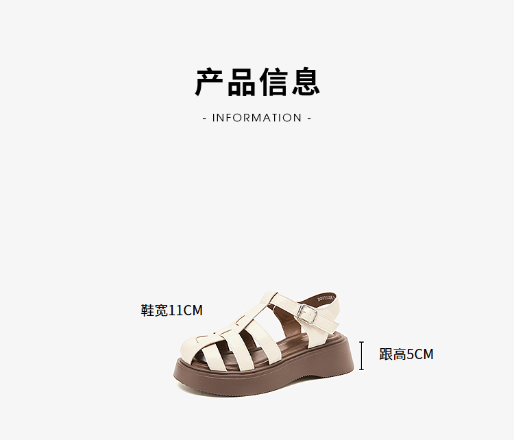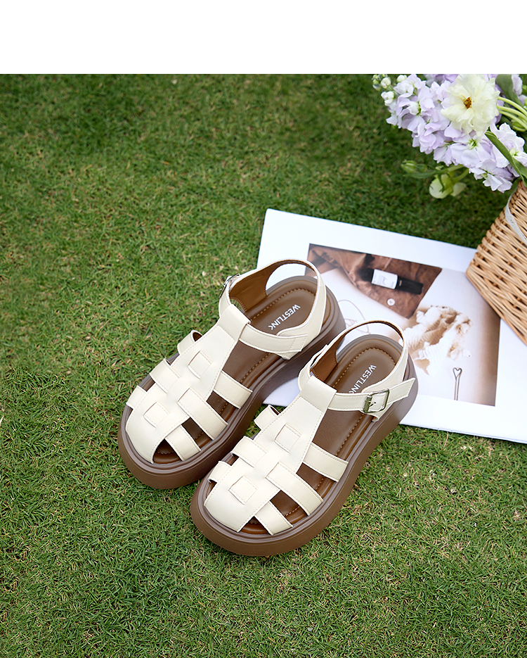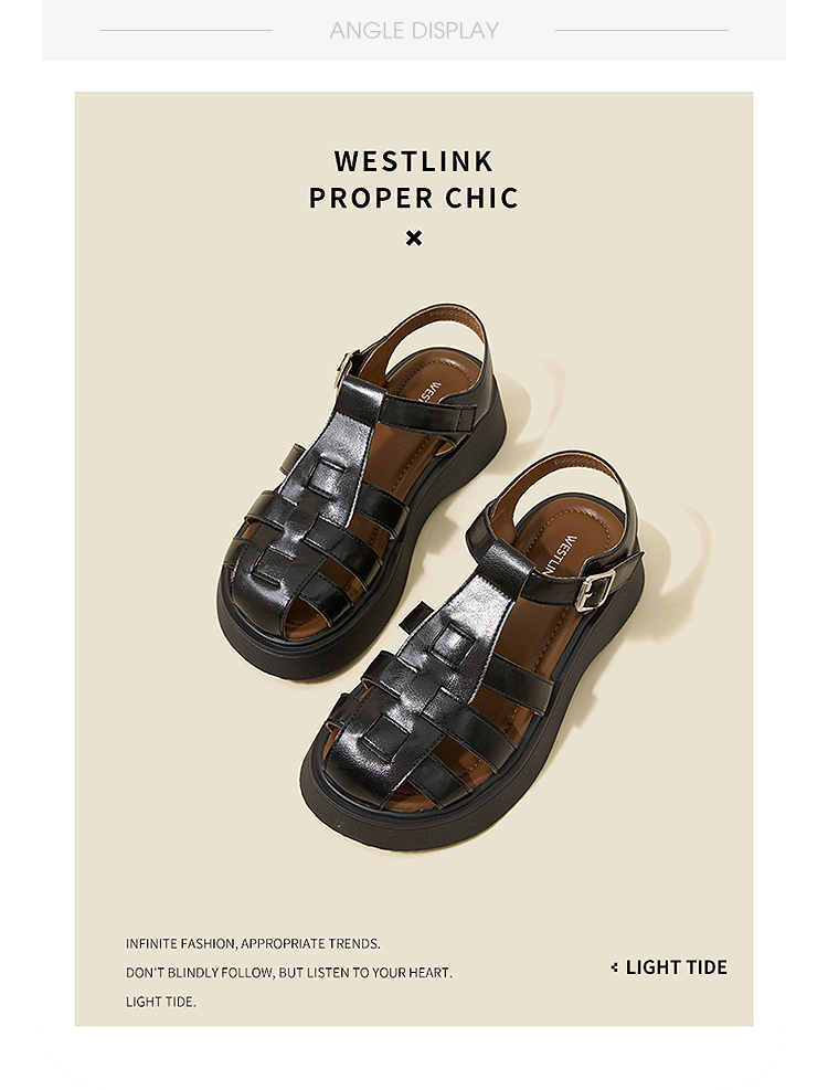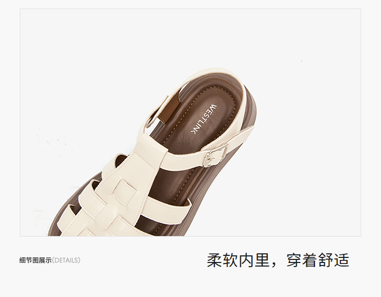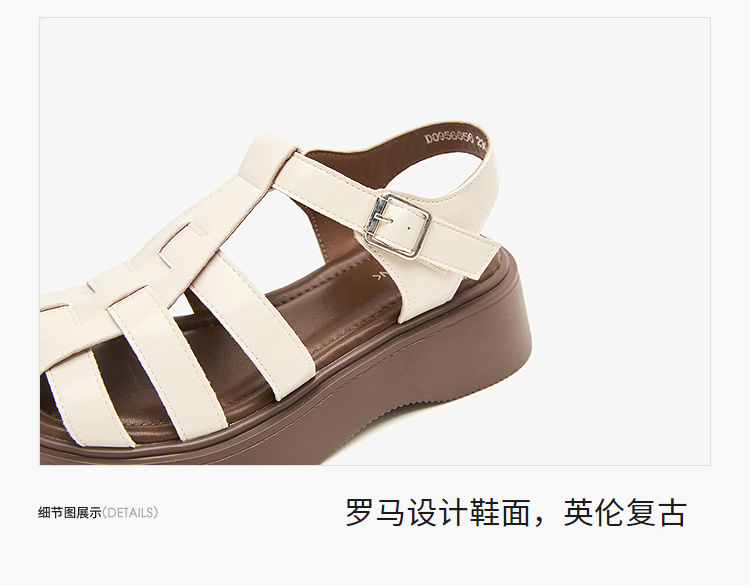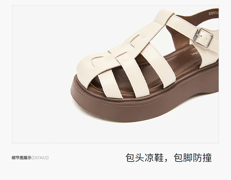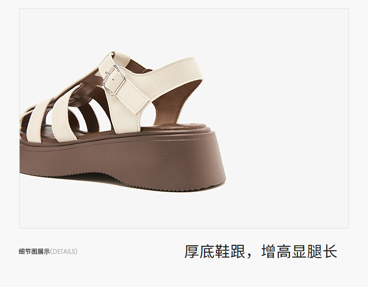 西遇厚底罗马凉鞋女新款夏季外穿复古镂空编织猪笼鞋包头凉鞋D0956656