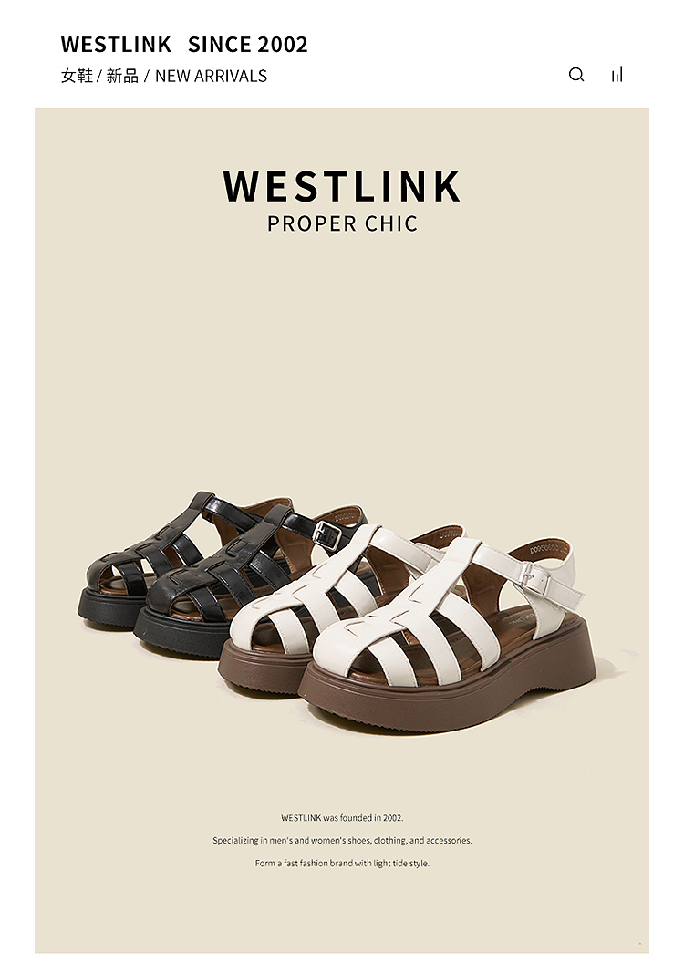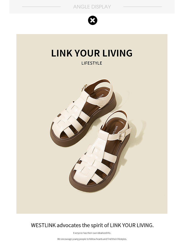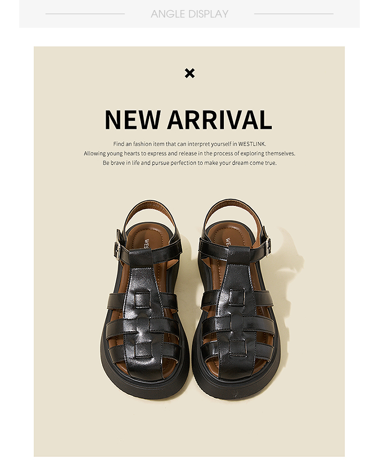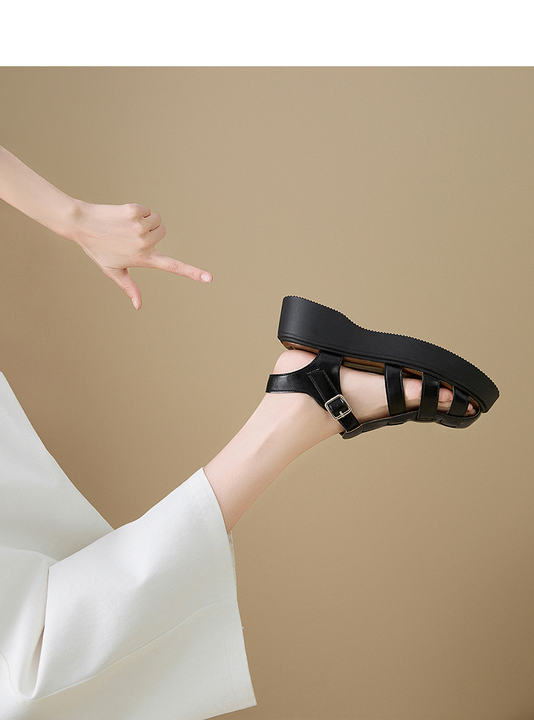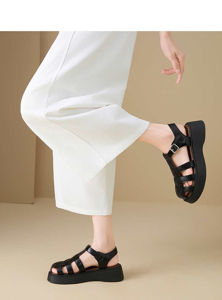 西遇厚底罗马凉鞋女新款夏季外穿复古镂空编织猪笼鞋包头凉鞋D0956656