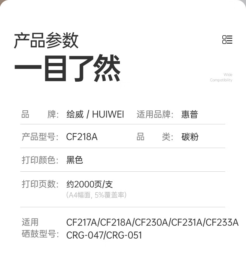 绘威适用m132nw墨粉cf218a碳粉m132a粉盒m104w m132snw墨盒m104a m132fw m132fn m132fp激光打印机硒鼓hp18a碳粉