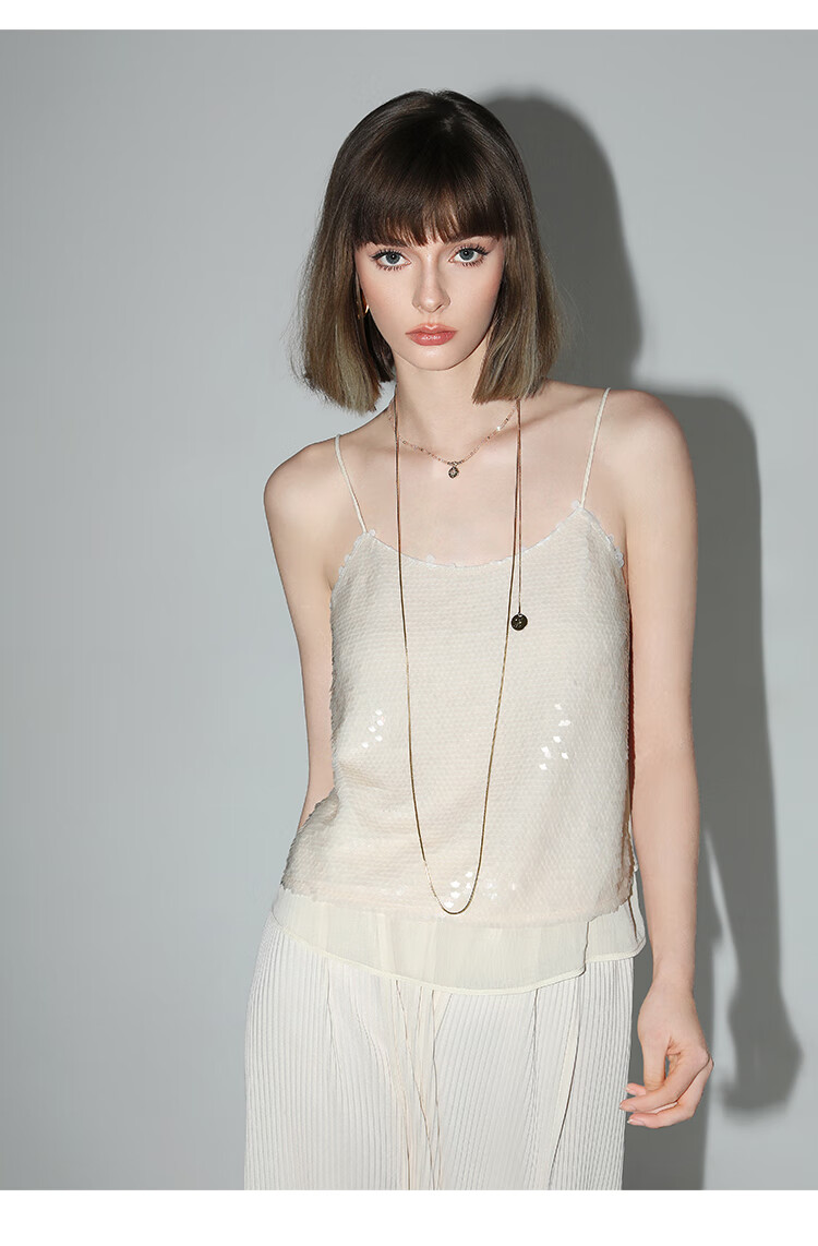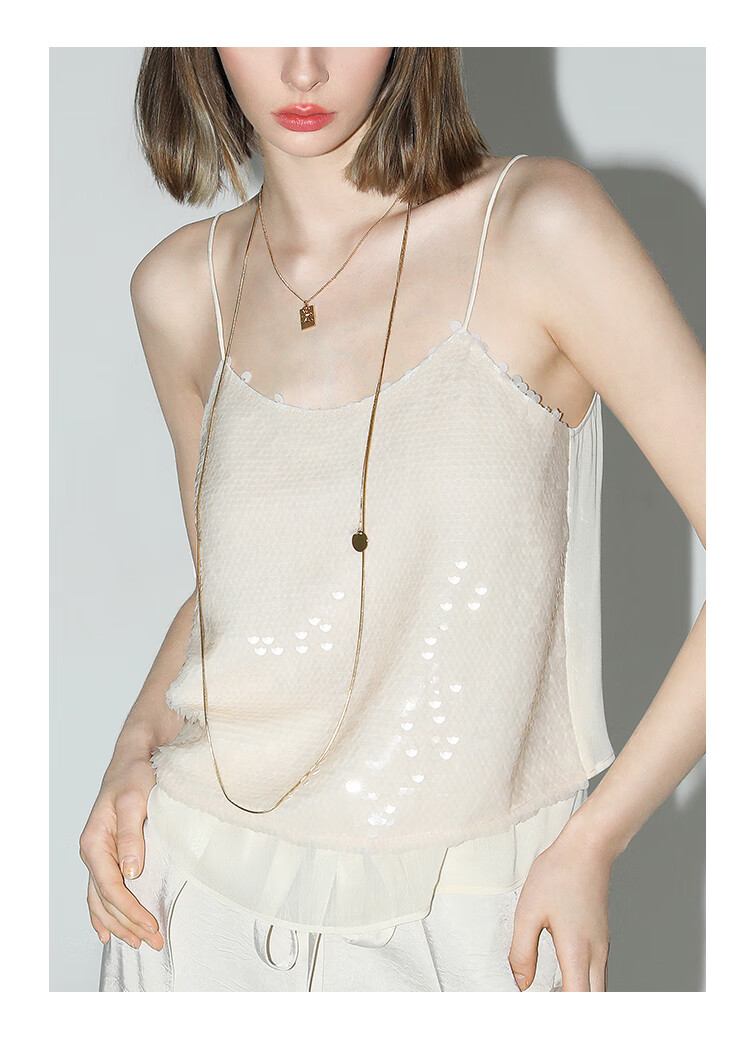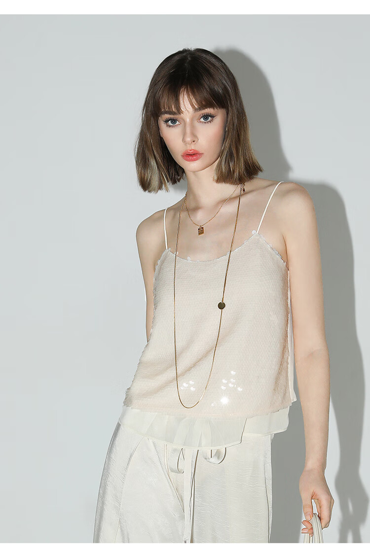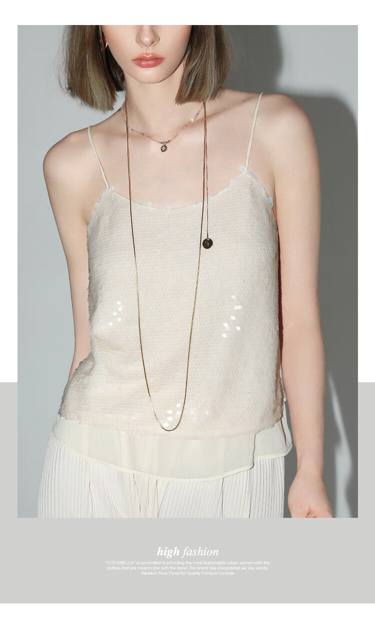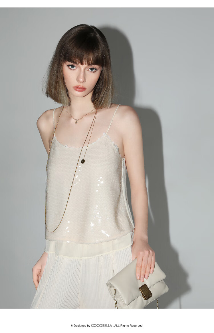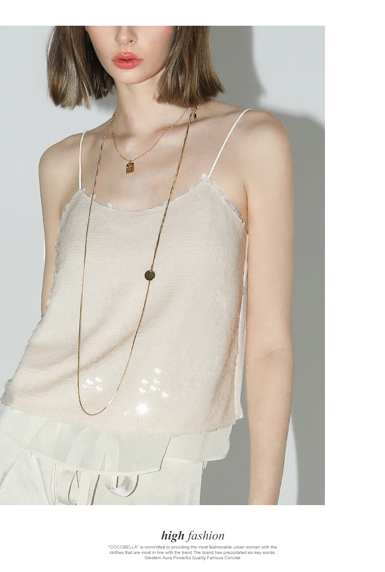COCOBELLA亮片绣拼接双层雪纺吊带内搭可外穿气质背心VT0005