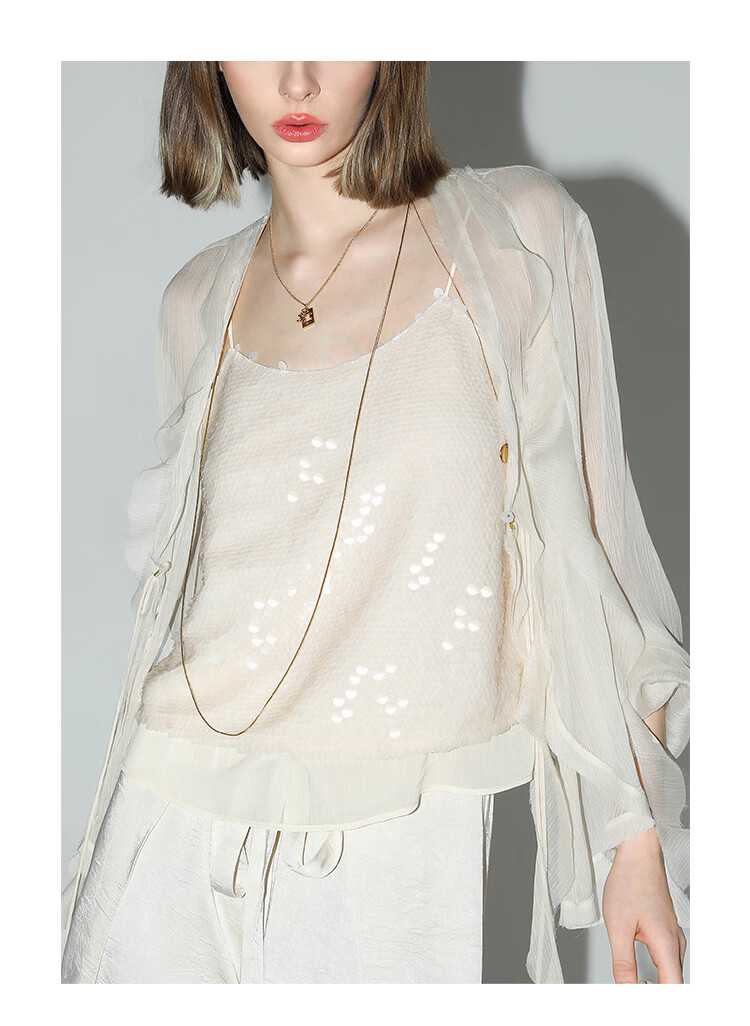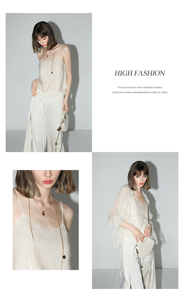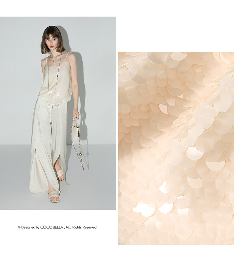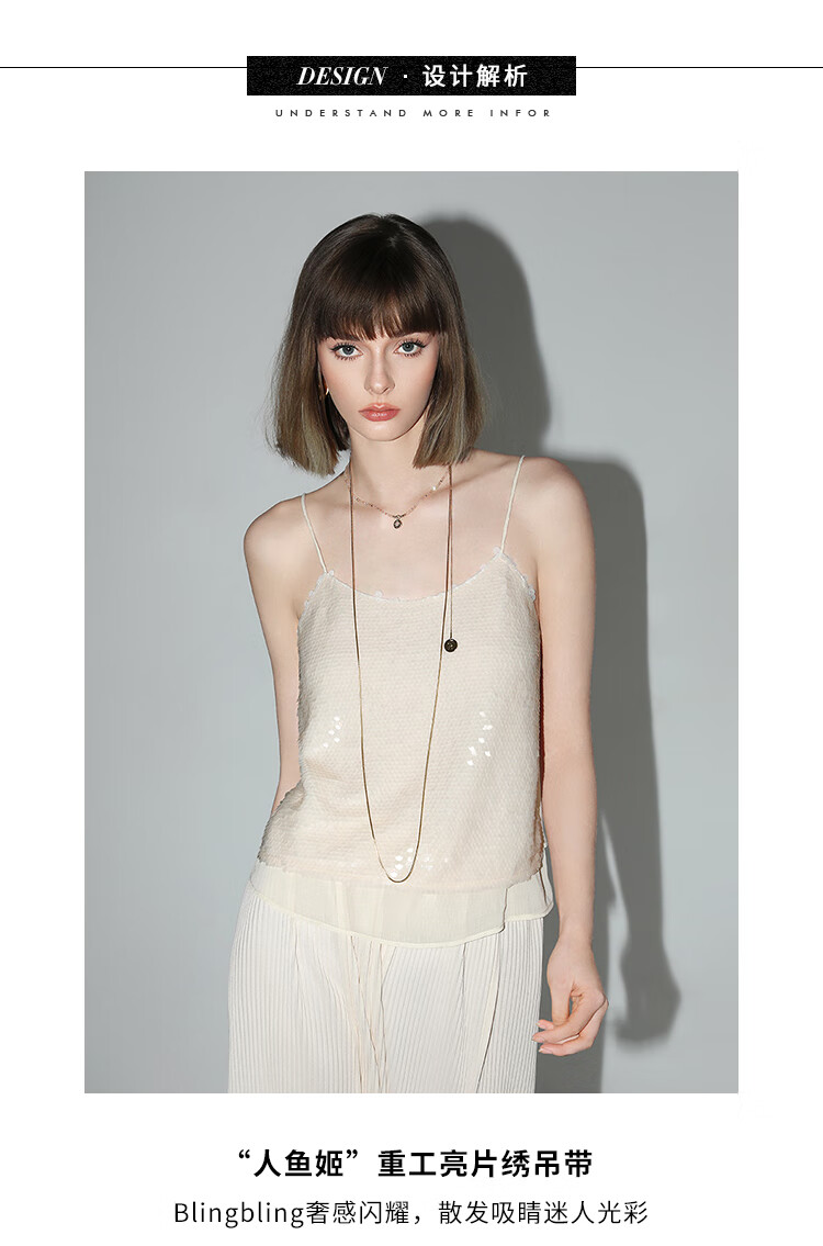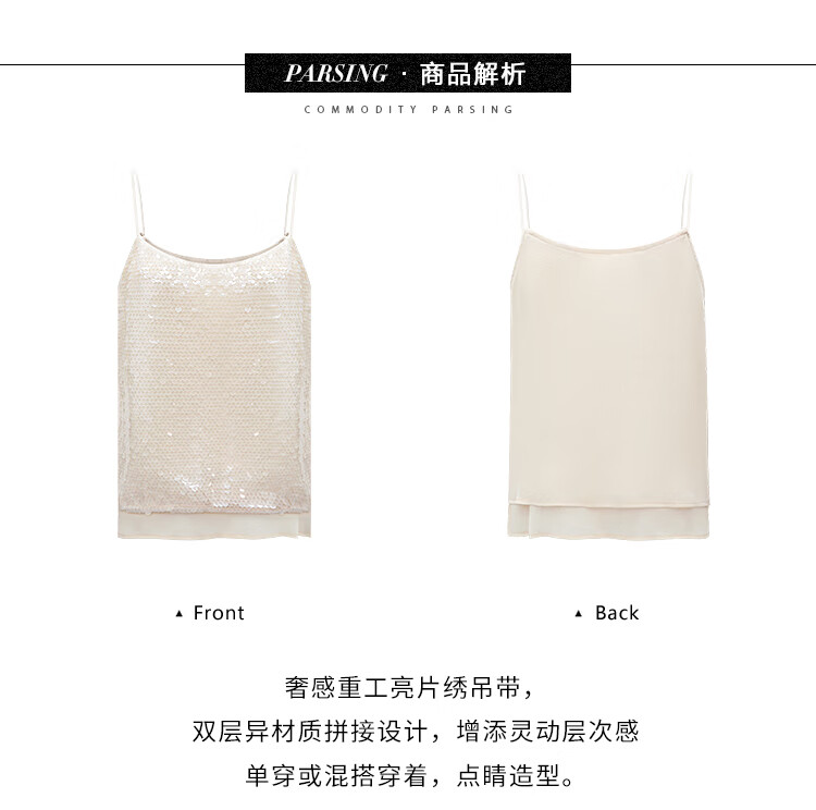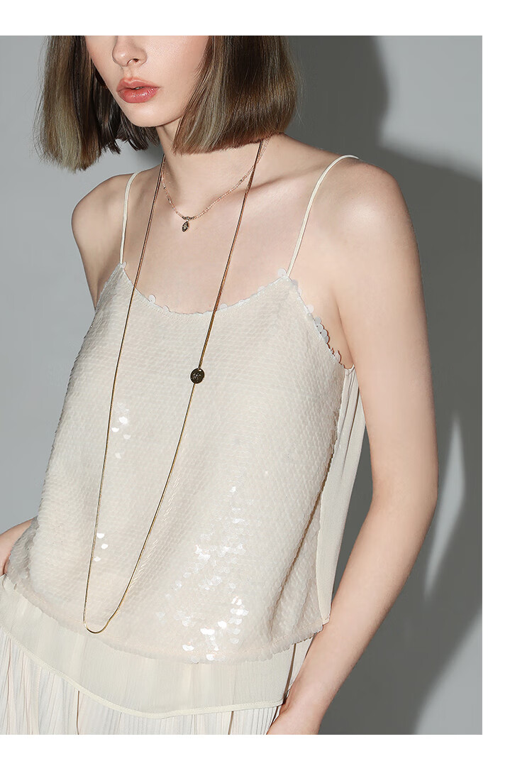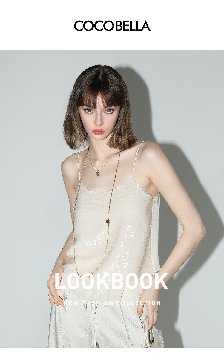 COCOBELLA亮片绣拼接双层雪纺吊带内搭可外穿气质背心VT0005