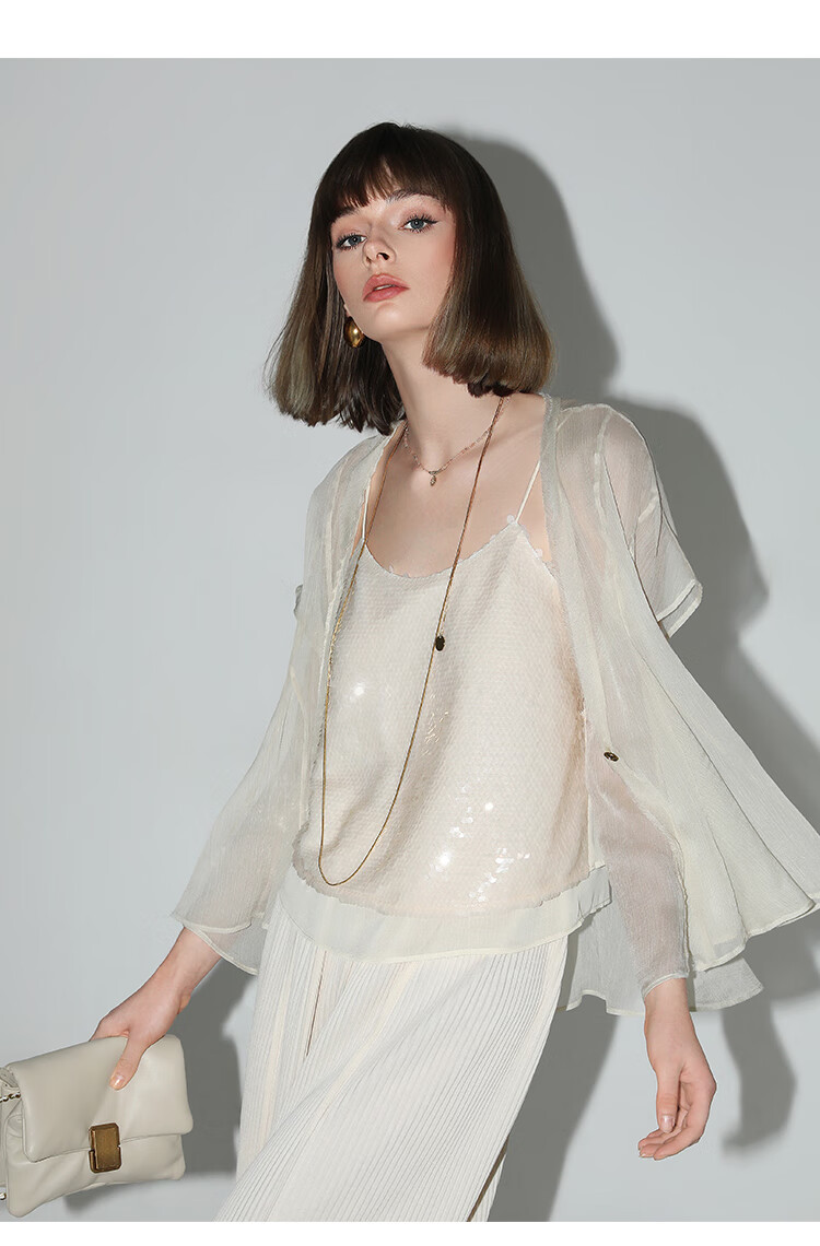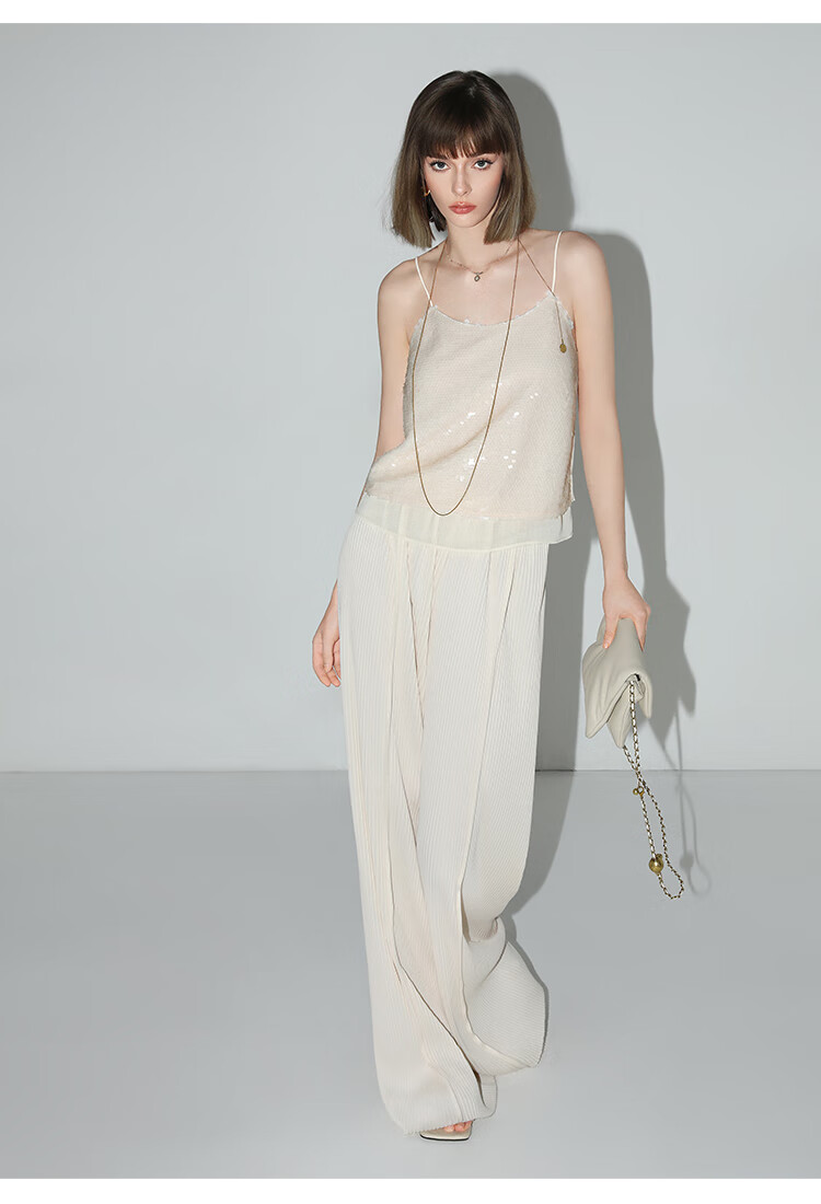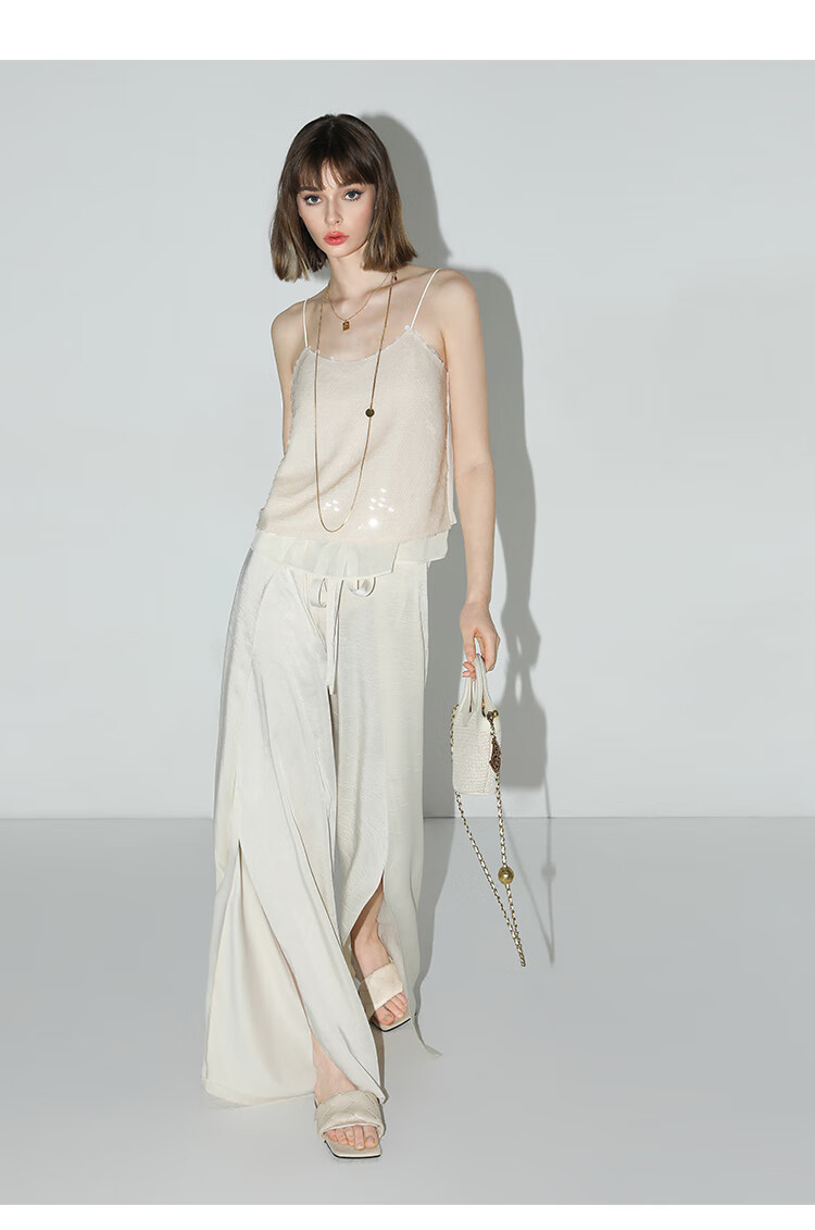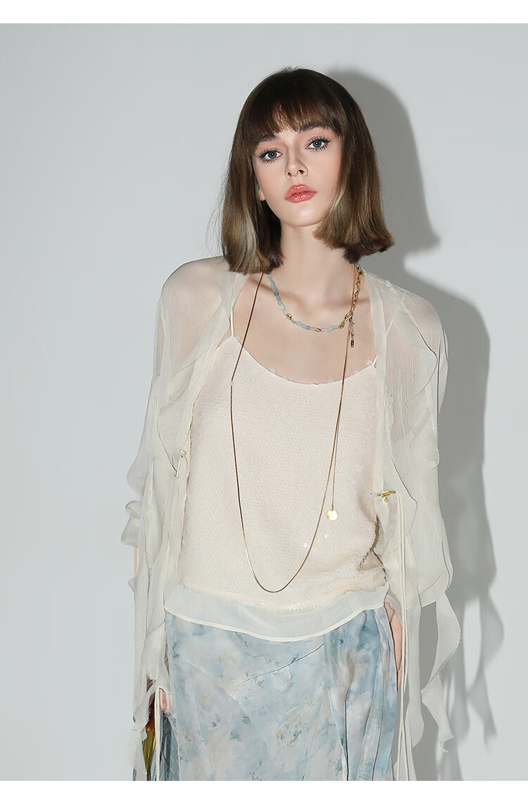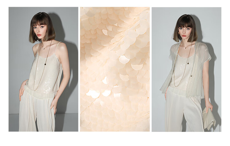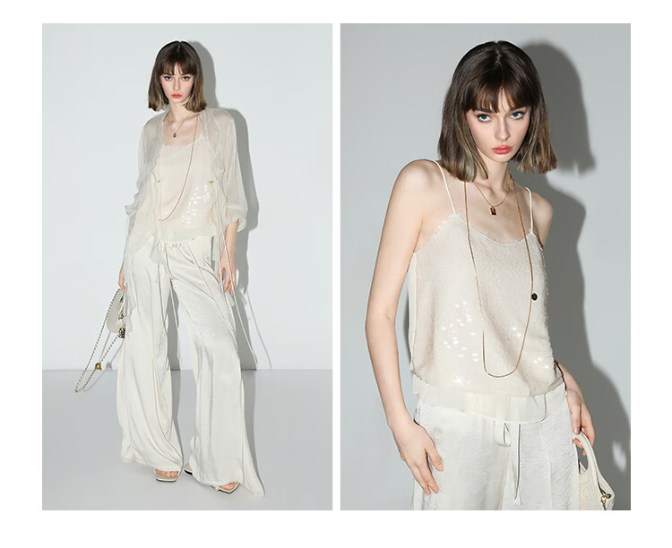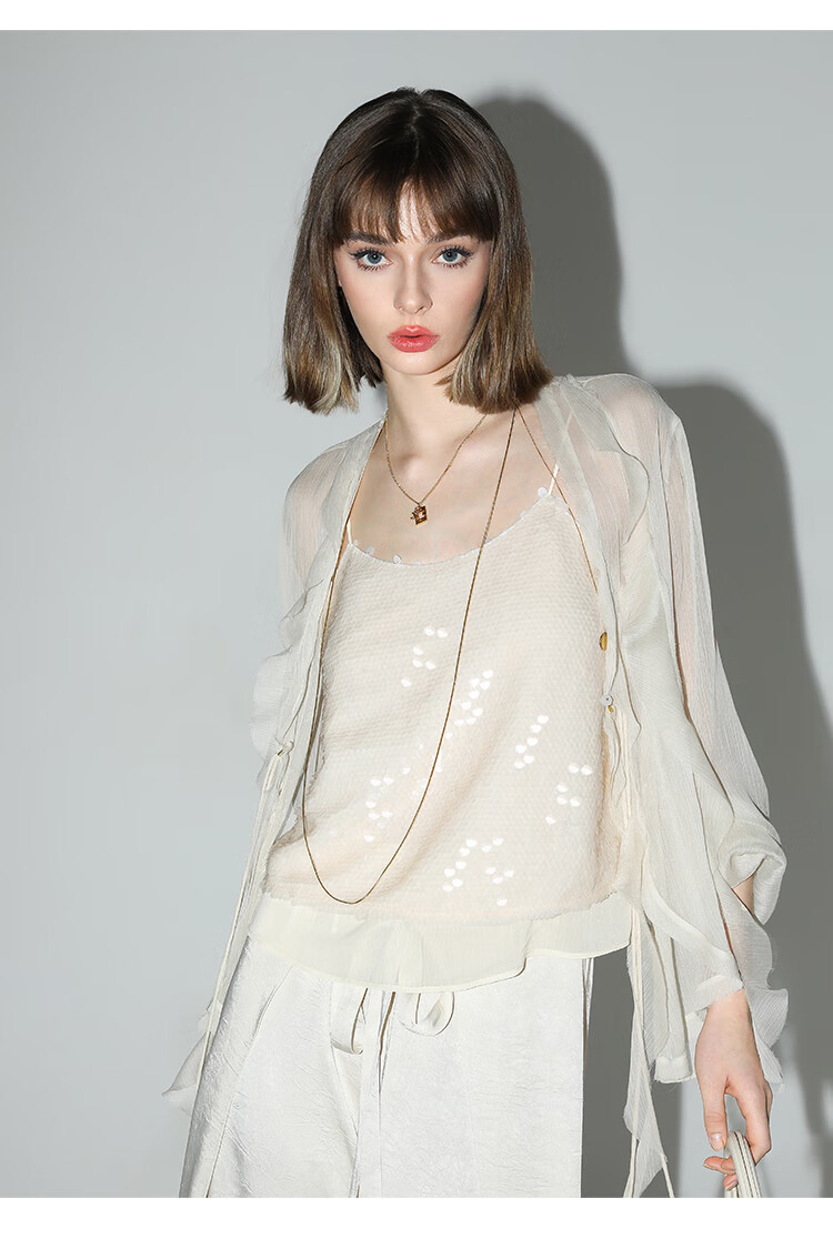 COCOBELLA亮片绣拼接双层雪纺吊带内搭可外穿气质背心VT0005